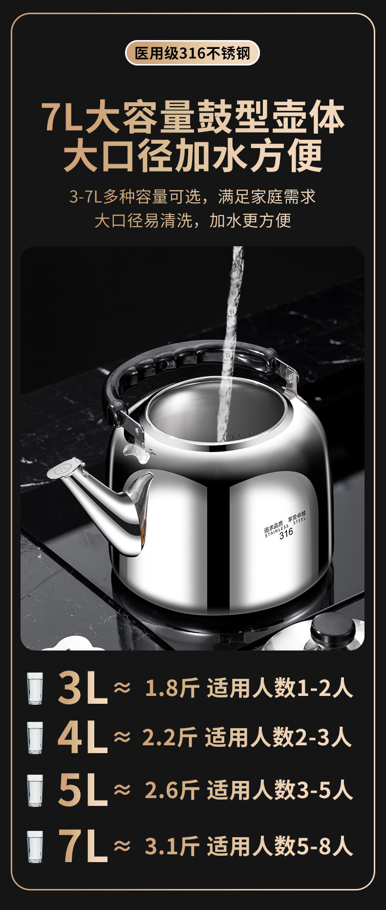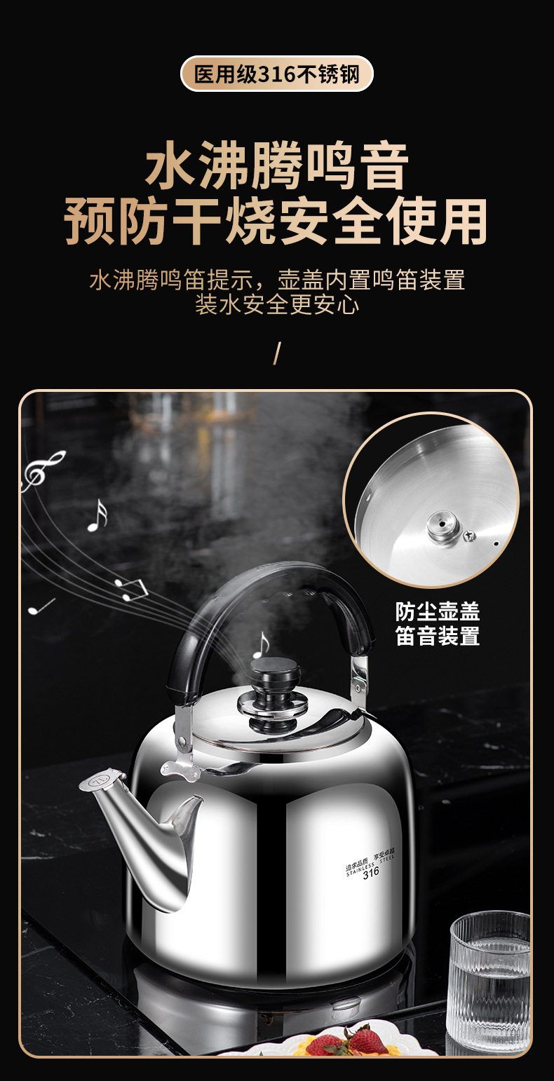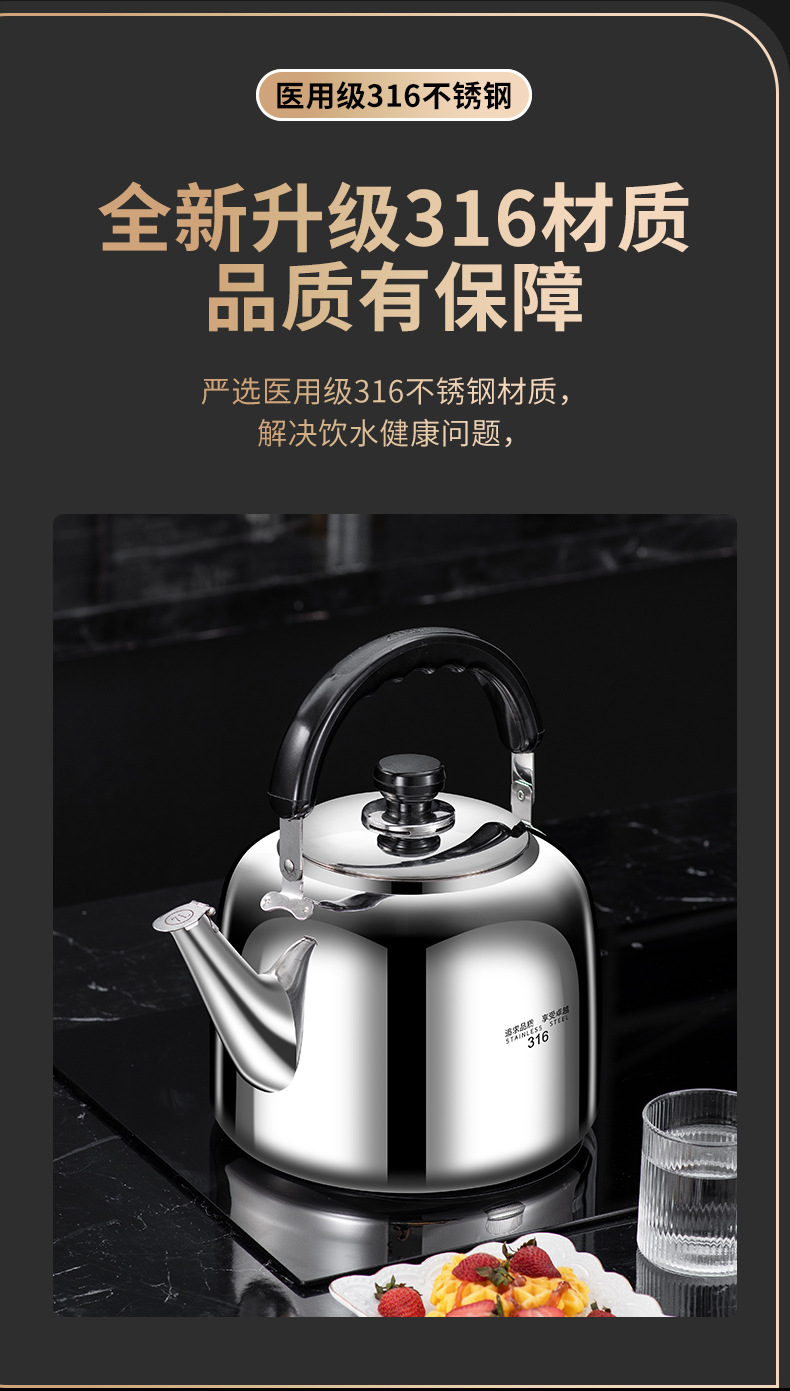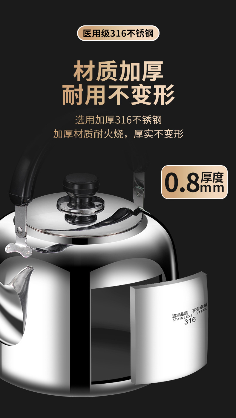 스테인리스 대용량 주전자, 두꺼운 바닥, 울리는 소리가 나는 다중 바닥 주전자, 가스레인지, 인덕션레인지, 차 주전자, 가정용