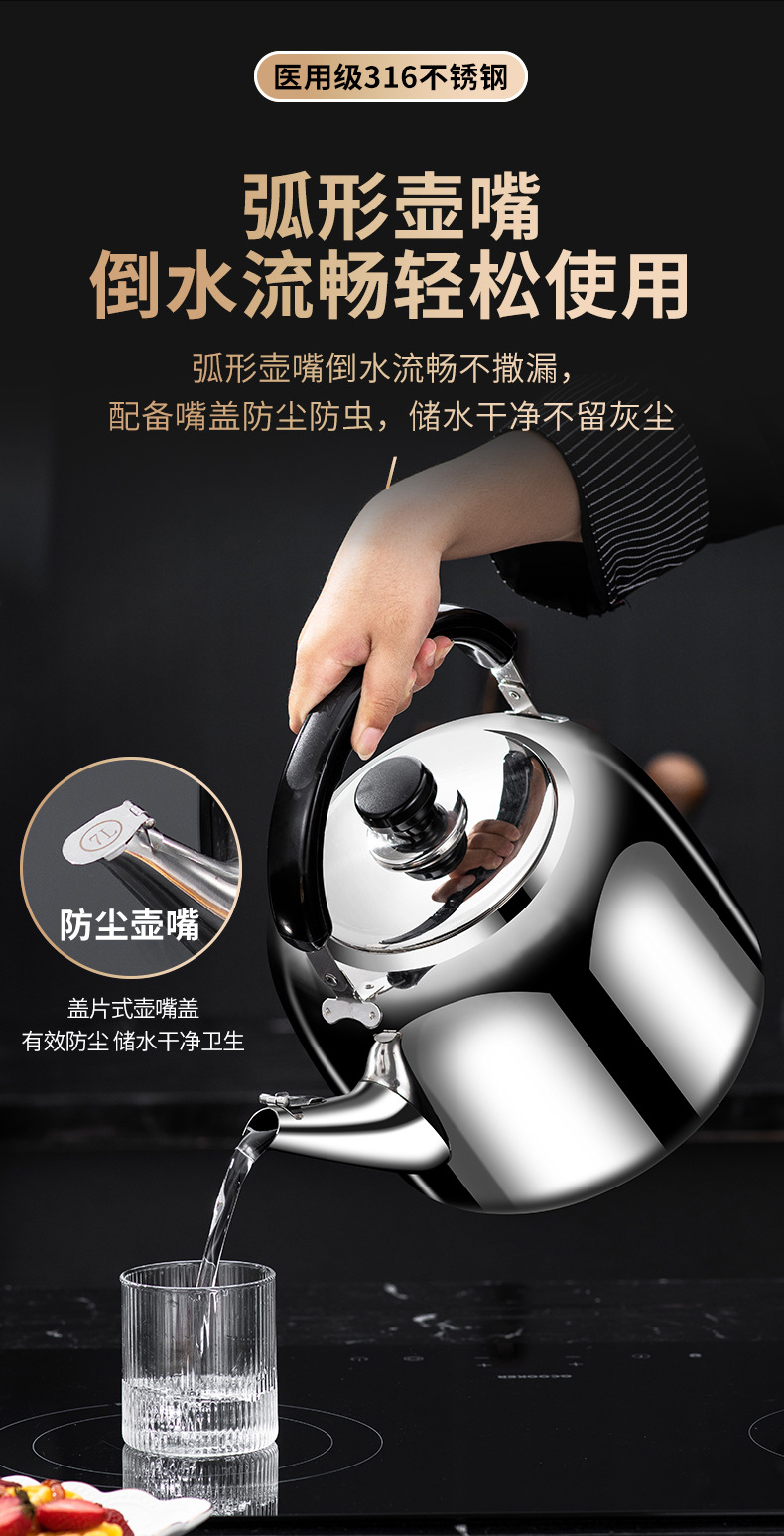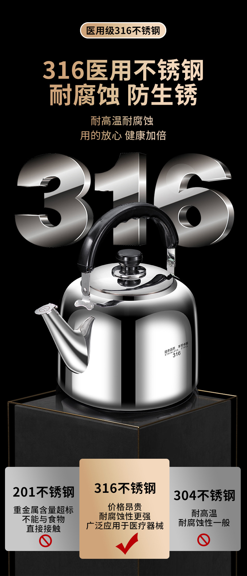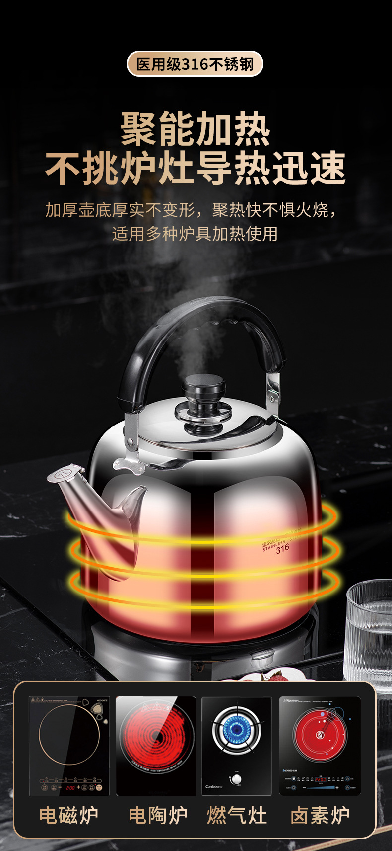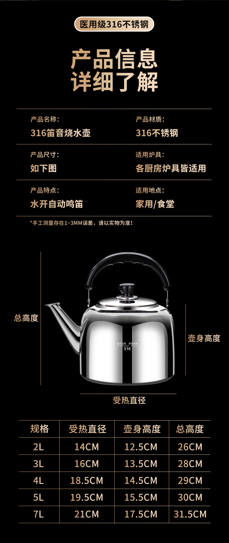 스테인리스 대용량 주전자, 두꺼운 바닥, 울리는 소리가 나는 다중 바닥 주전자, 가스레인지, 인덕션레인지, 차 주전자, 가정용