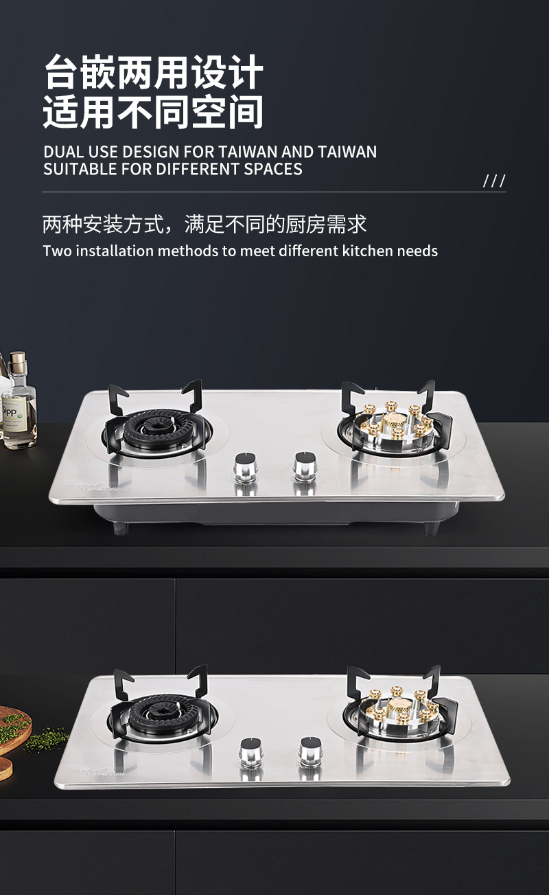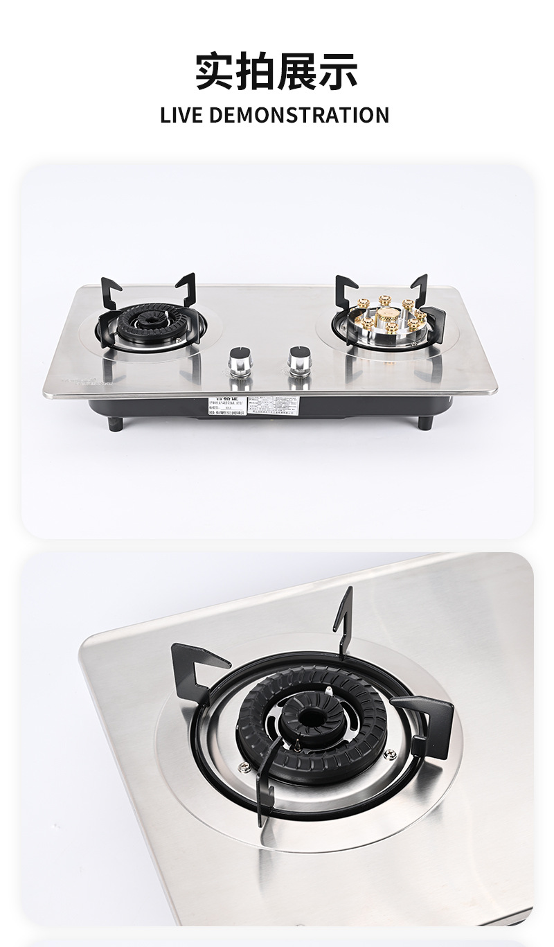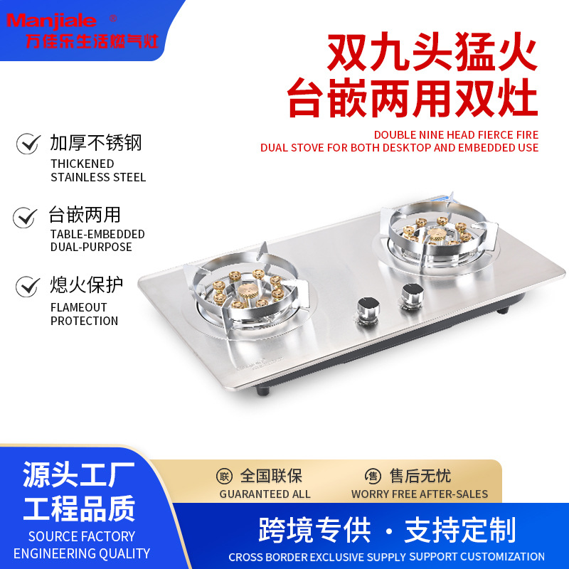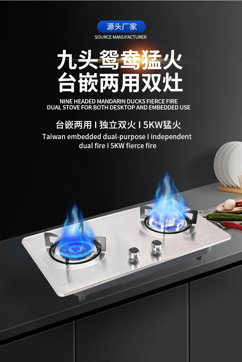 제조업체 맞춤형 스테인레스 스틸 패널 9 챔버 고화력 가스 스토브 화염 차단 장치 내장 타이밍 더블 스토브