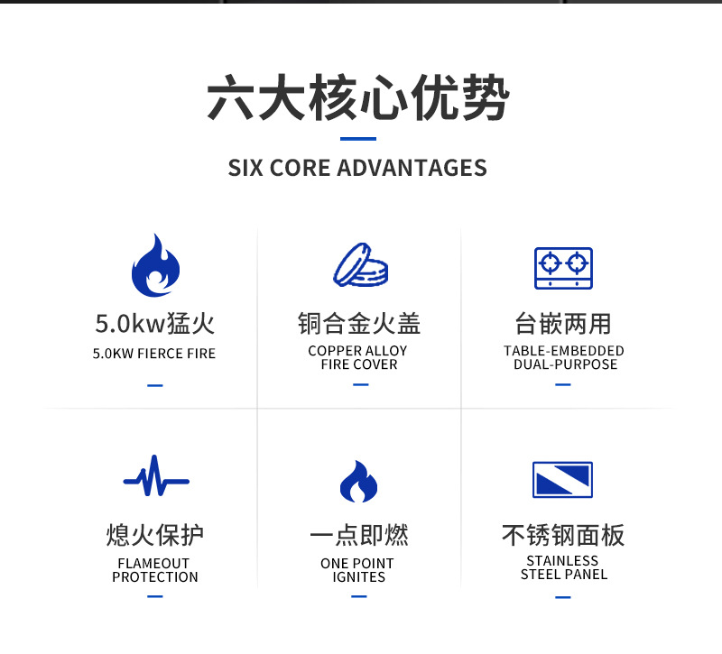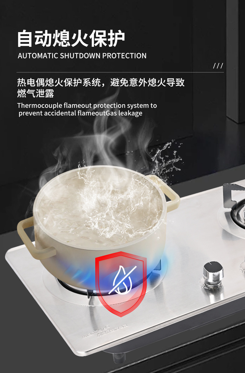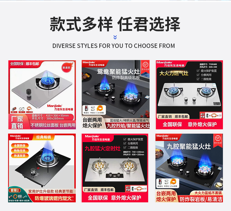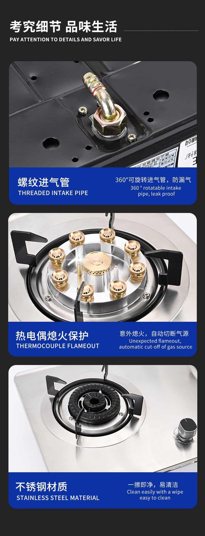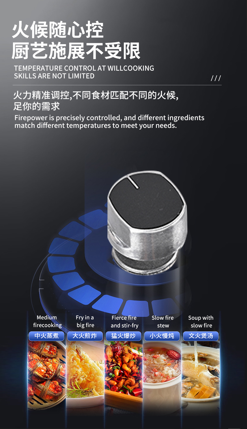 제조업체 맞춤형 스테인레스 스틸 패널 9 챔버 고화력 가스 스토브 화염 차단 장치 내장 타이밍 더블 스토브