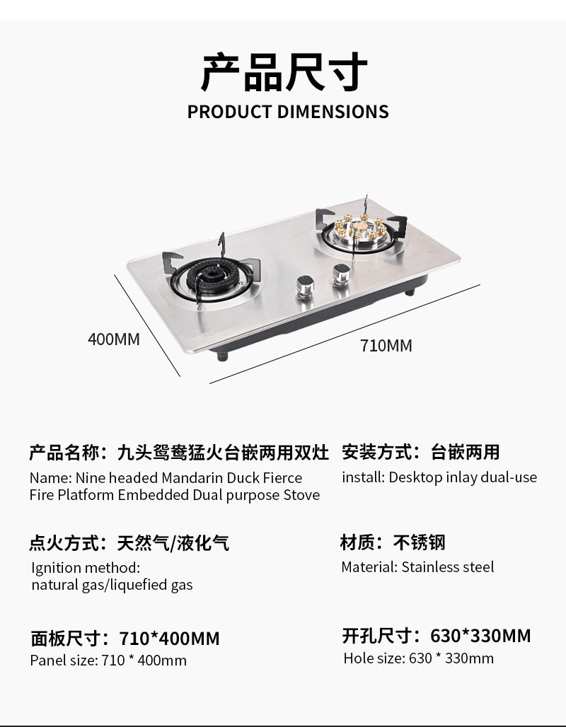 대형 패널 타이밍 더블 나인 헤드 [분리 가능 및 세척 가능] 맹렬한 화재/천연 가스