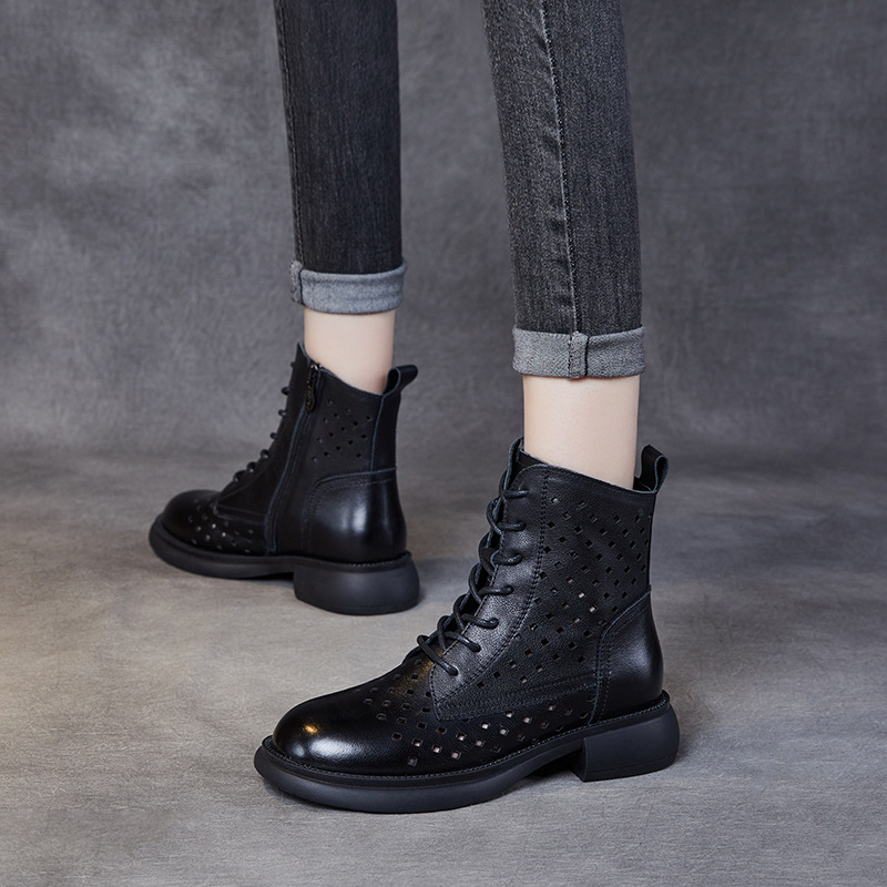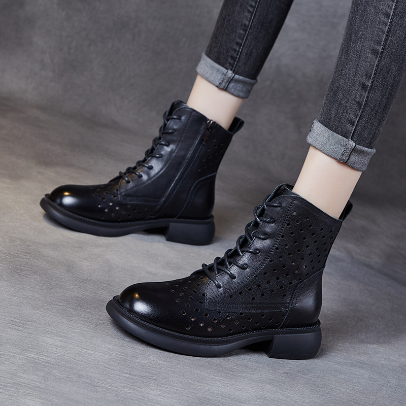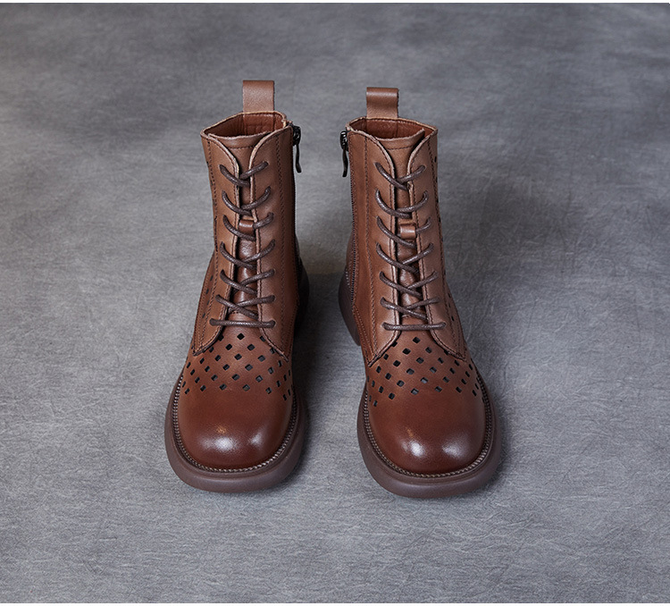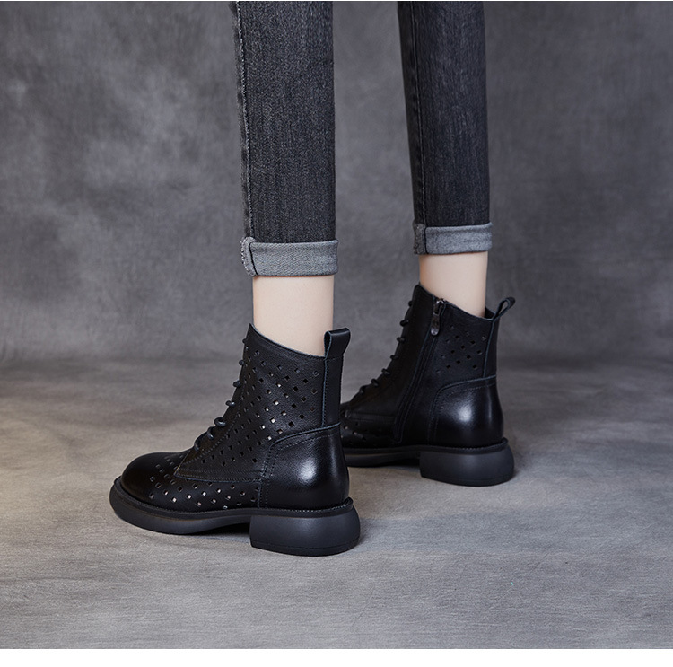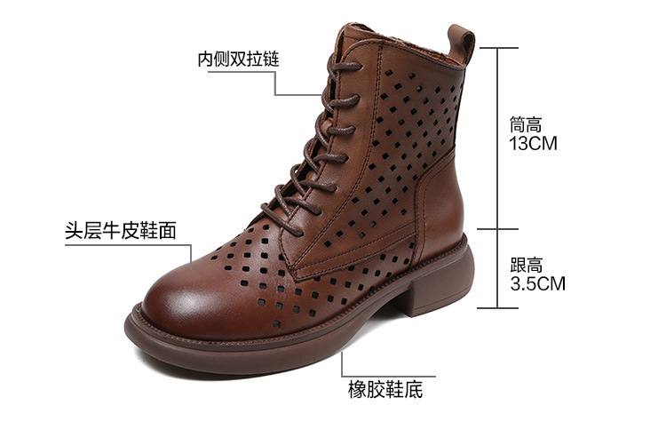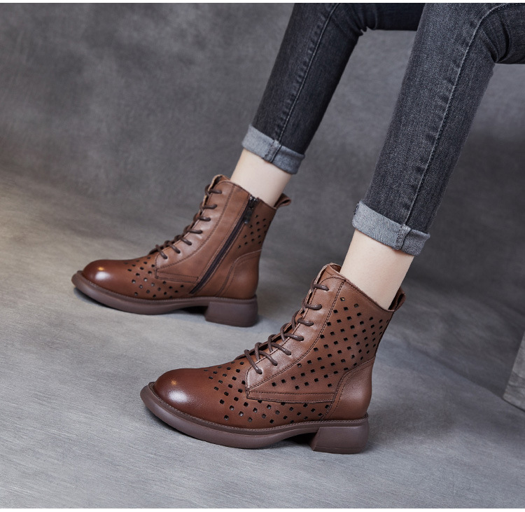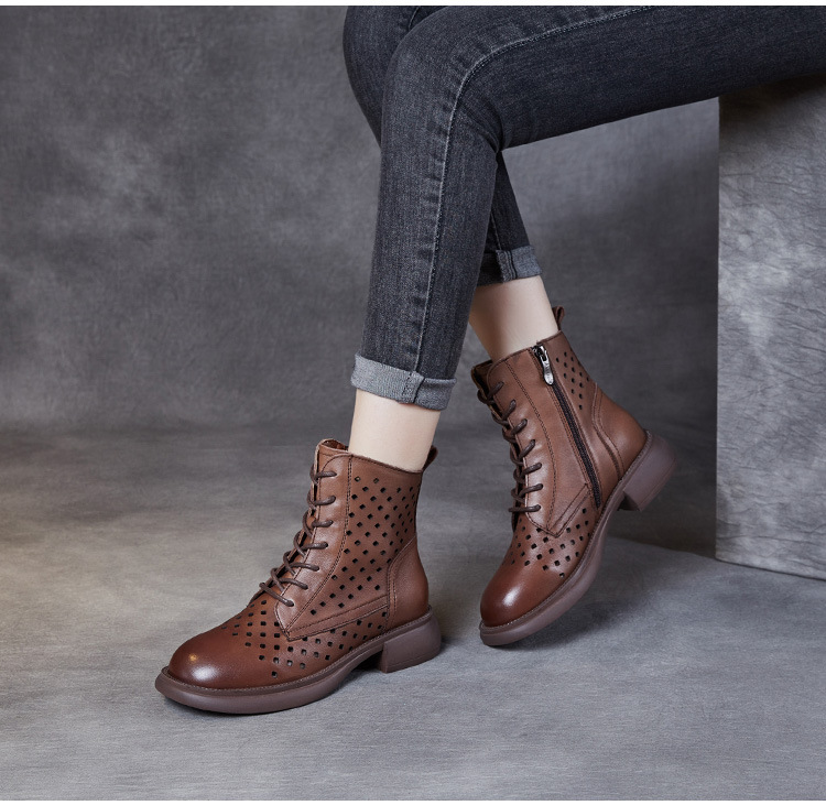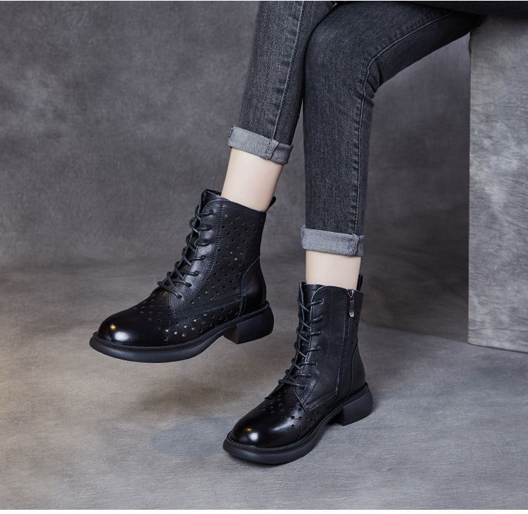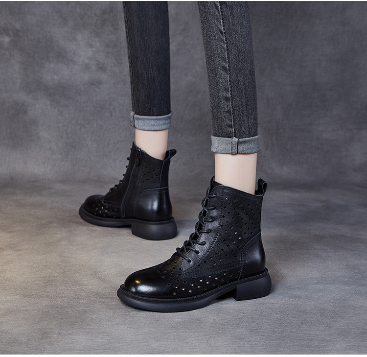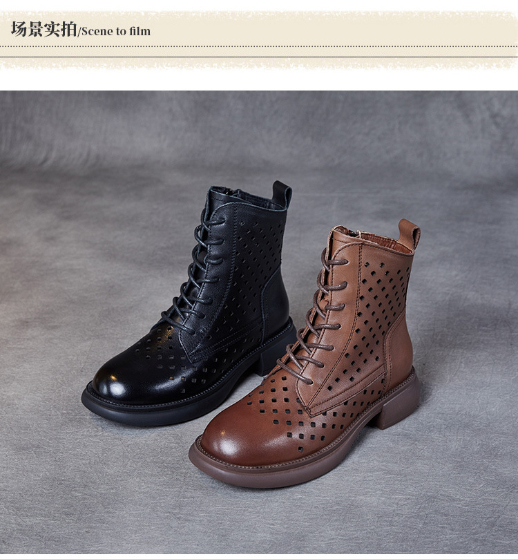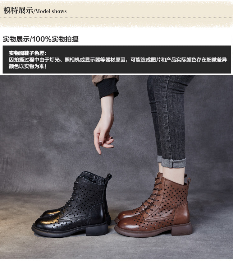 2025 봄 신상품 레이스업 마틴 부츠 천연 가죽 숏부츠 패션 레트로 스타일 여성 부츠 사이드 지퍼 로우컷 여성화
