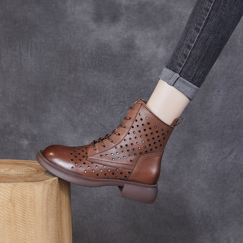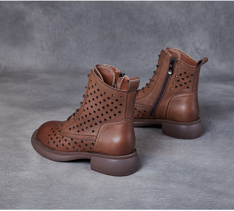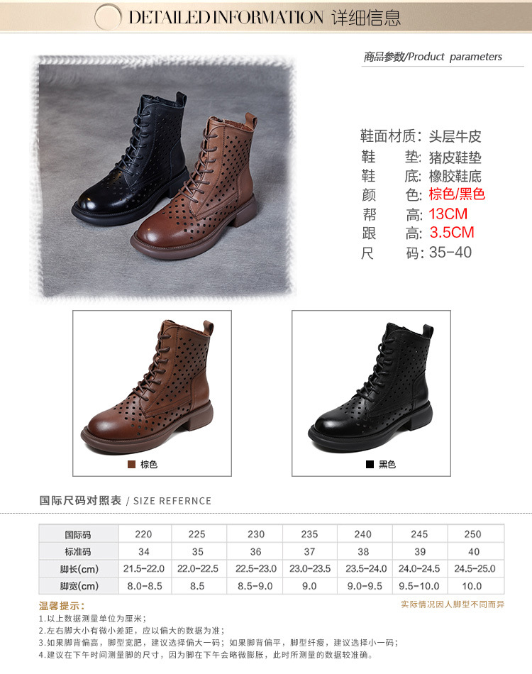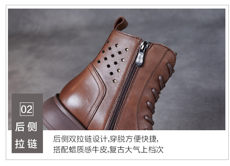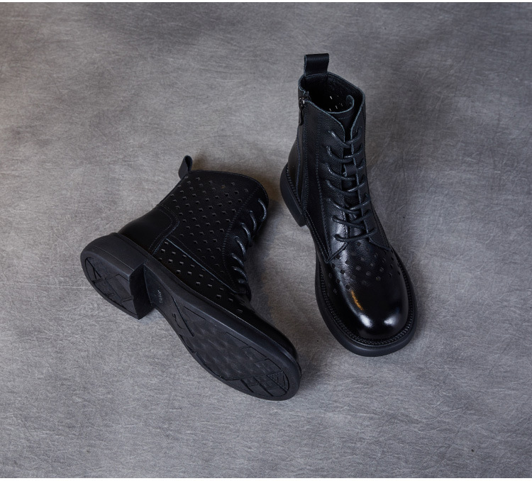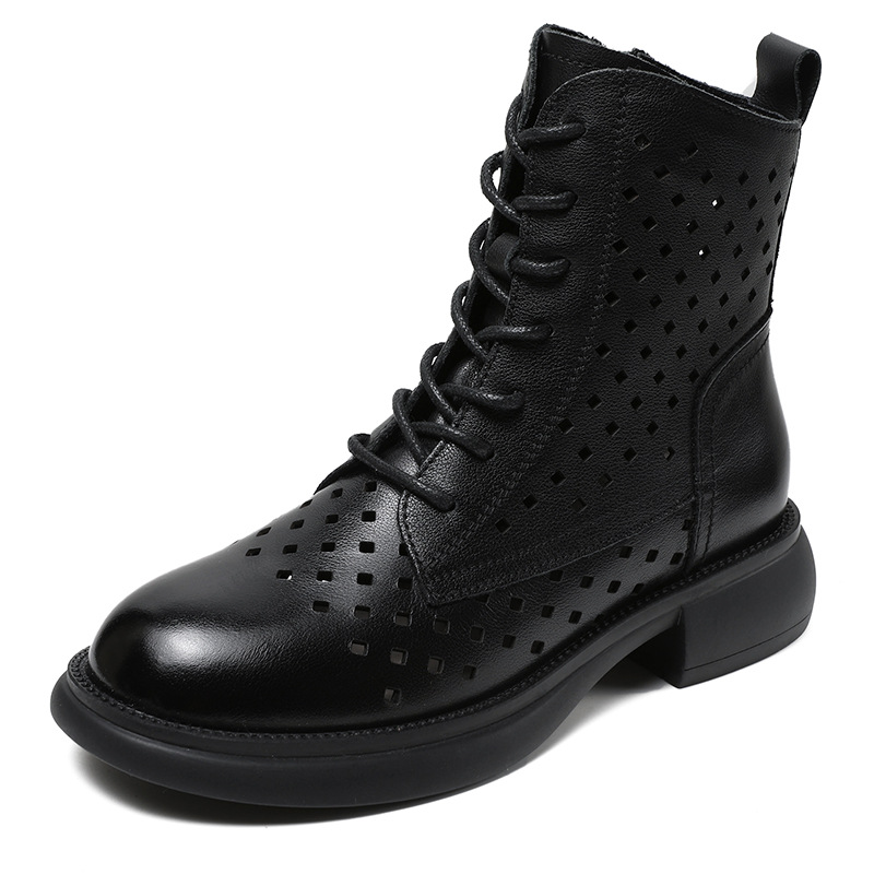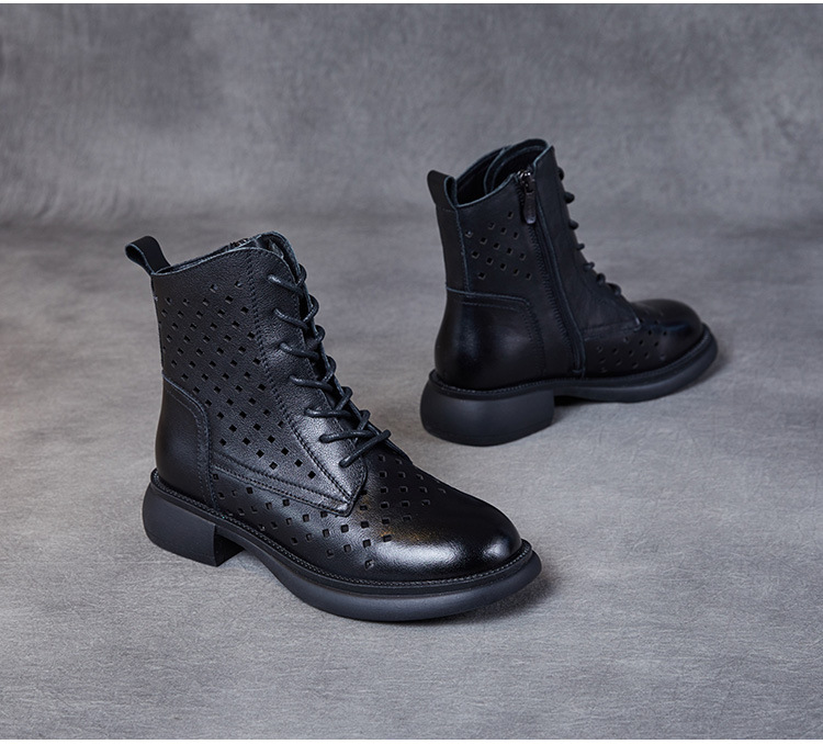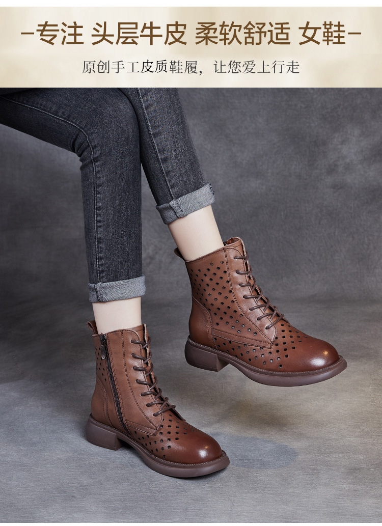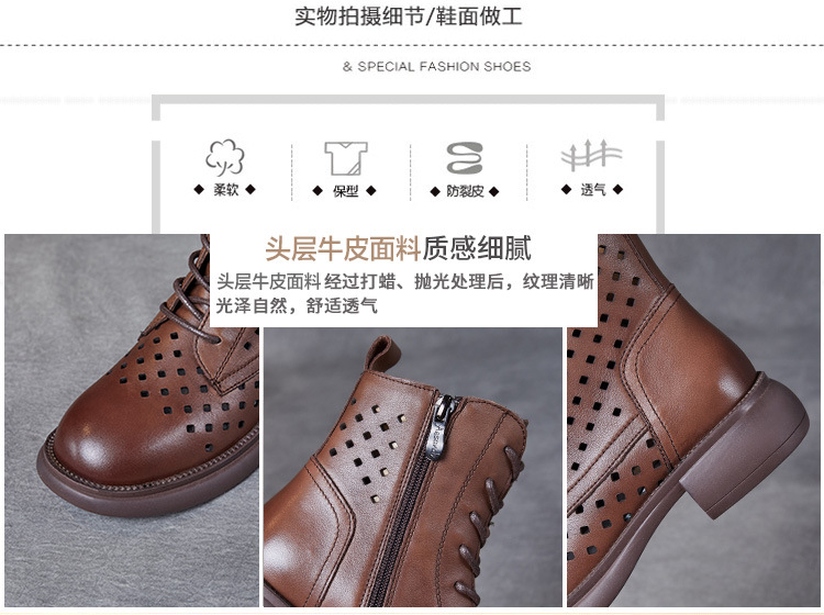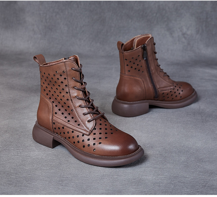 2025 봄 신상품 레이스업 마틴 부츠 천연 가죽 숏부츠 패션 레트로 스타일 여성 부츠 사이드 지퍼 로우컷 여성화
