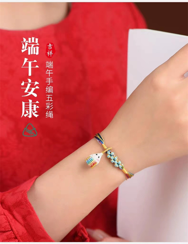 2025 Dragon Boat Festival 다채로운 손 로프 팔찌 Zongzi 복숭아 꽃 매듭 손으로 짠 남성과 여성 로프 도매