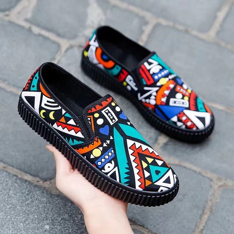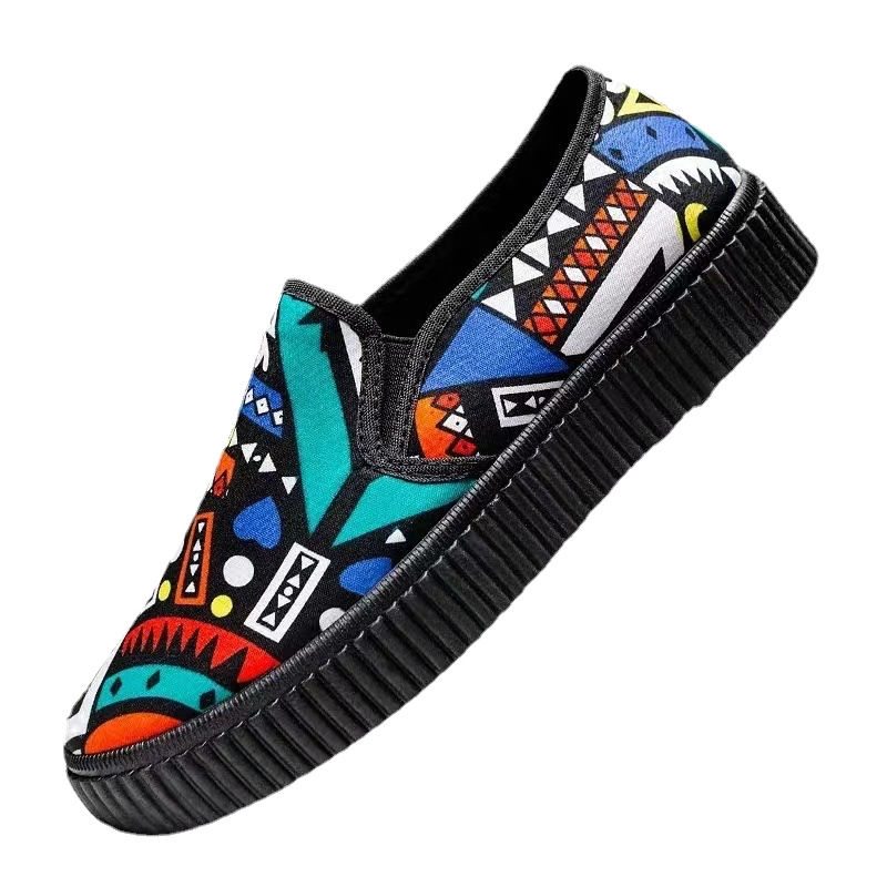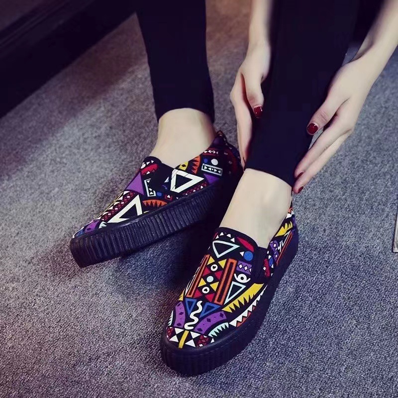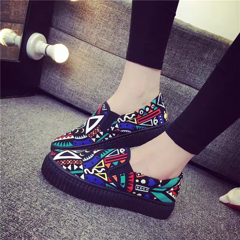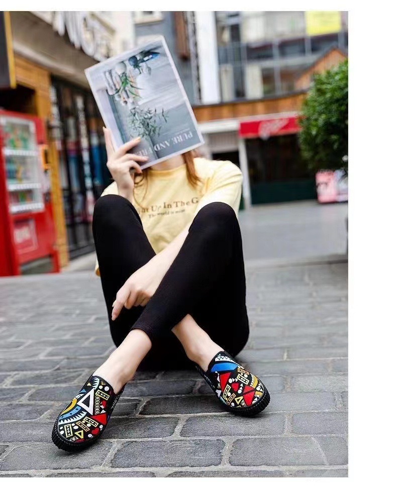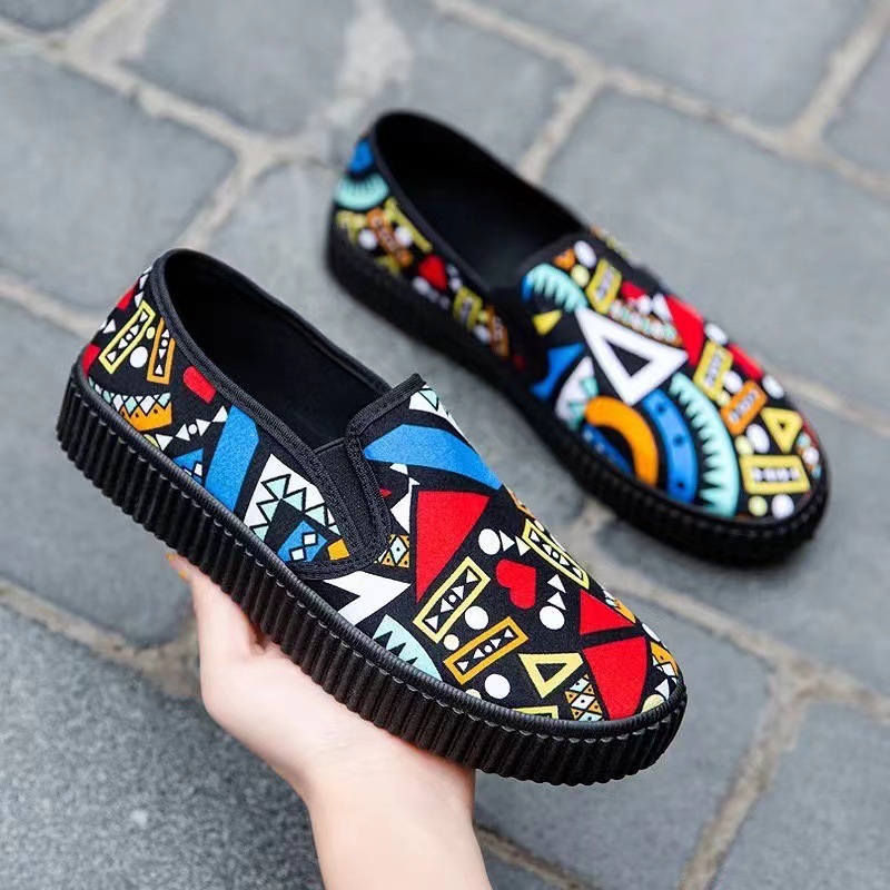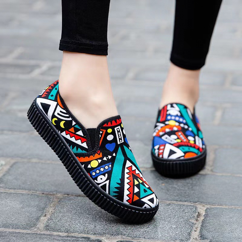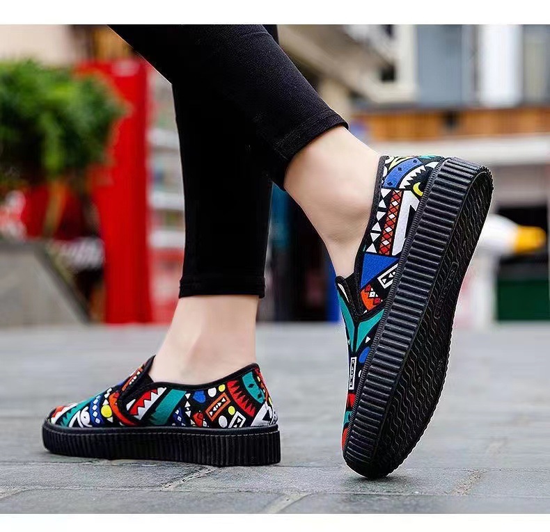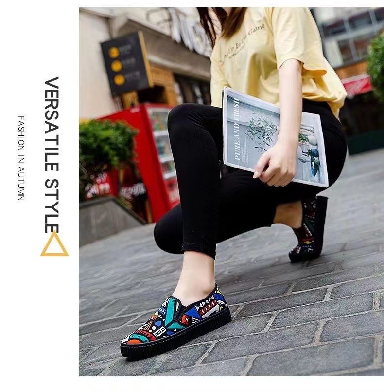 새로운 봄 새로운 낙서 작업 다목적 작은 천 신발 여성 거리 플랫폼 머핀 한국식 학생 신발 운전