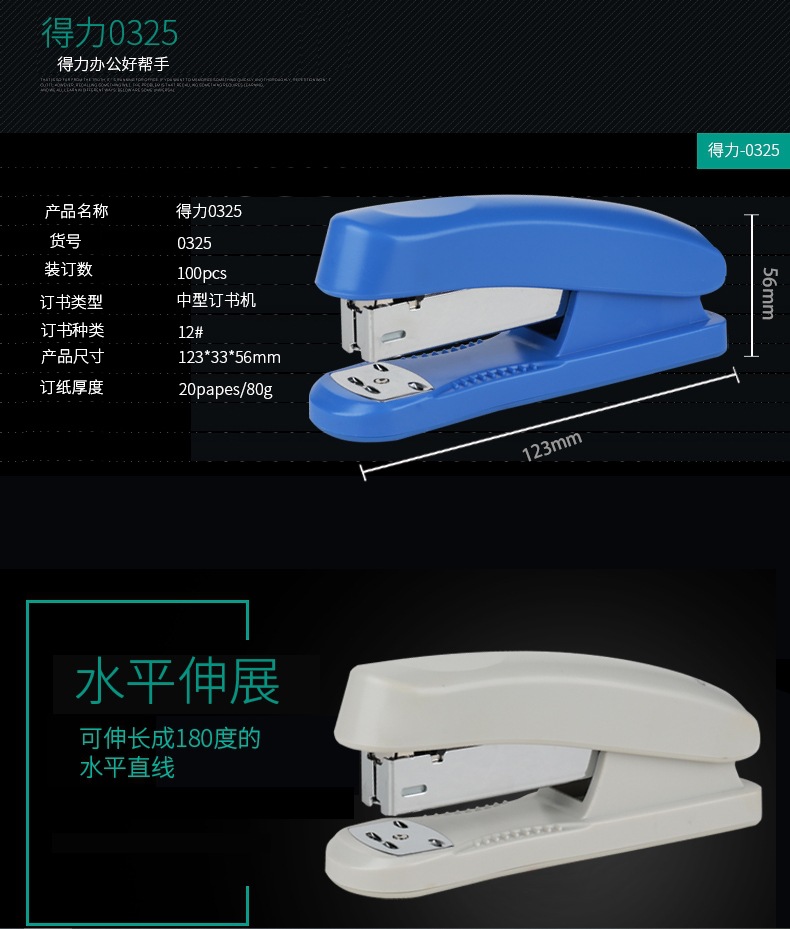 델리 (델리) 0325 스테이플러 No. 12 스테이플러 블랙 블루는 20 페이지의 사무용품을 주문할 수 있습니다.