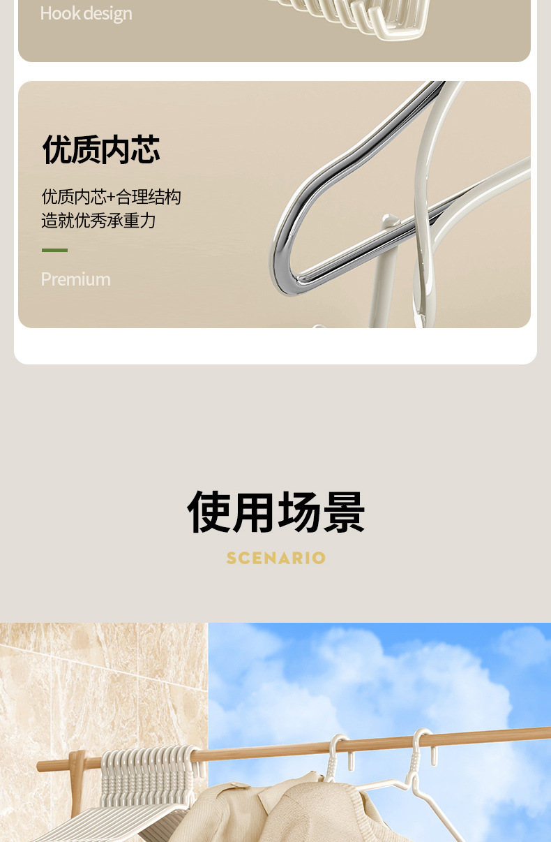 Baicaoyuan 옷 옷걸이 기숙사 학생 옷 옷걸이 발코니 옷 옷걸이 원활한 안티 숄더 옷 랙