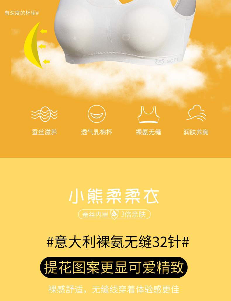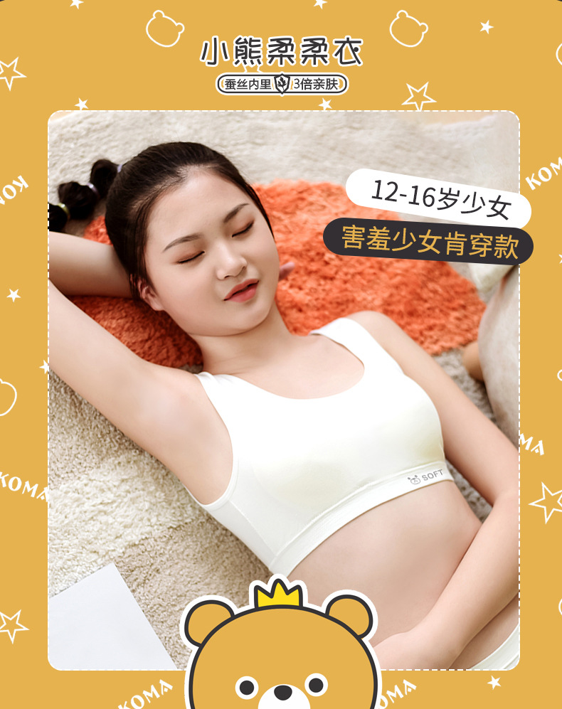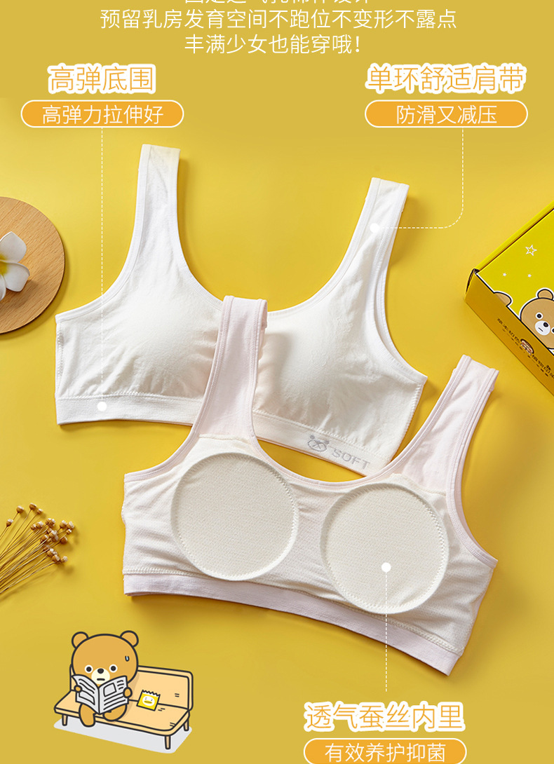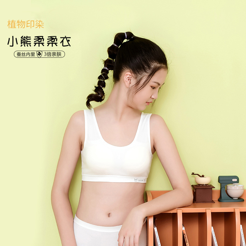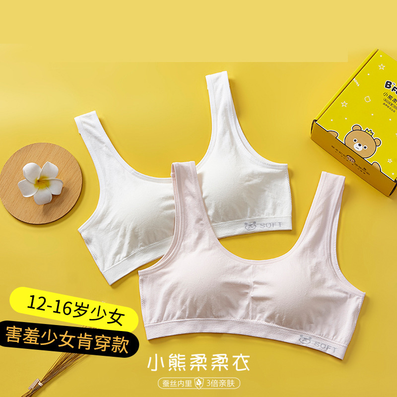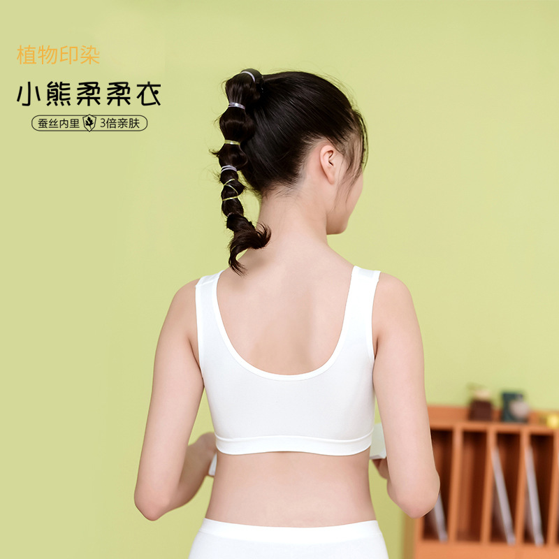 리틀 베어 소프트 의류 개발 기간 소녀 속옷 베어 암모니아 원활한 실크 조끼 큰 소녀 안티 범프 2 차 브래지어