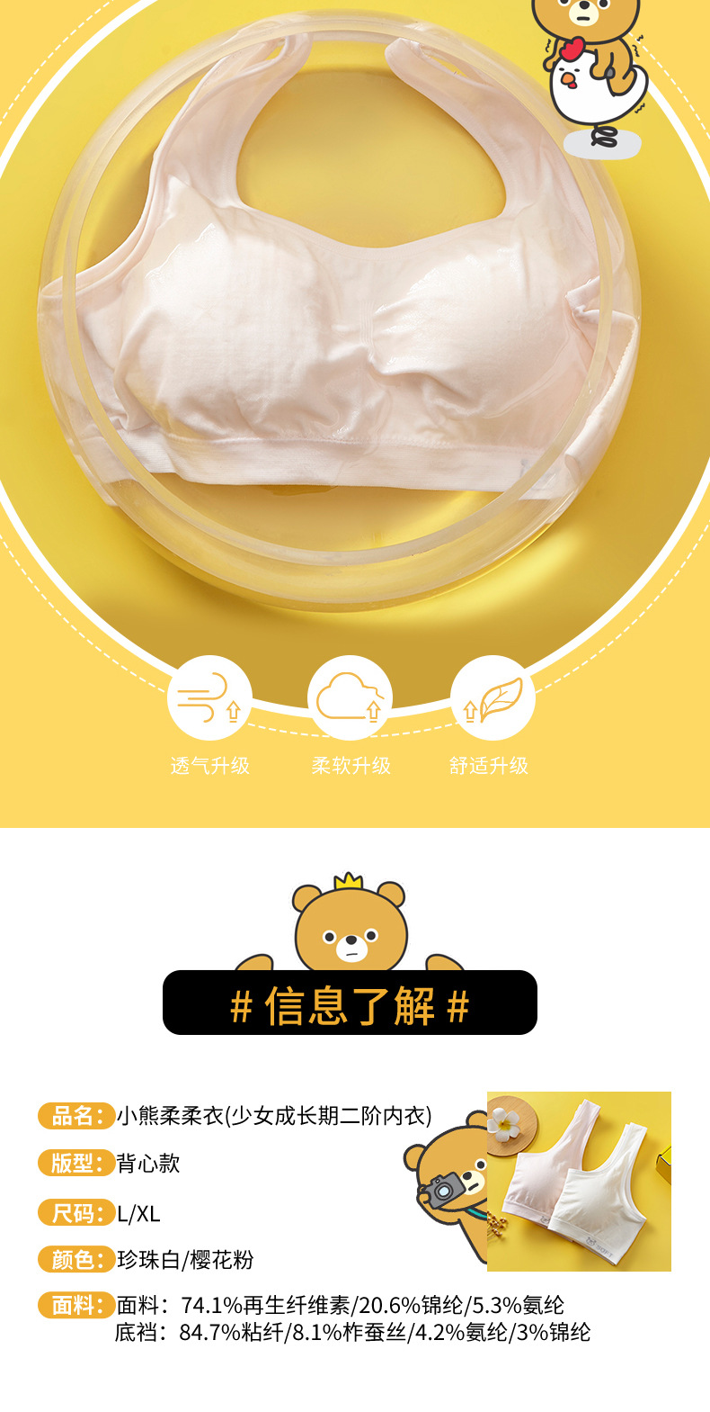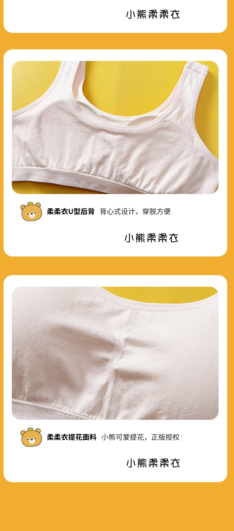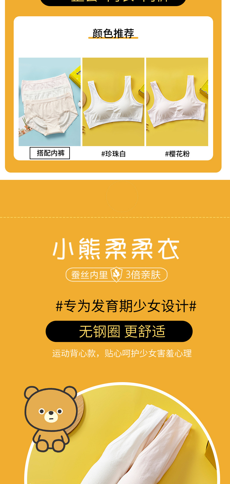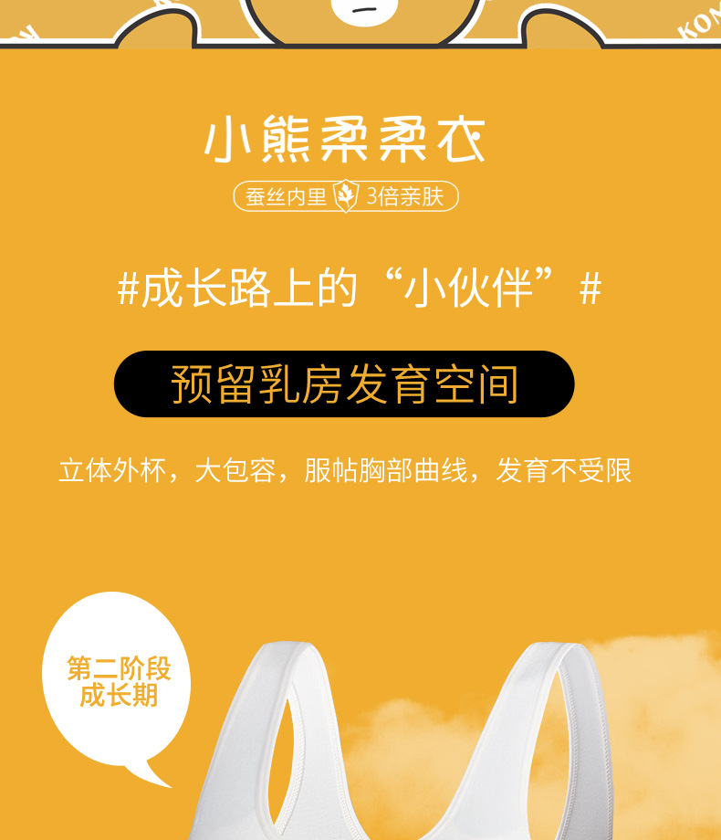 리틀 베어 소프트 의류 개발 기간 소녀 속옷 베어 암모니아 원활한 실크 조끼 큰 소녀 안티 범프 2 차 브래지어