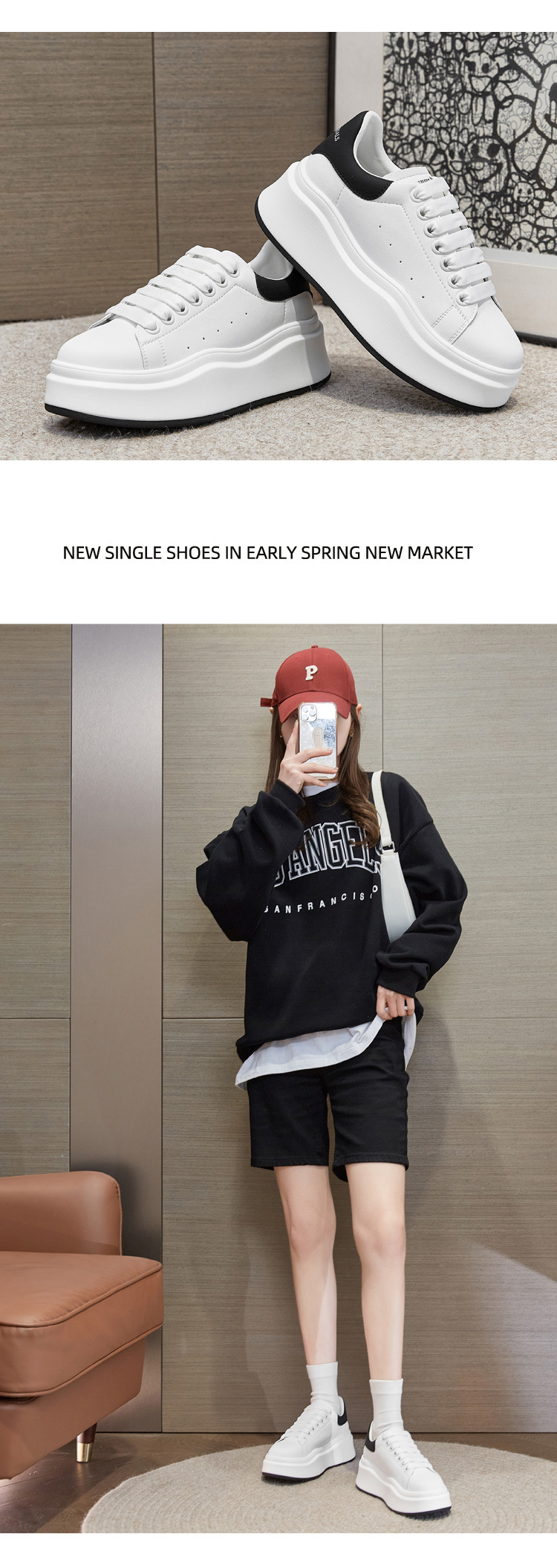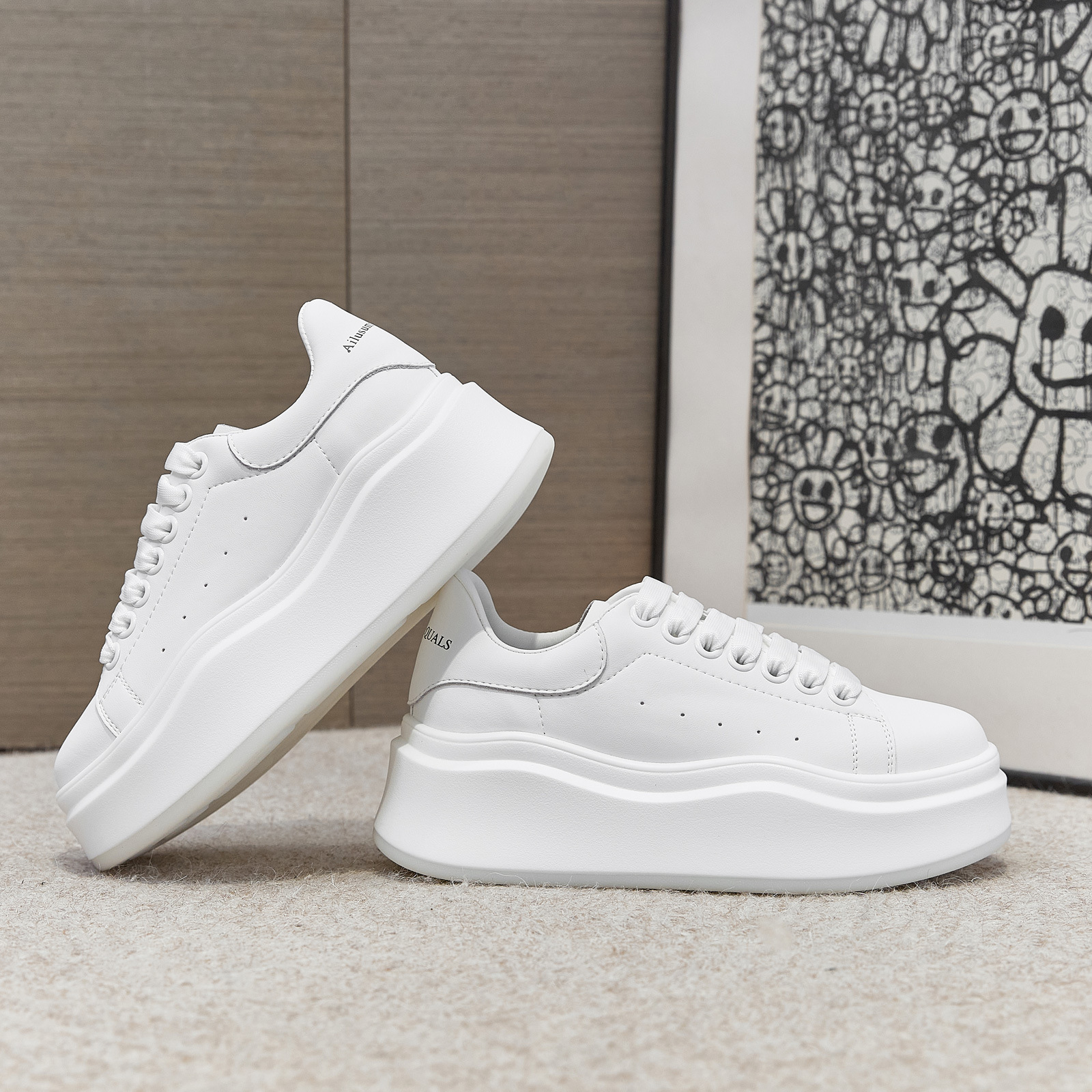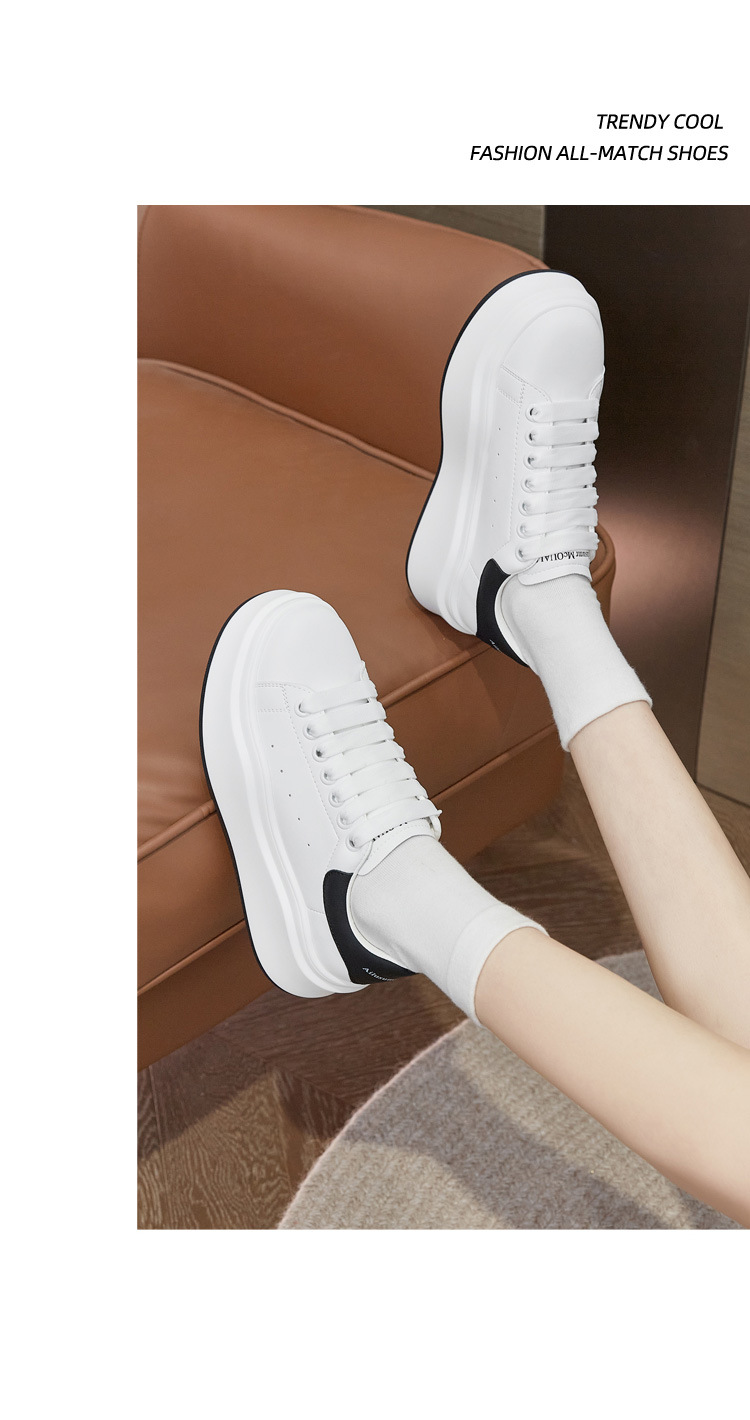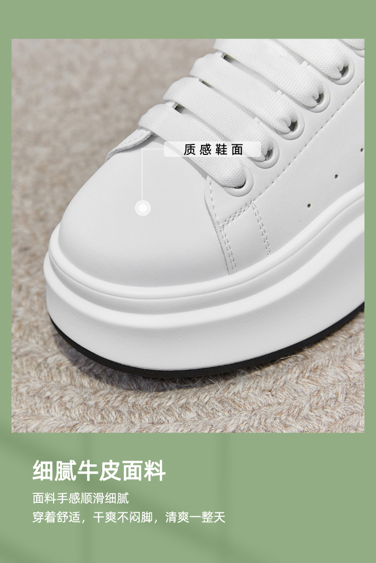 2025 봄 여름 신작 정품 가죽 맥퀸 내부 높이 증가 흰색 신발 플랫폼 스포츠 캐주얼 신발 여성용 두꺼운 밑창 운동화
