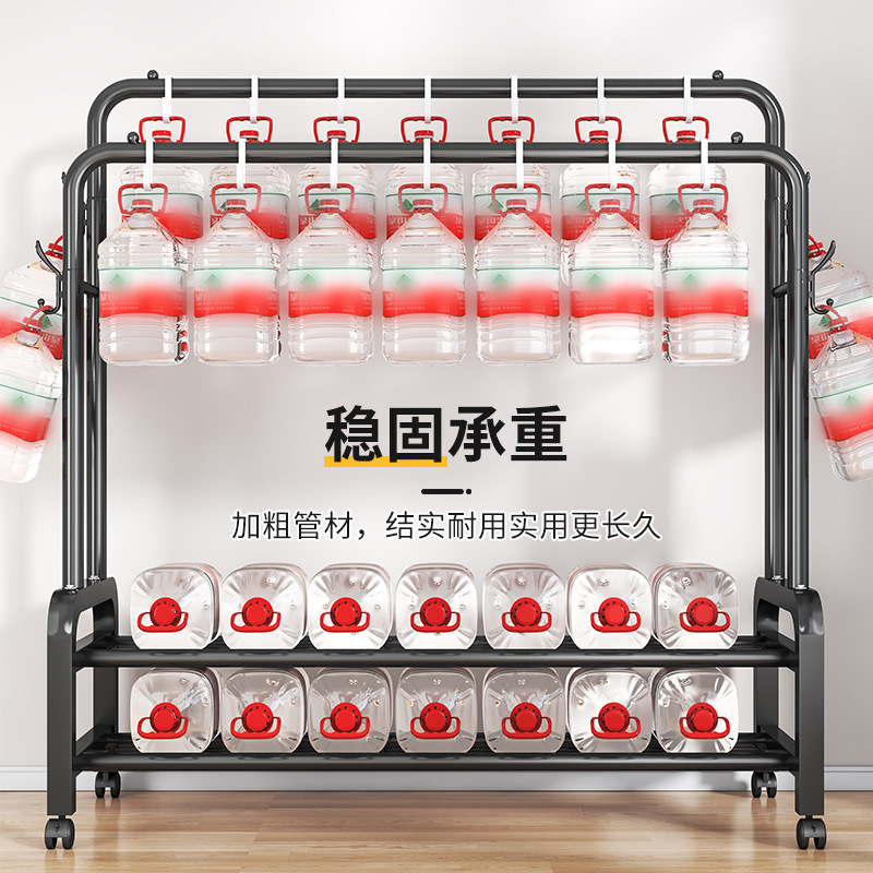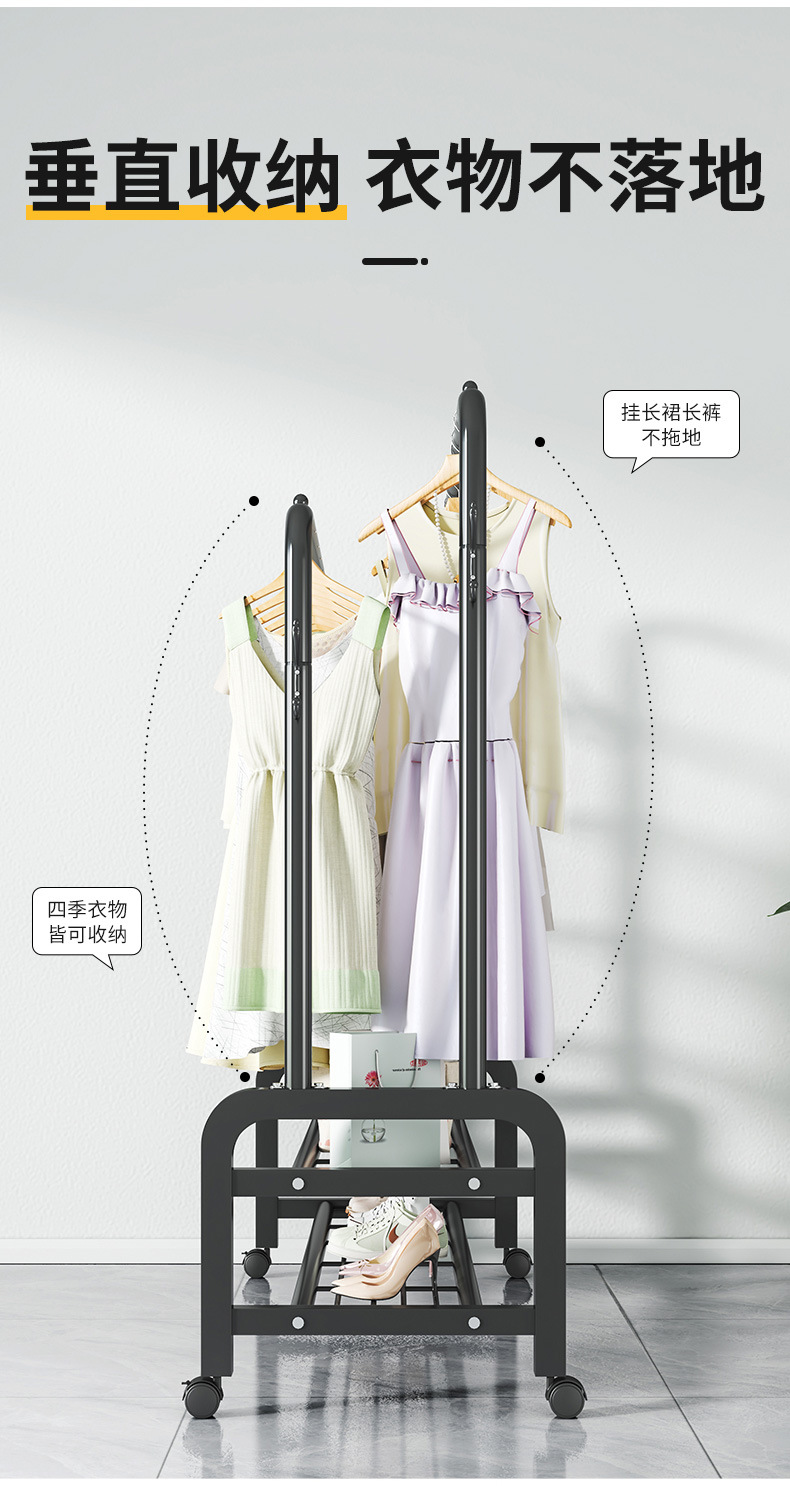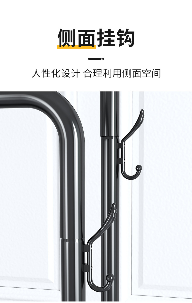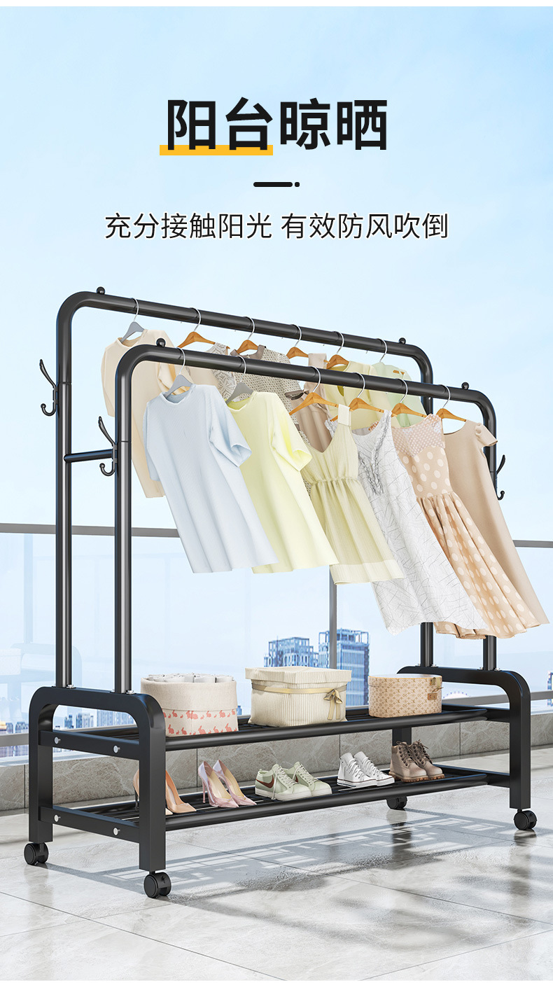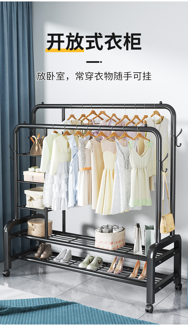 25 원형 옷걸이, 이중 극, 이중 측면, 3단 수납망, 후크 4개, 130 검정색 + 바퀴