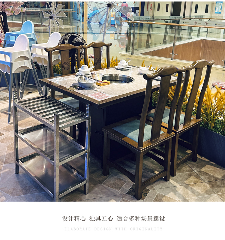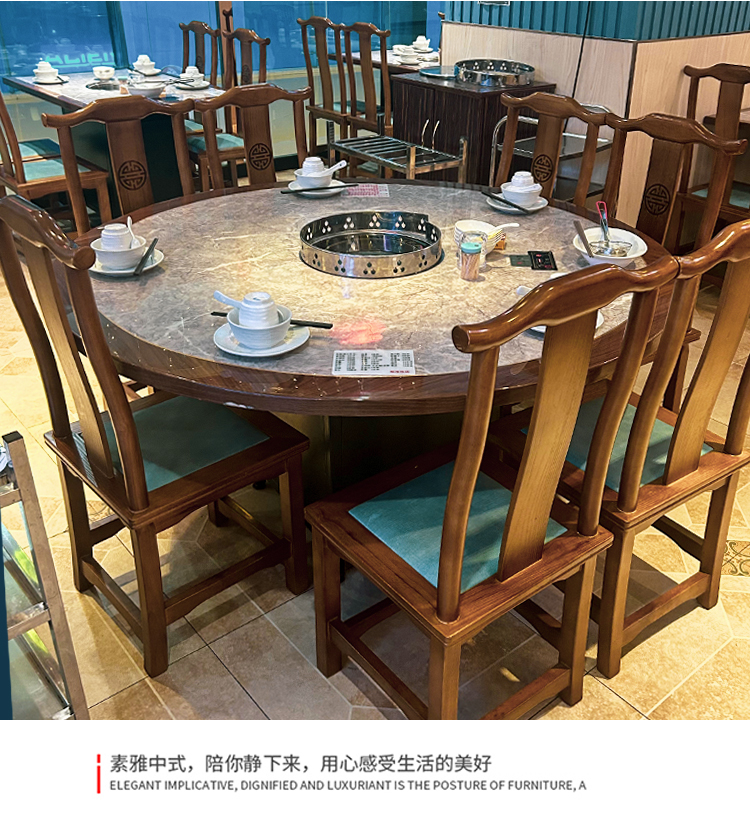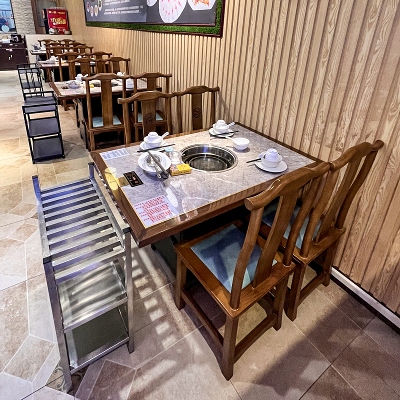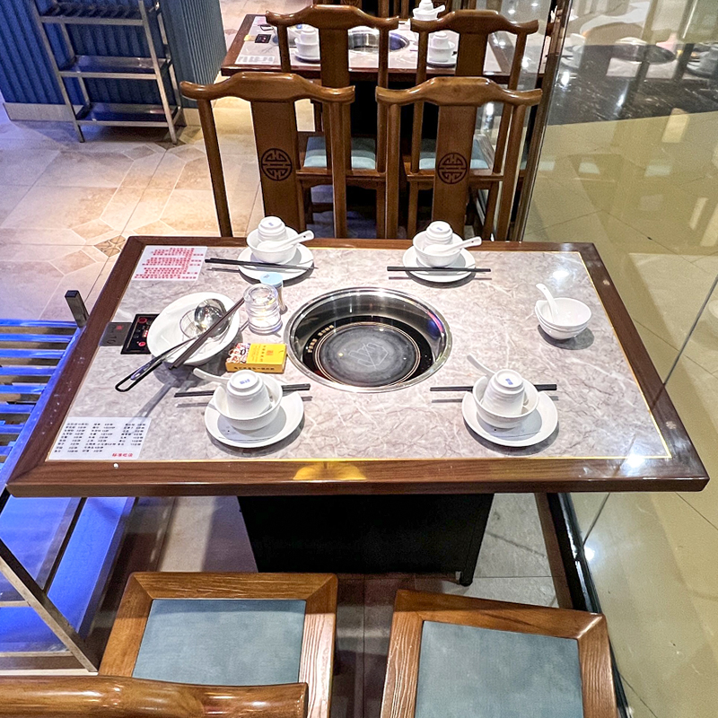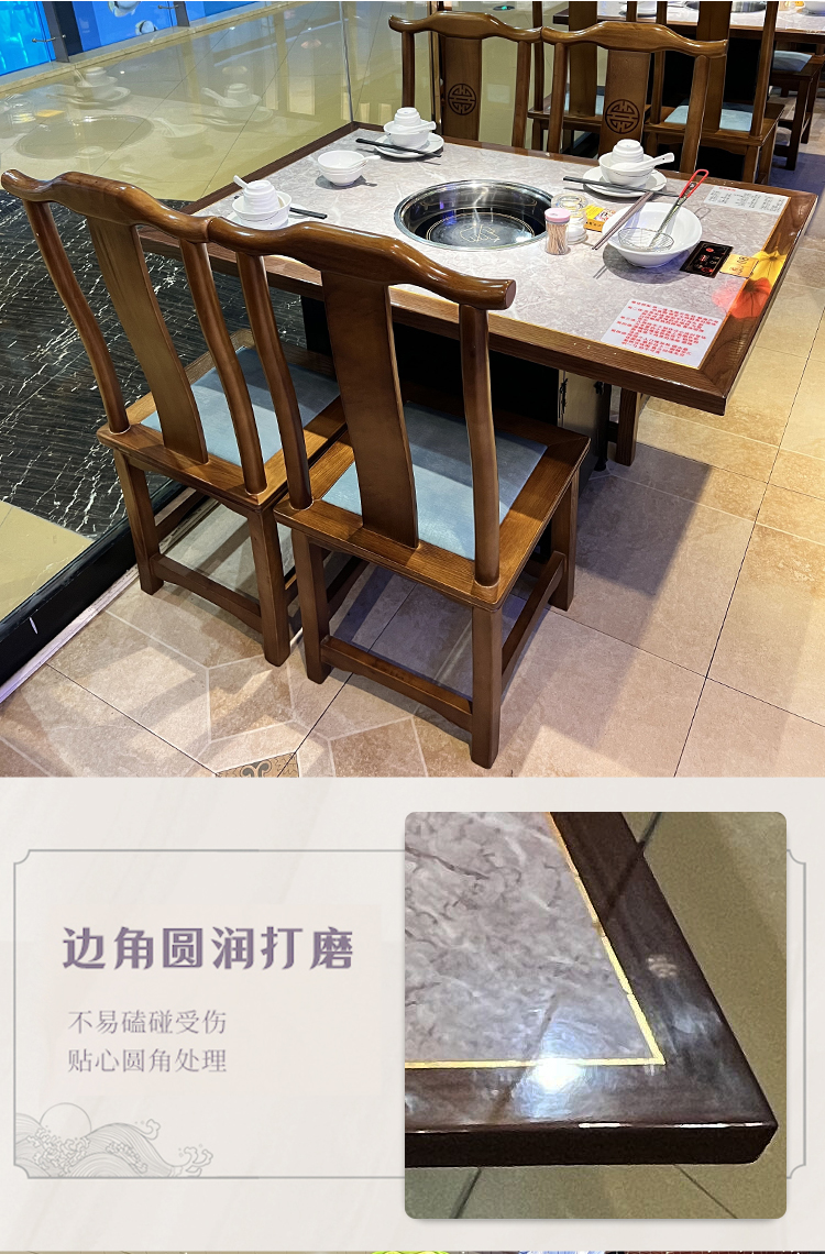 중국 스타일 냄비 레스토랑 식탁과 의자 조합 후난 레스토랑 가구 대리석 냄비 테이블 유도 밥솥 통합