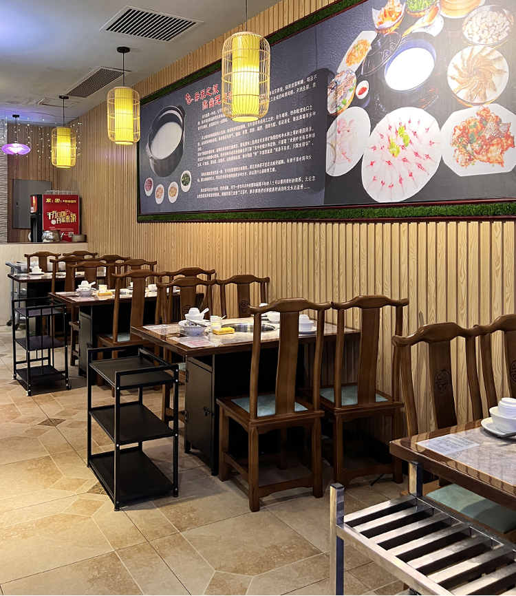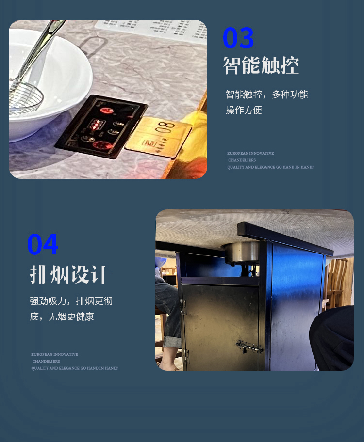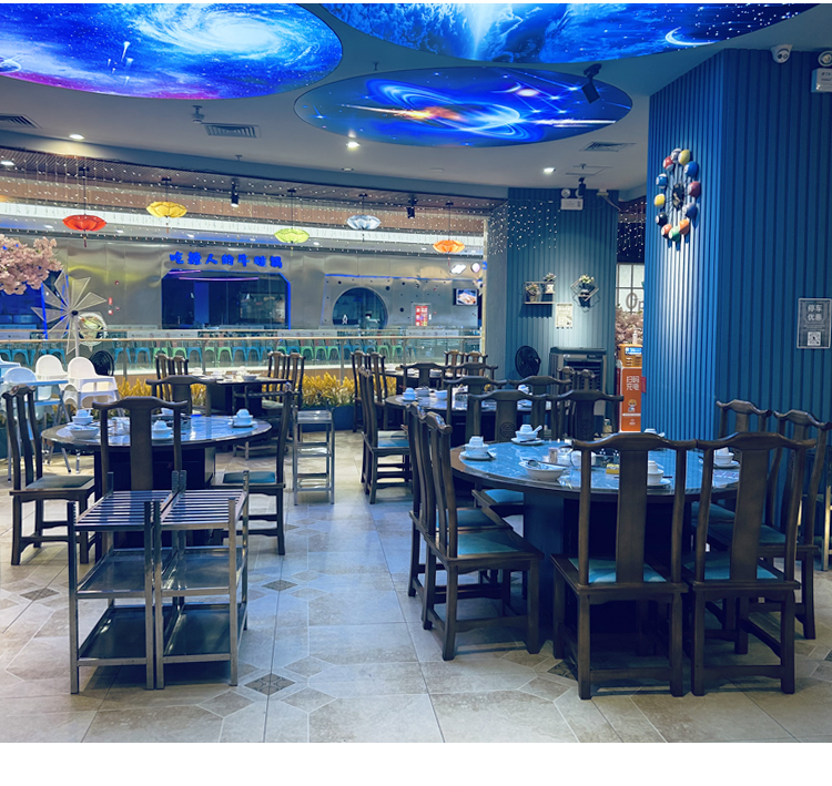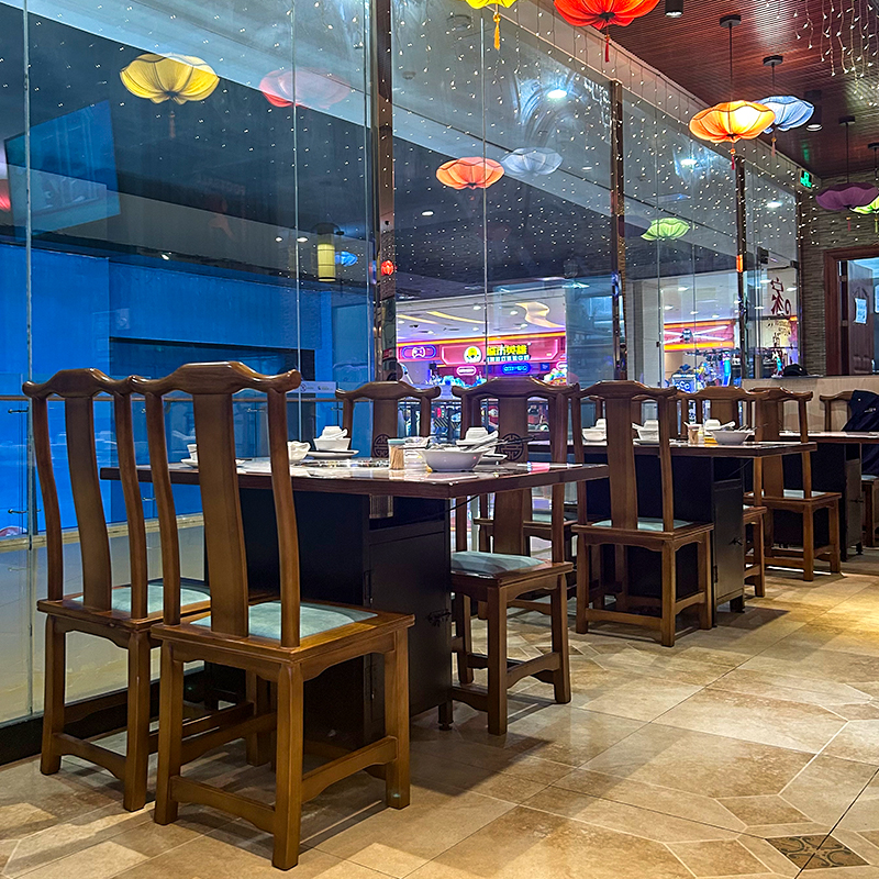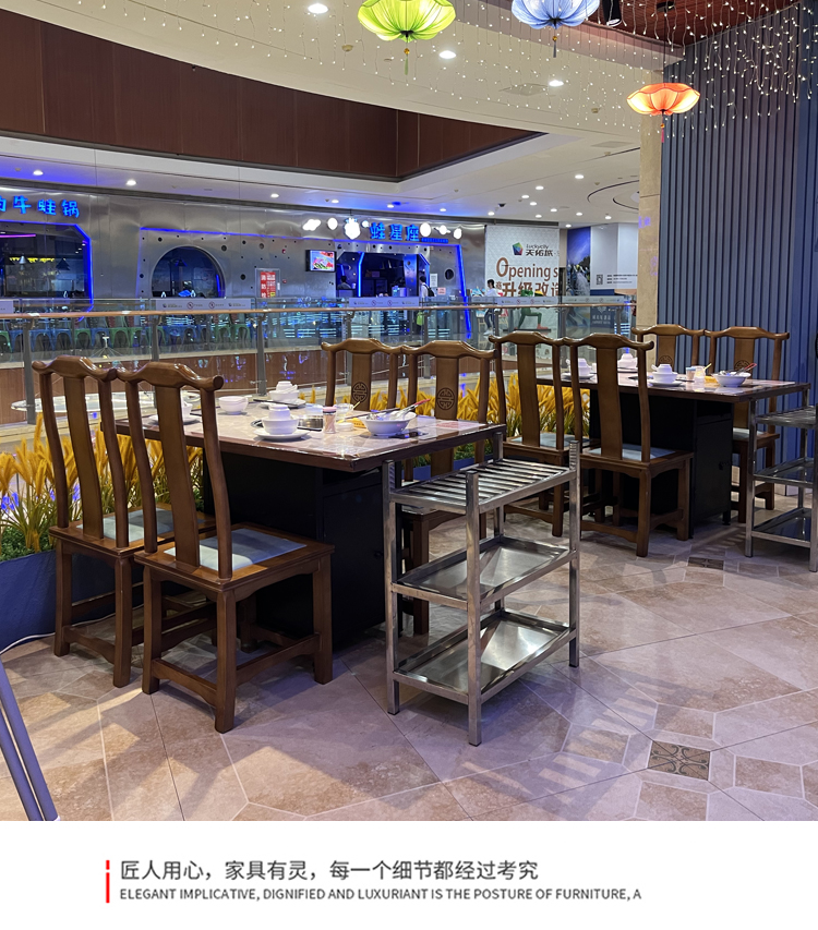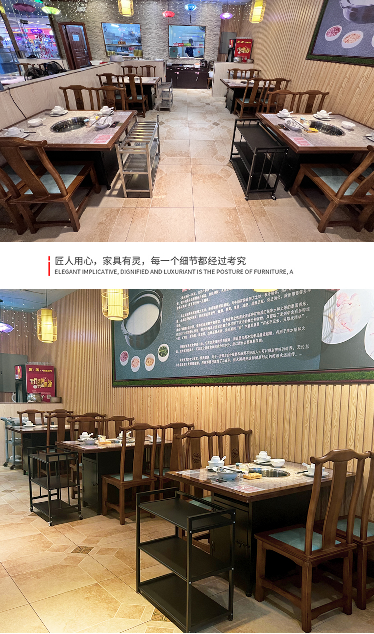 중국 스타일 냄비 레스토랑 식탁과 의자 조합 후난 레스토랑 가구 대리석 냄비 테이블 유도 밥솥 통합