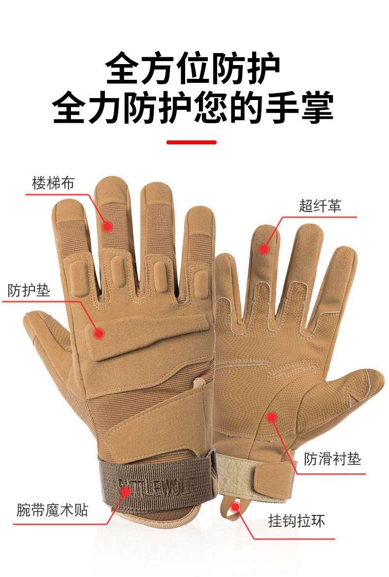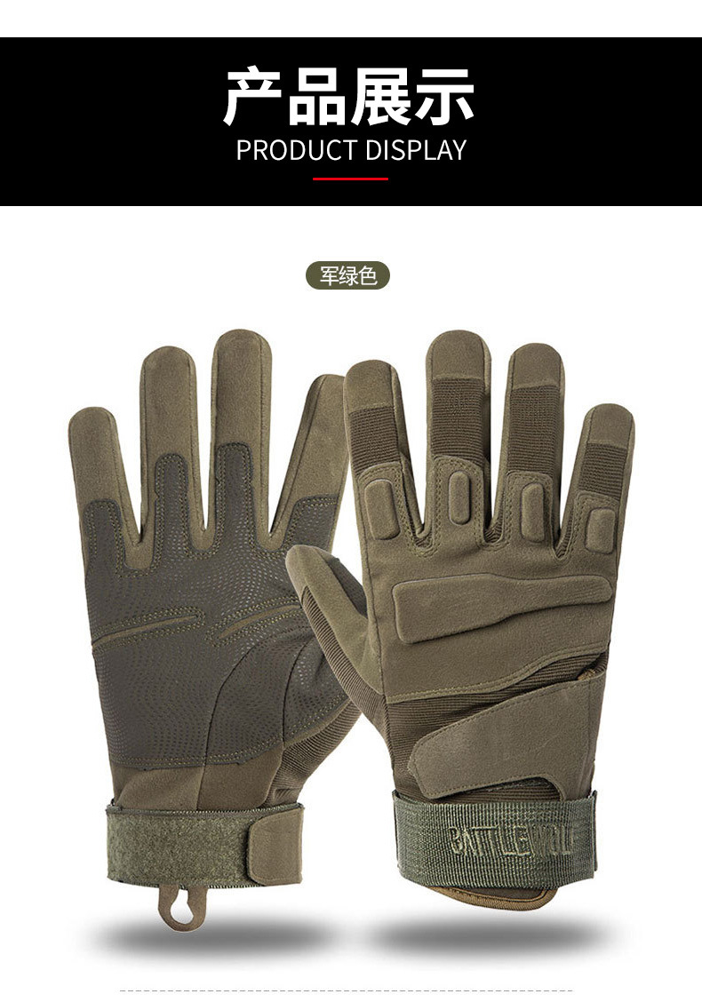 군사 팬들을 위한 전술용 풀 핑거 장갑 남성용 야외 스포츠 등산 훈련 피트니스 오토바이 라이딩 미끄럼 방지 군용 녹색 보호 장갑