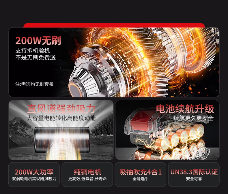 [고속 터빈 브러시리스 upgrade-10C 단일 전력] 9999999R 폭발 흡입/흡입 불어 충전 4-in-1/필터 요소 * 2 TYpe-C 고속 충전