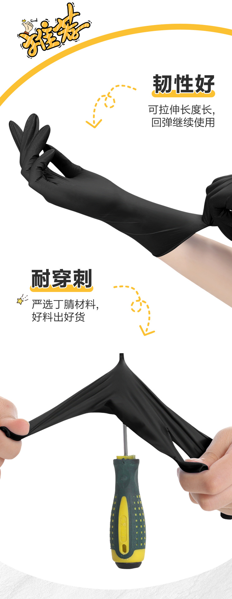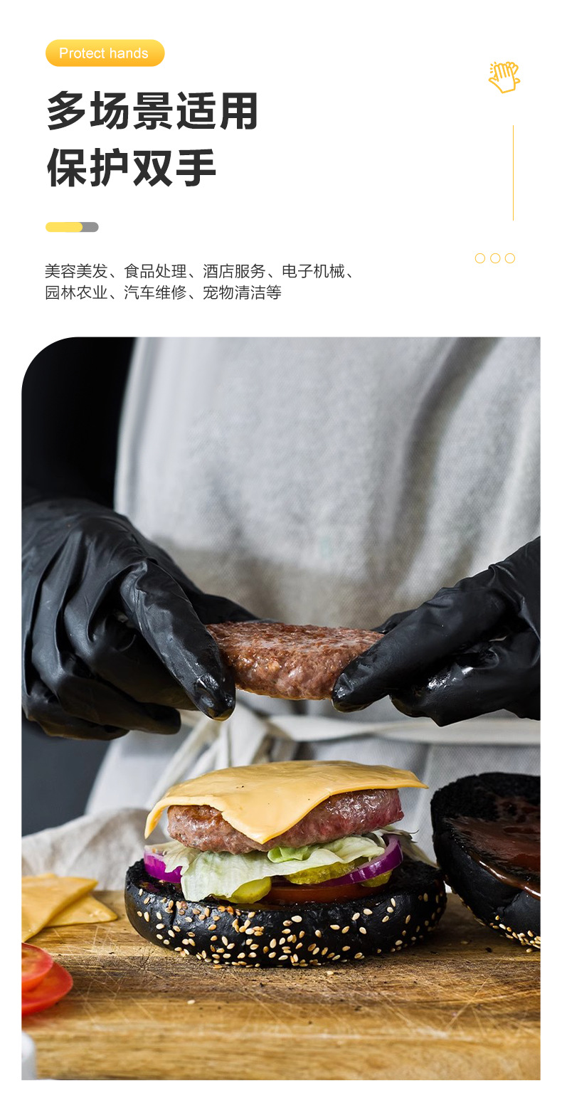 Yingke 업그레이드 버전 식품 등급 검정색 니트릴 *S 사이즈