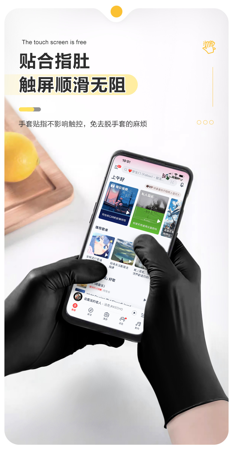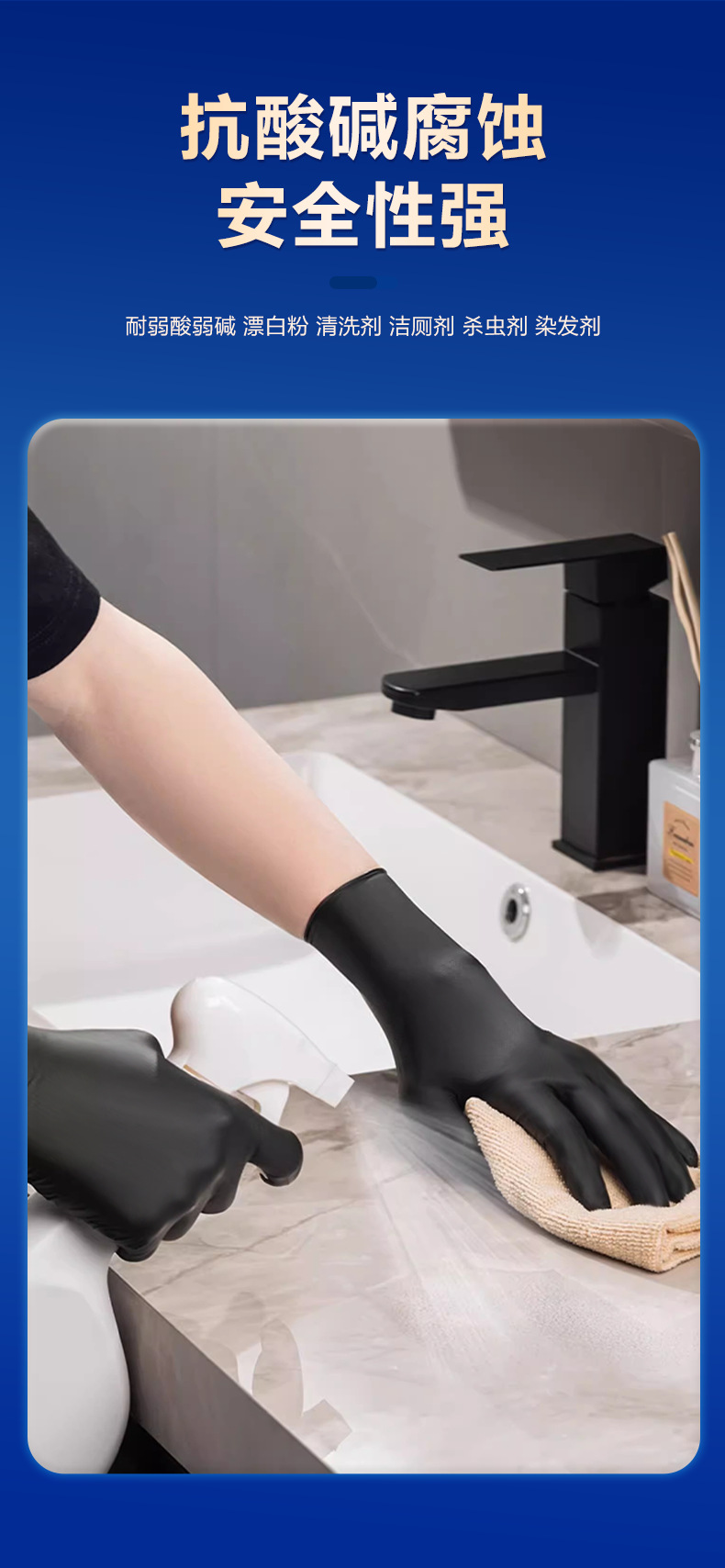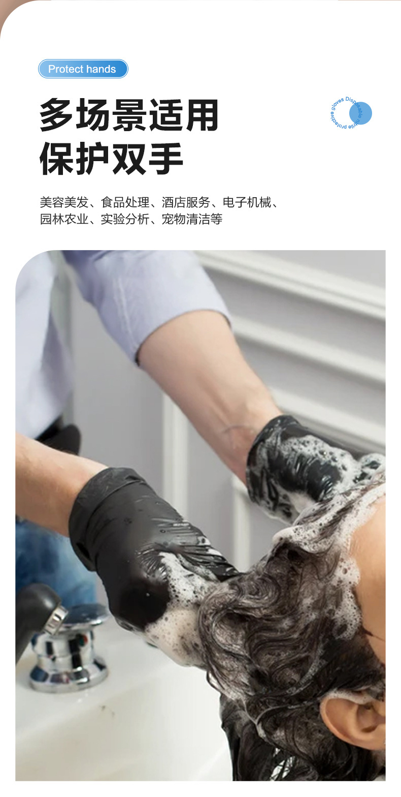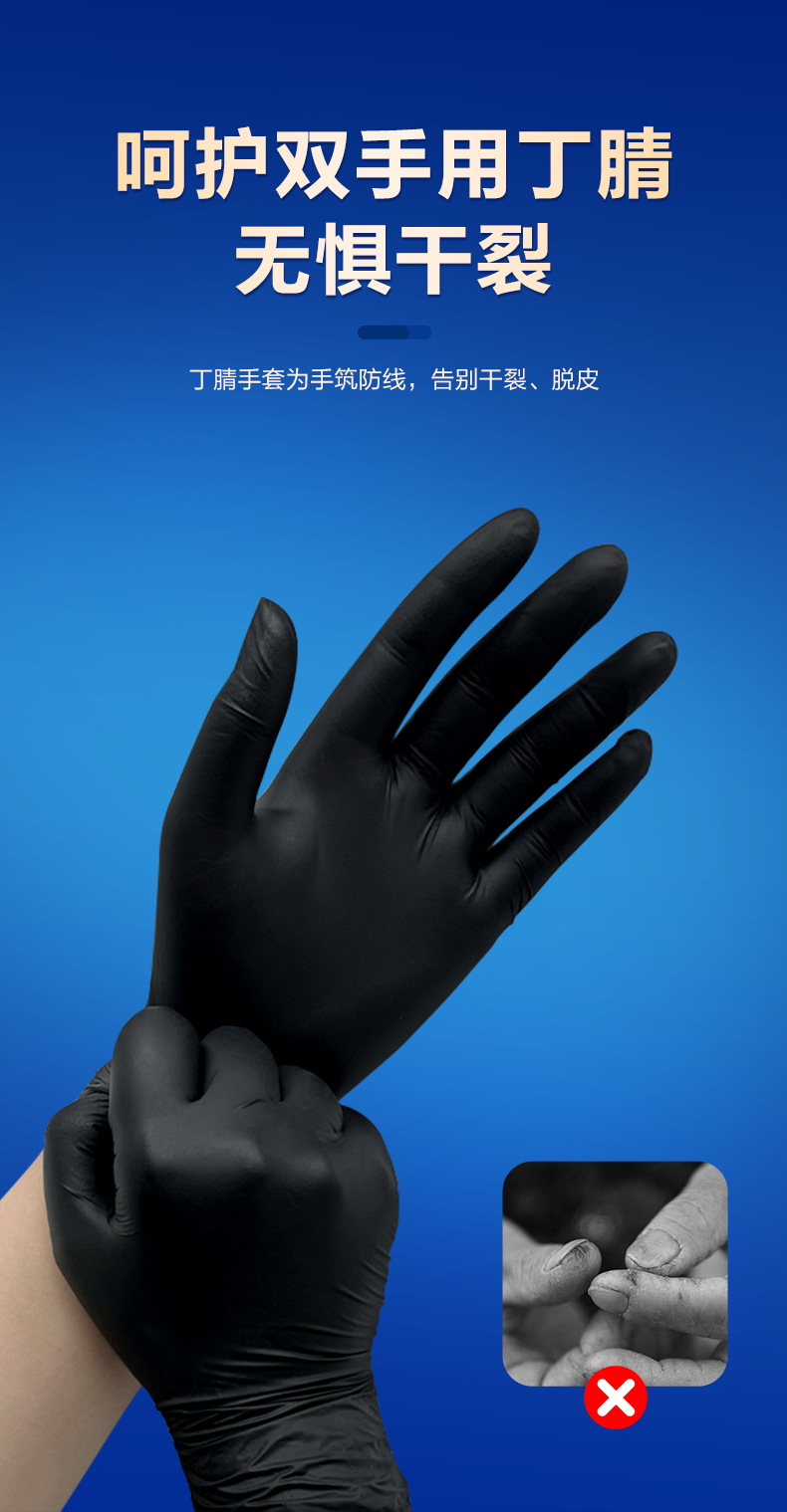 잉케 일회용 장갑 니트릴 고무 니트릴 K85 라텍스 식품 가공 주방 미용 케이터링 PVC 블랙