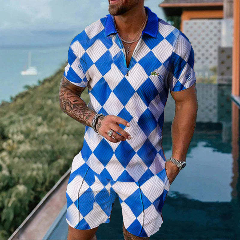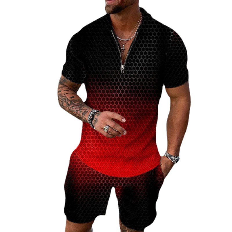 유럽과 미국의 국경을 넘나 드는 새로운 남성 3dpolo 셔츠 세트 옷깃 반팔, Z 캐주얼 남성 티셔츠 비치 팬츠