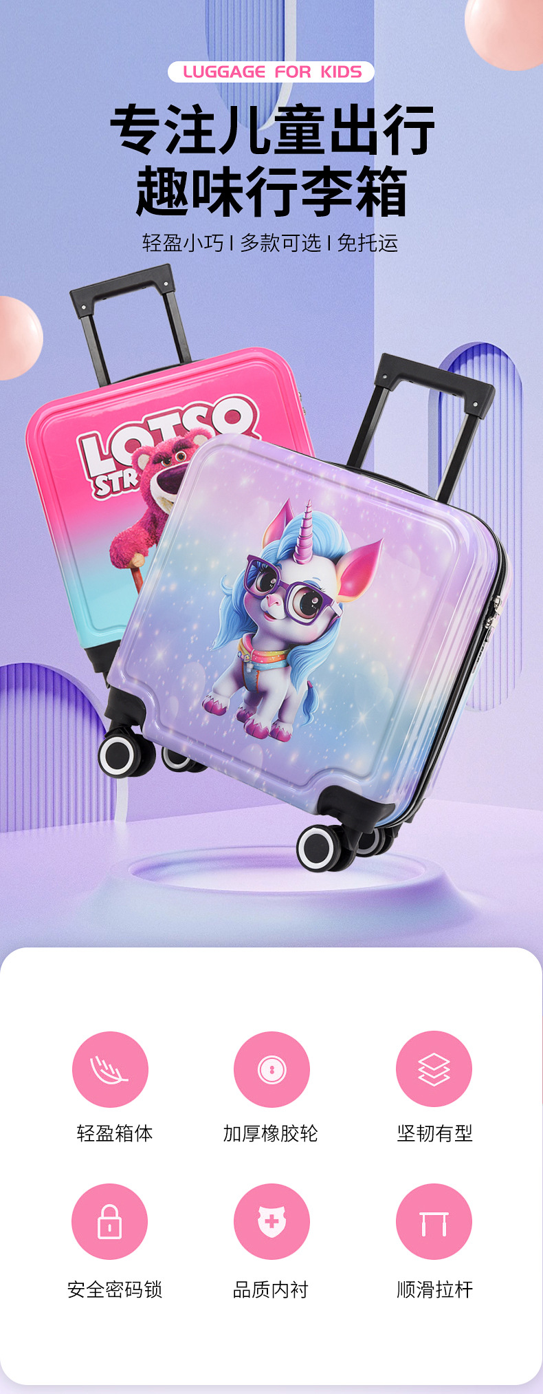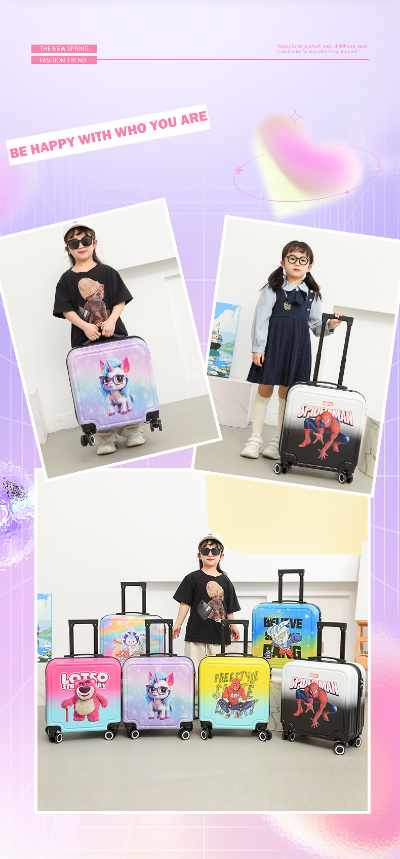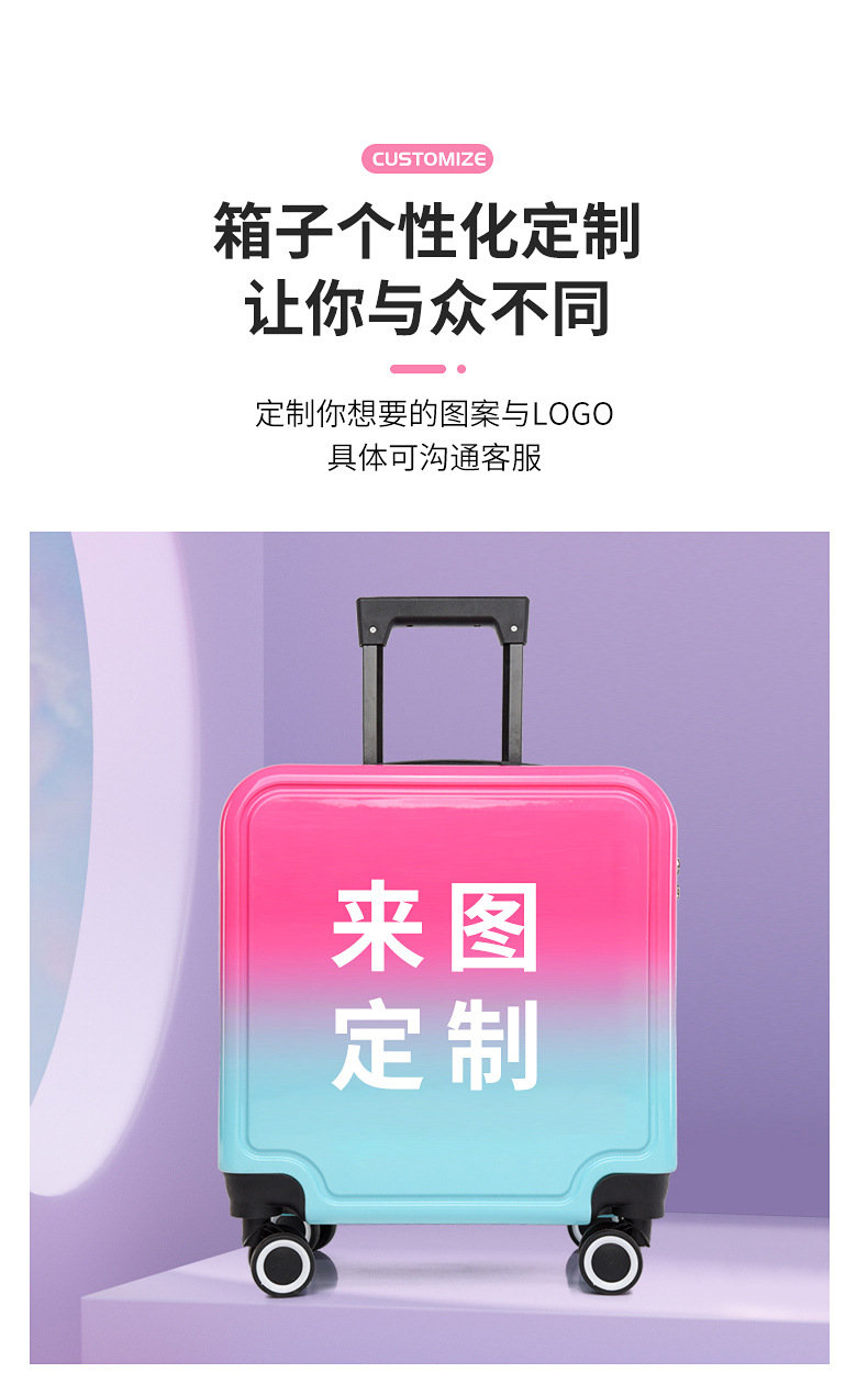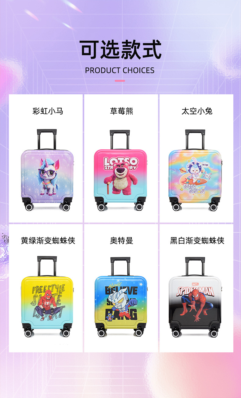 새로운 그라데이션 만화 어린이 여행가방, 회전식 바퀴, 비밀번호 잠금장치, 어린이용 트롤리 가방, 캐주얼 여행가방, 선물용 가방