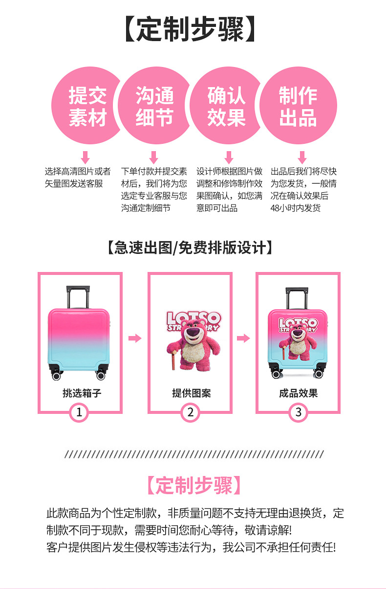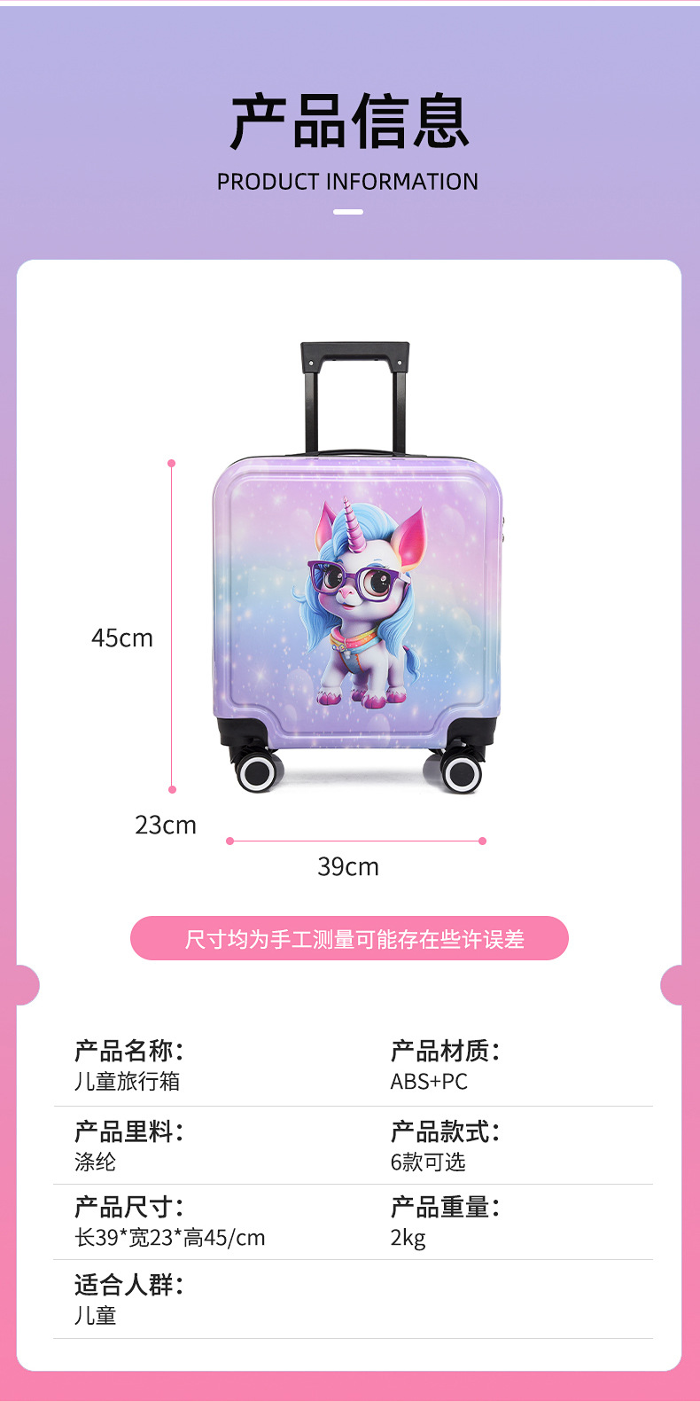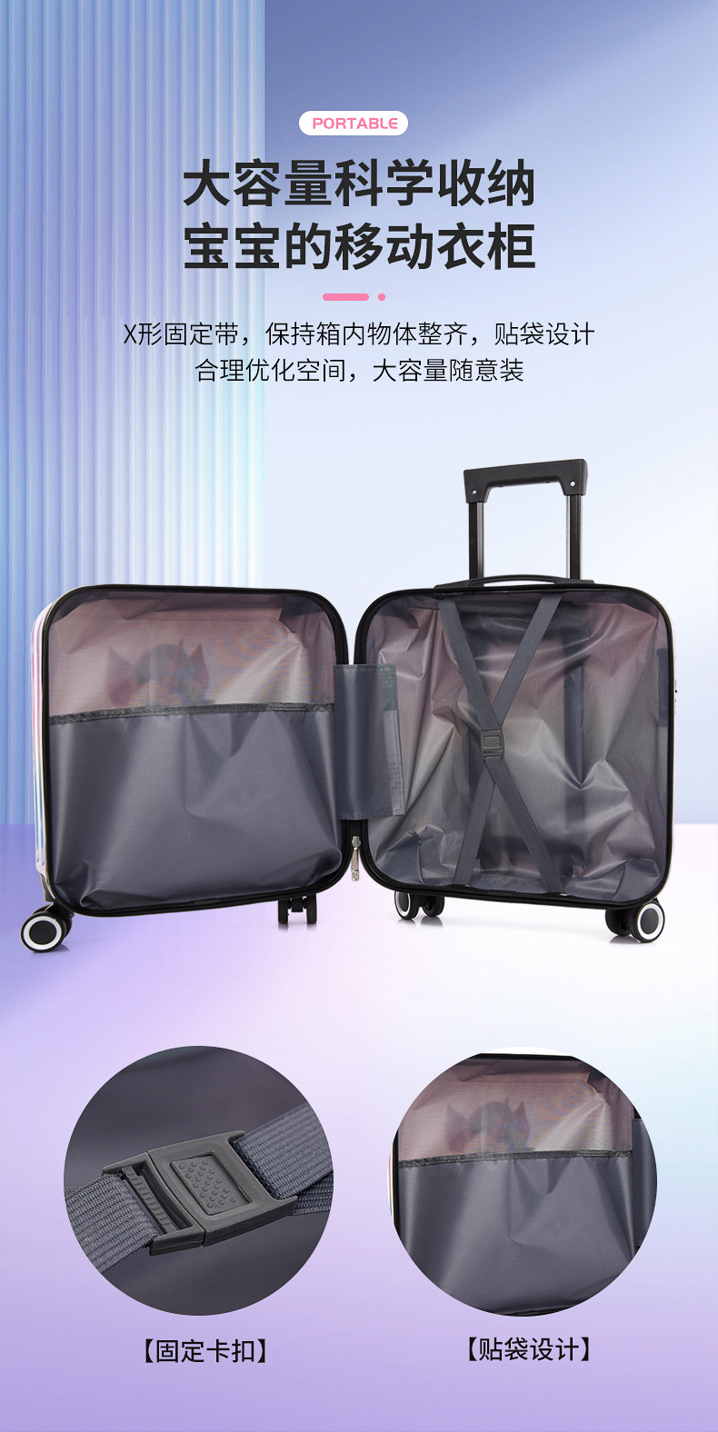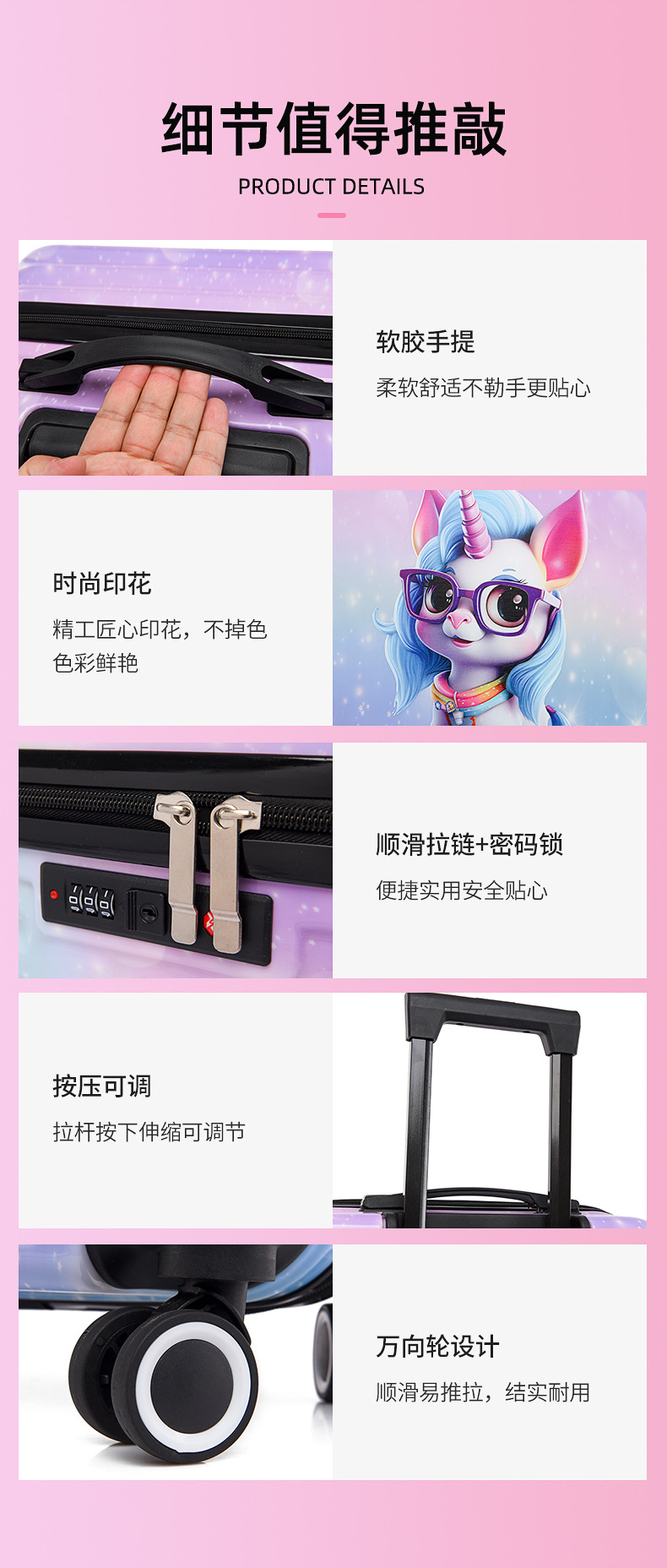 새로운 그라데이션 만화 어린이 여행가방, 회전식 바퀴, 비밀번호 잠금장치, 어린이용 트롤리 가방, 캐주얼 여행가방, 선물용 가방