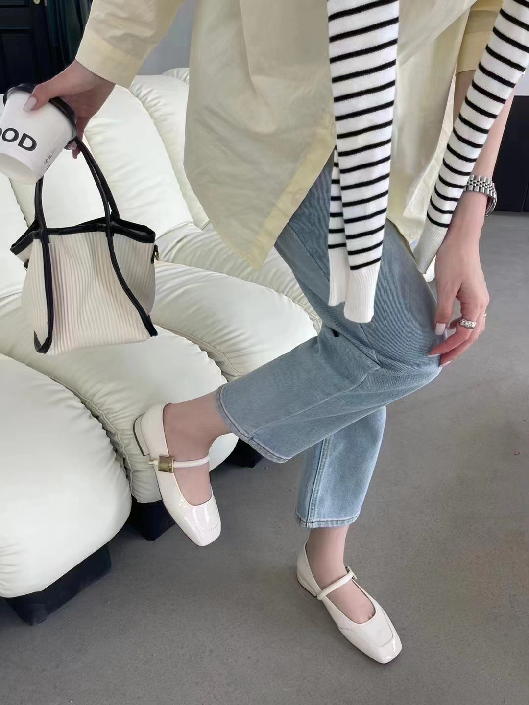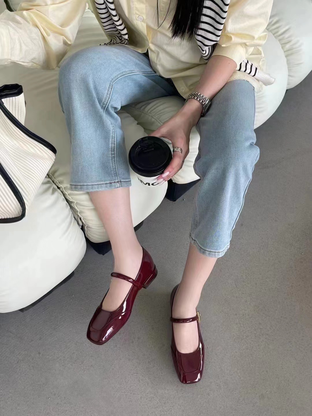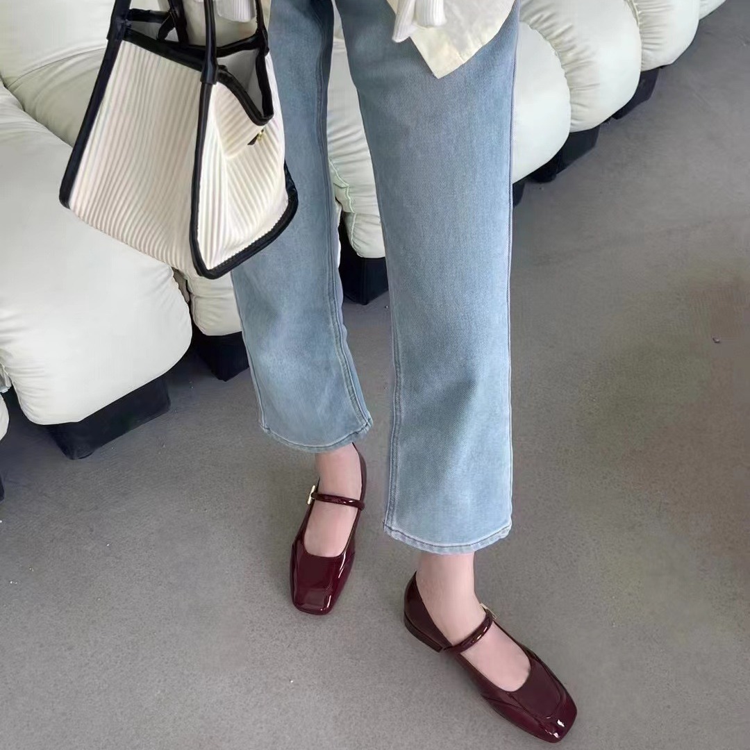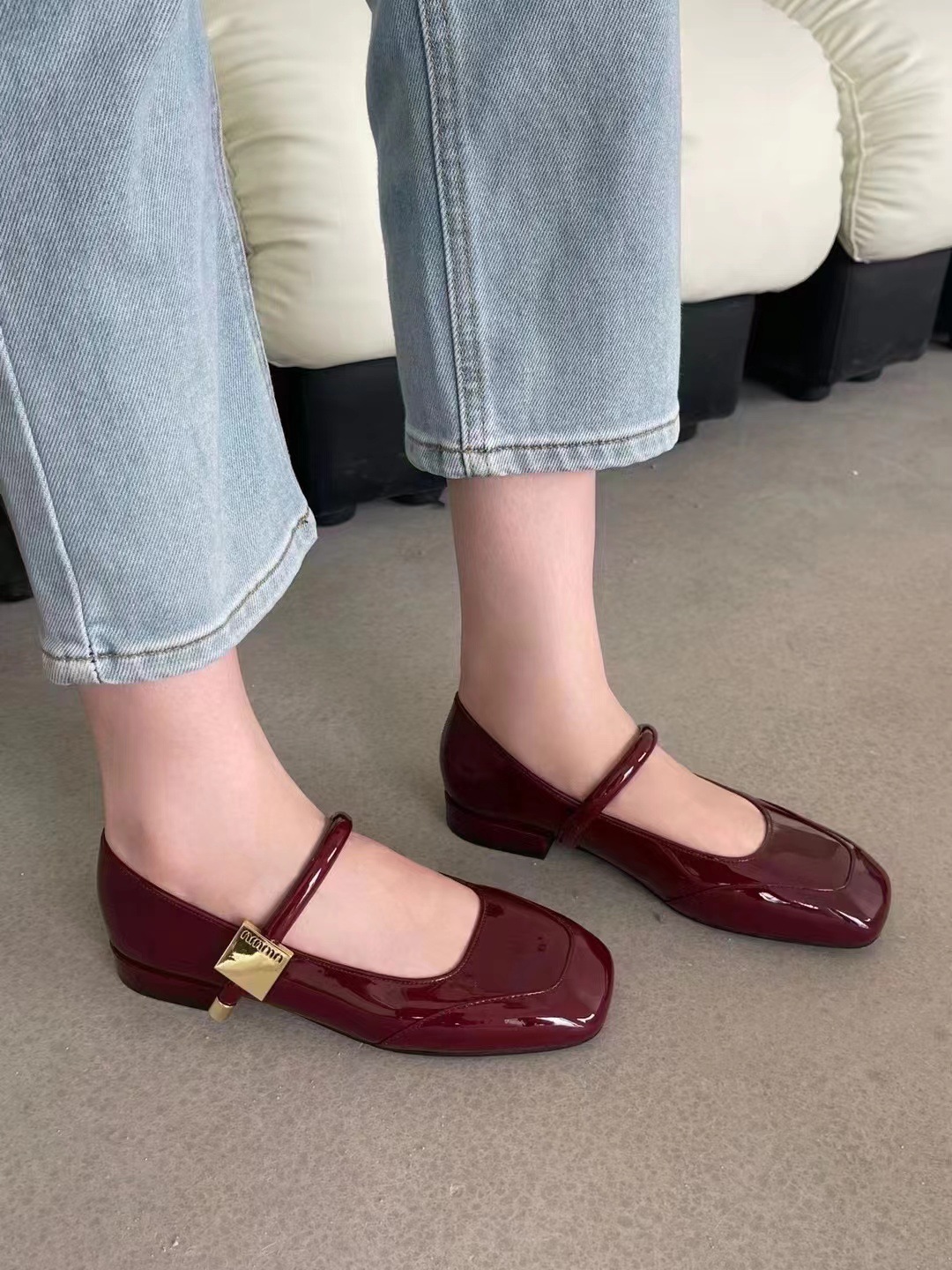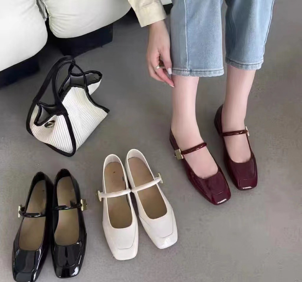Zhu Zhujia 요정 스타일의 플랫 슈즈 여성 2024 새 봄 스퀘어 토 스티칭 올 매치 메리 제인 신발 883503