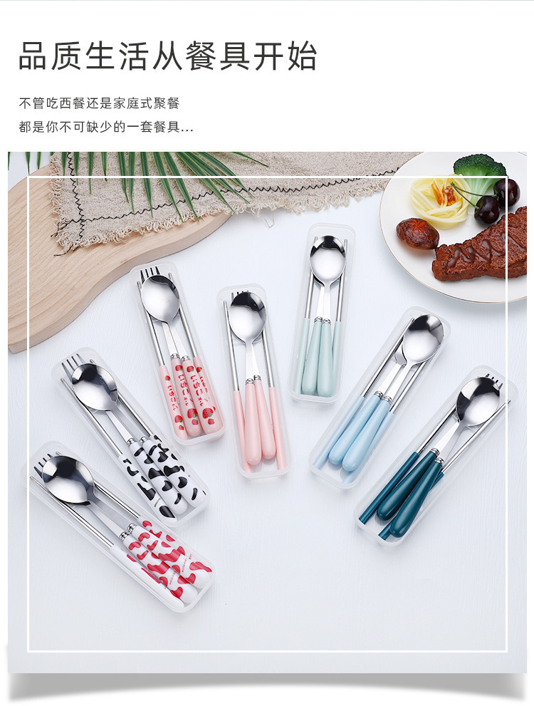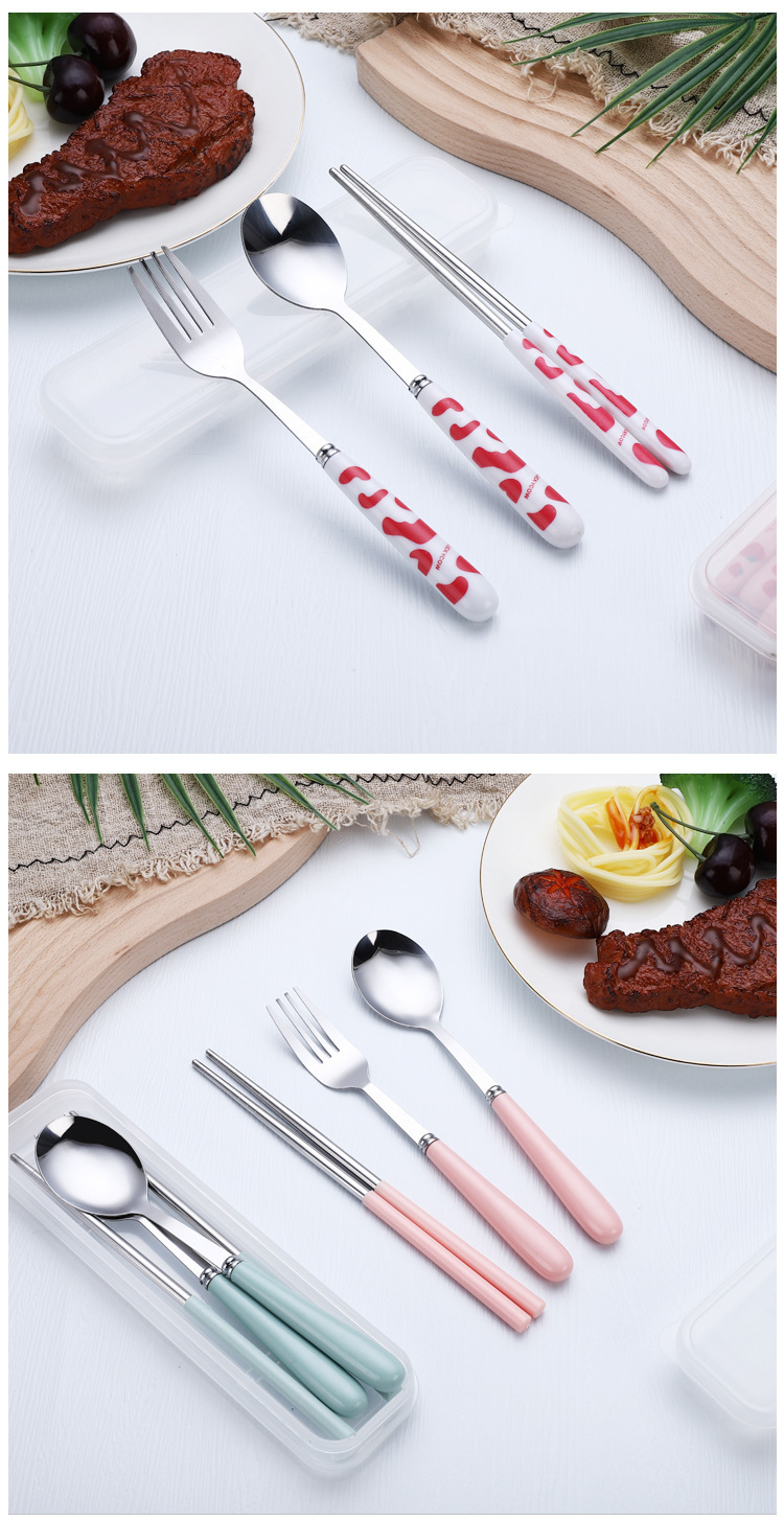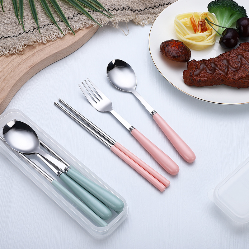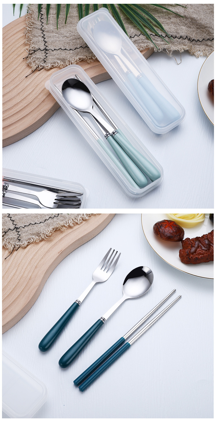 스테인레스 스틸 휴대용 식기 세트 학생 사무실 노동자 야외 여행 저장 상자 숟가락 포크 젓가락 3 피스 세트