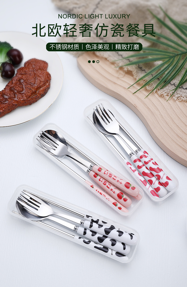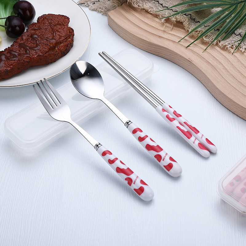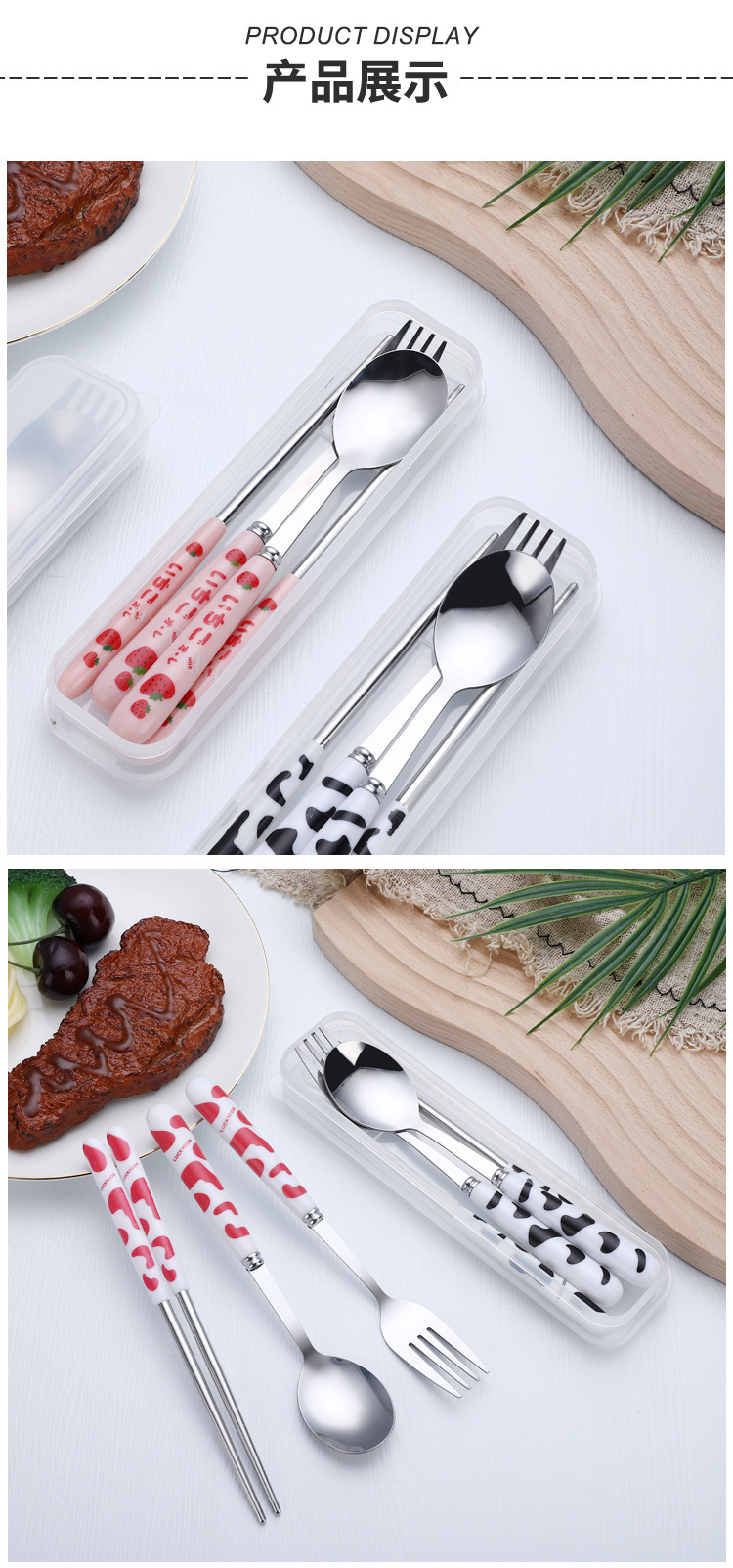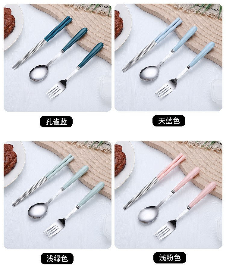 스테인레스 스틸 휴대용 식기 세트 학생 사무실 노동자 야외 여행 저장 상자 숟가락 포크 젓가락 3 피스 세트