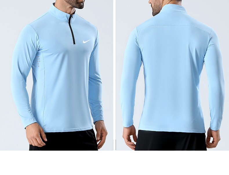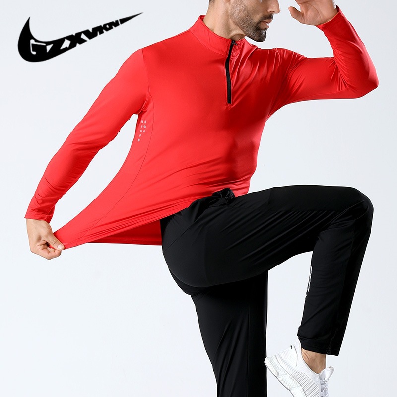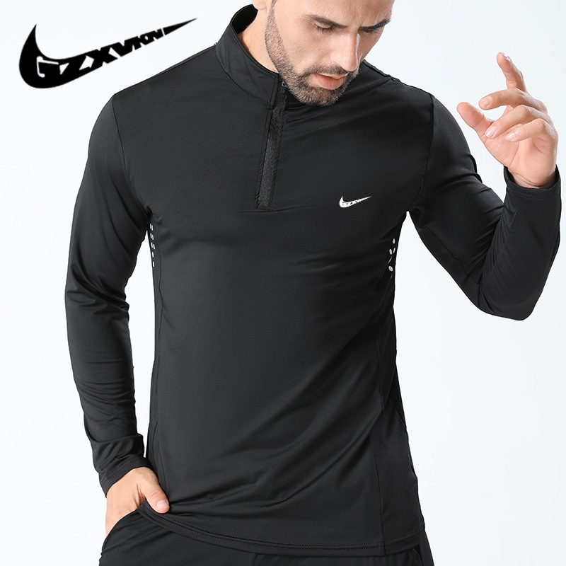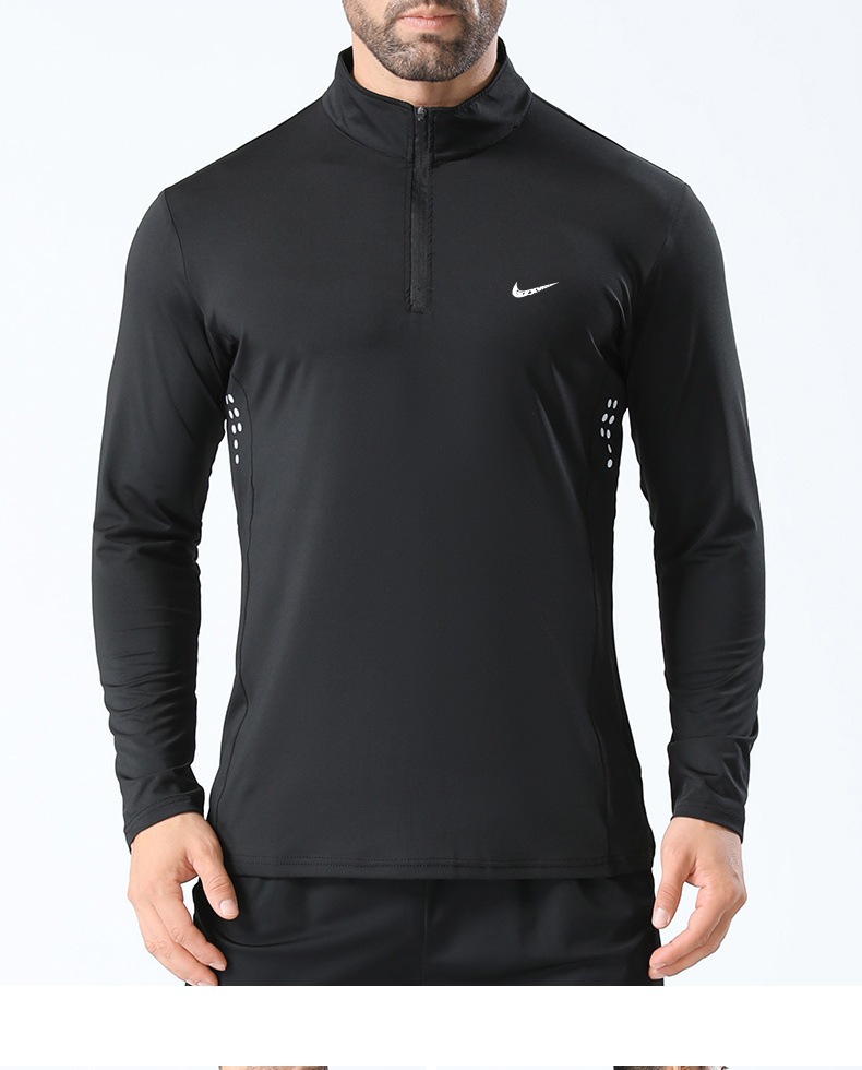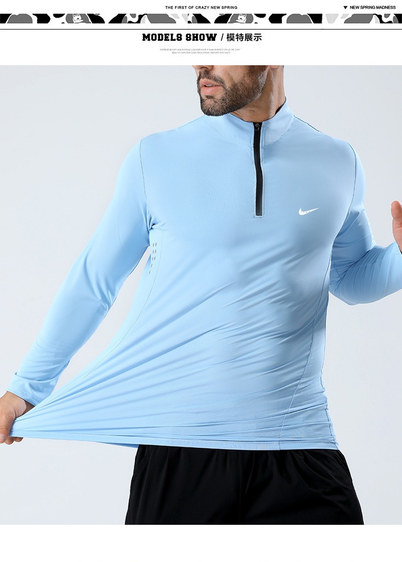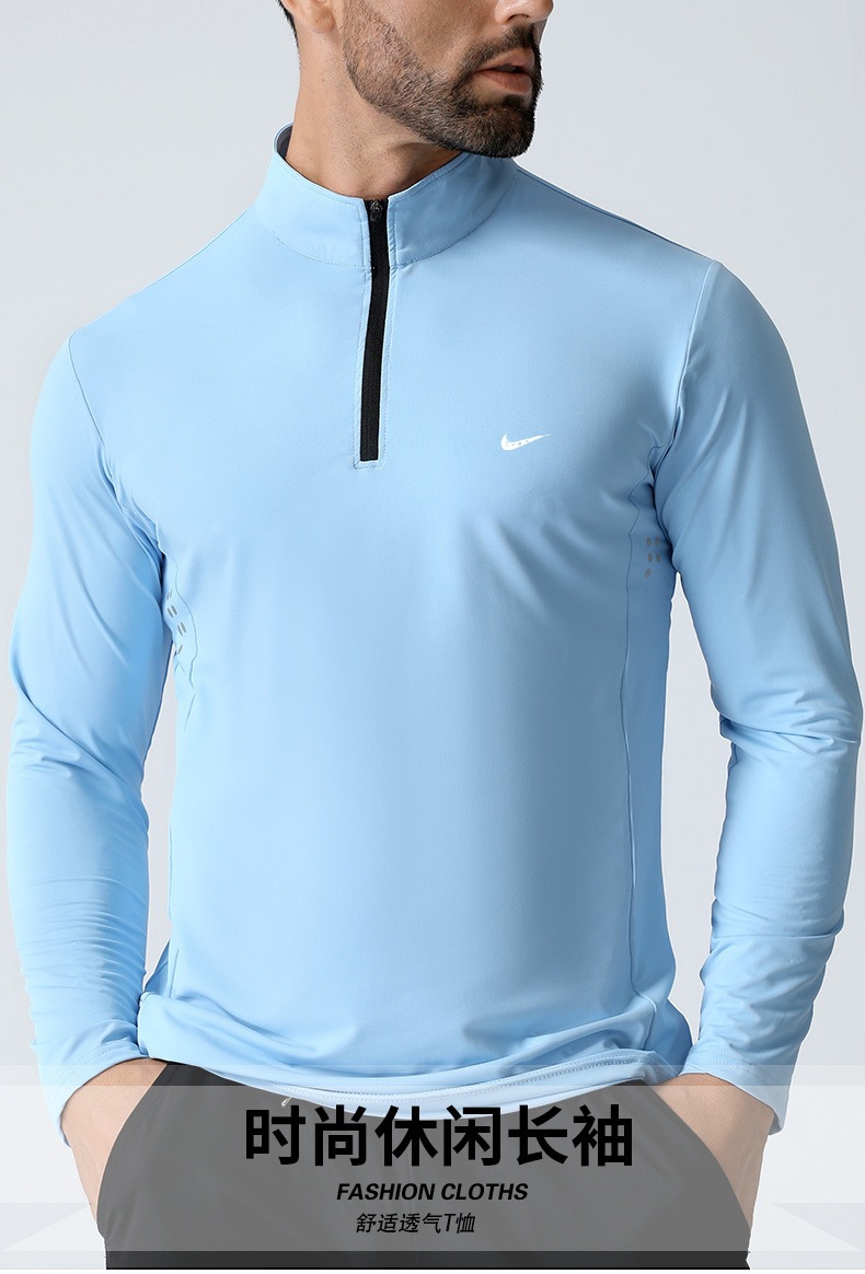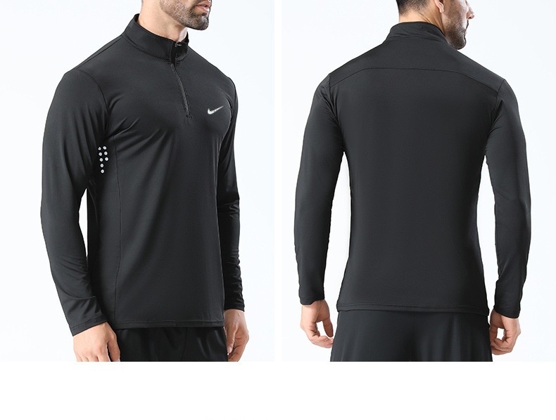 남성 의류-2025 봄 가을 스탠드 칼라 반 오픈 가슴 지퍼 긴 소매 티셔츠 남성 터틀넥 러닝 스트레치 스타킹 체육관 의류