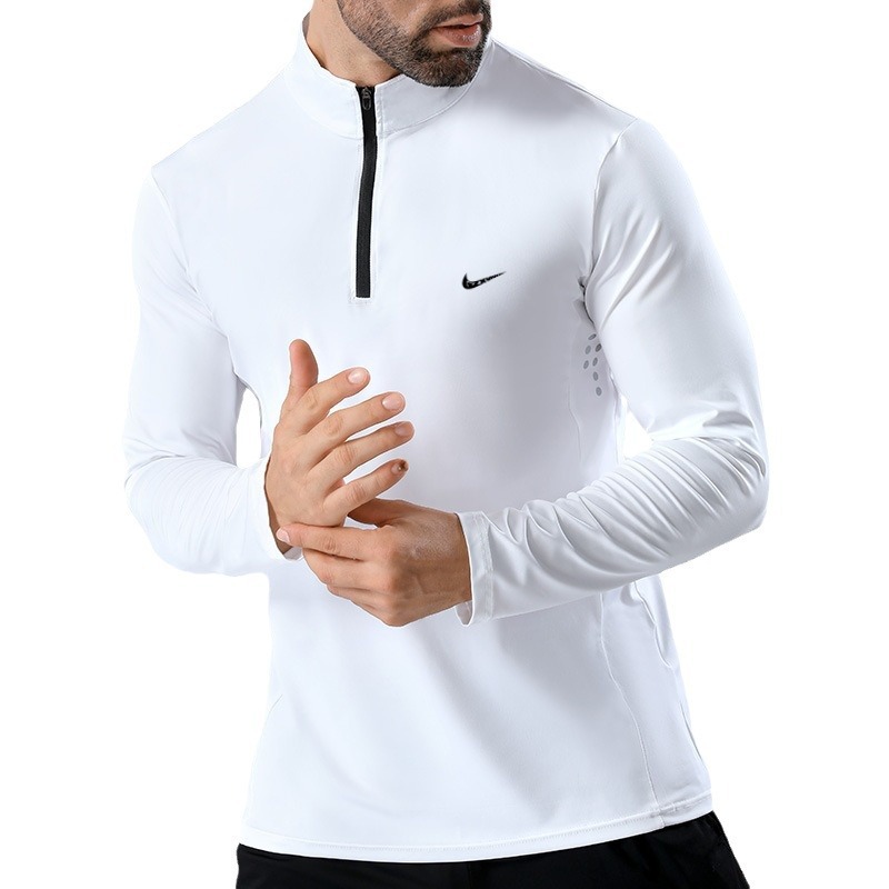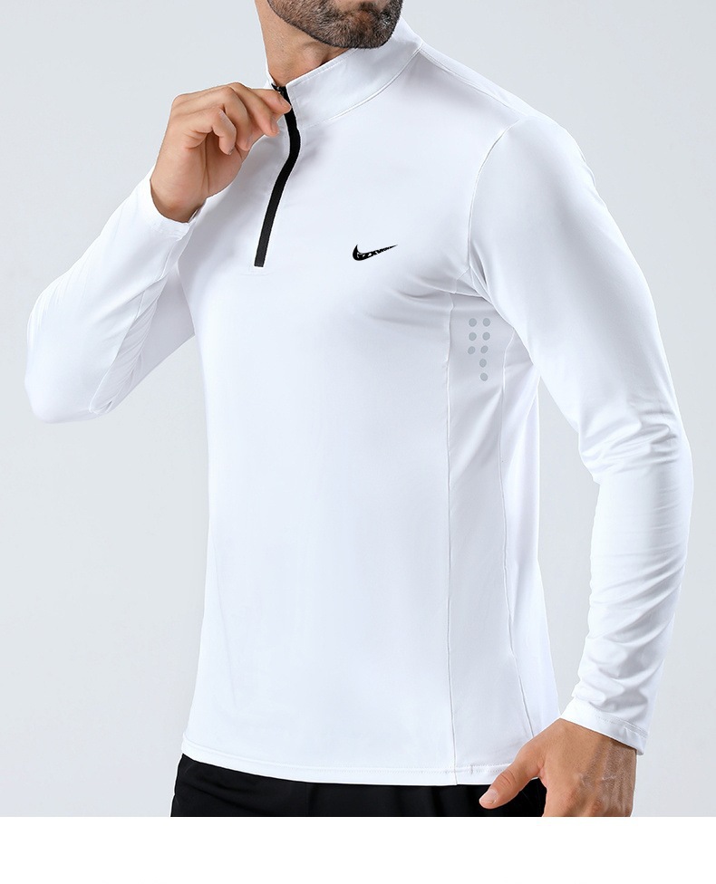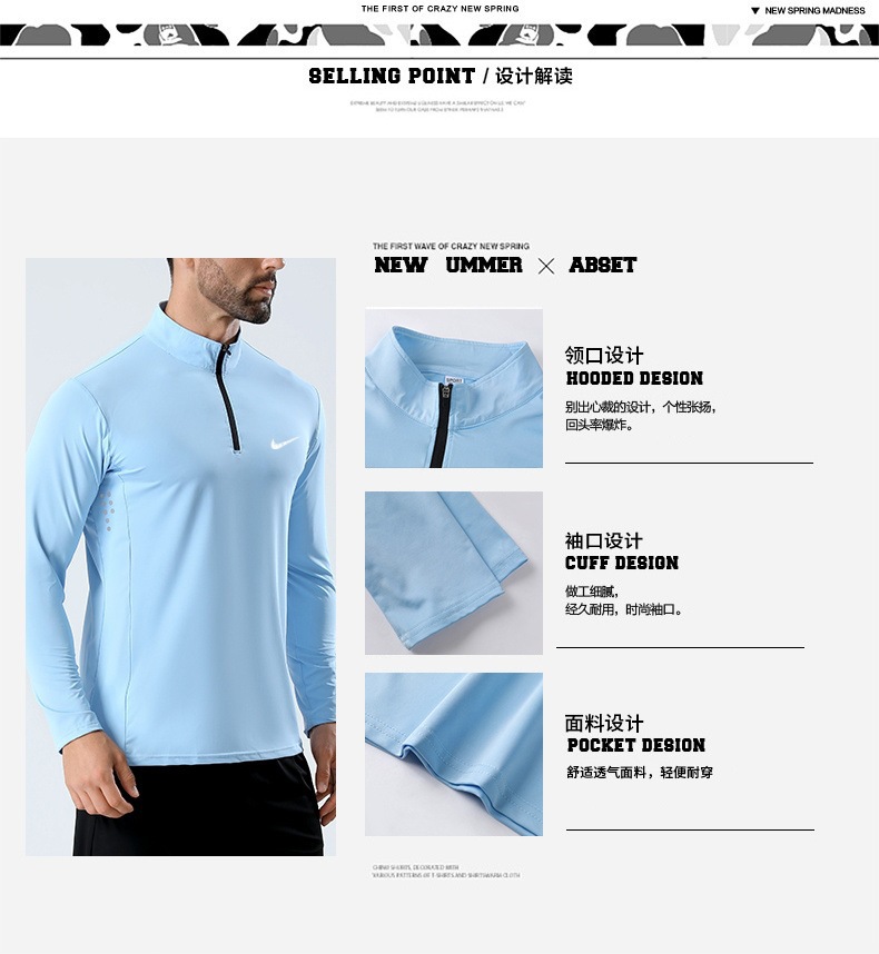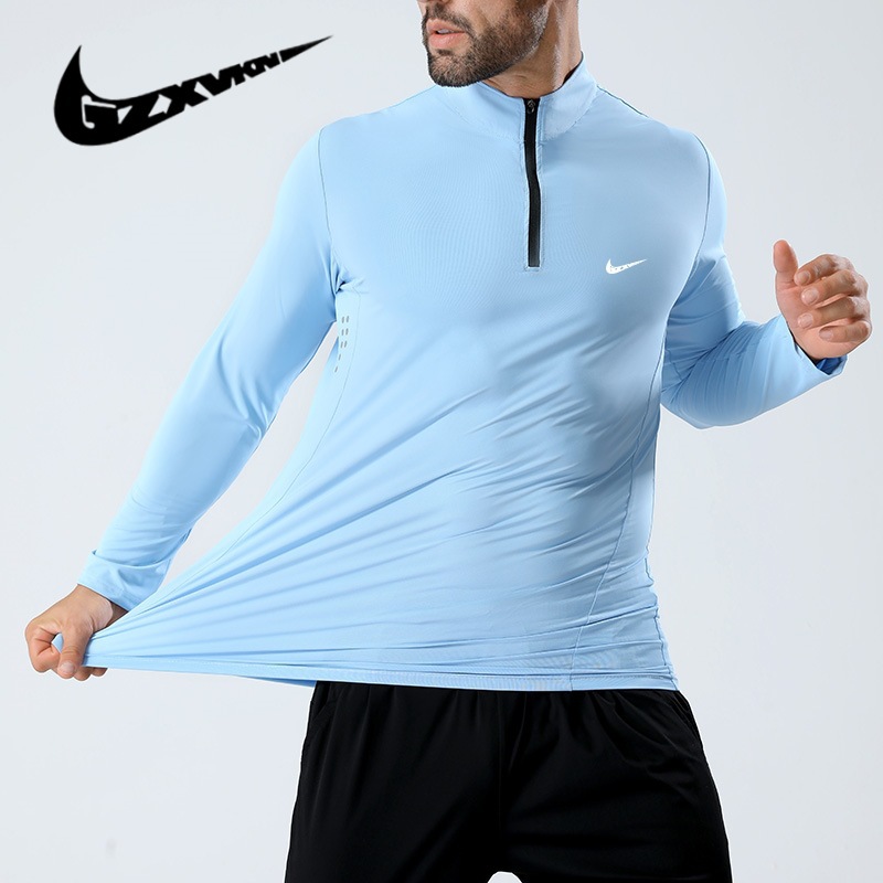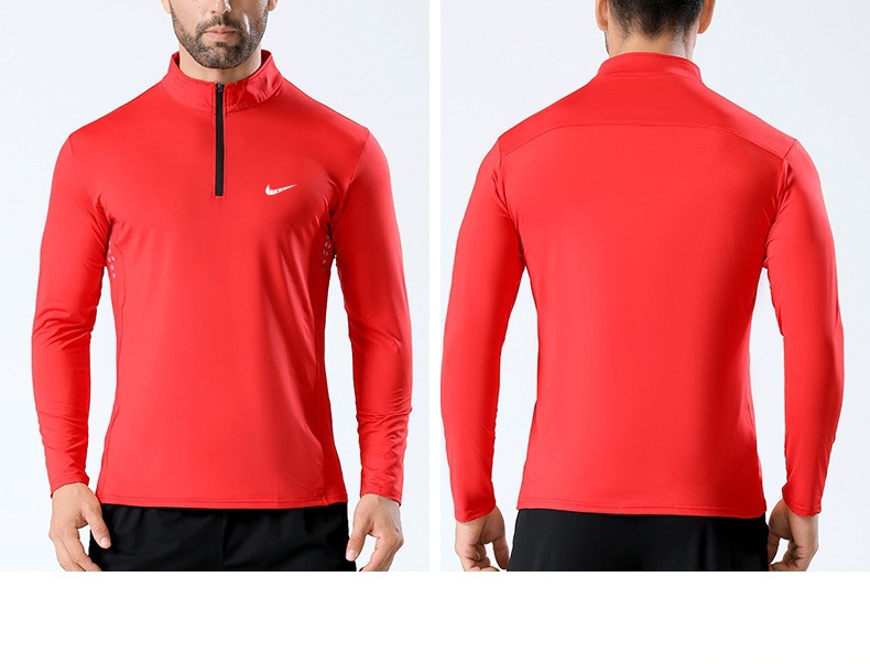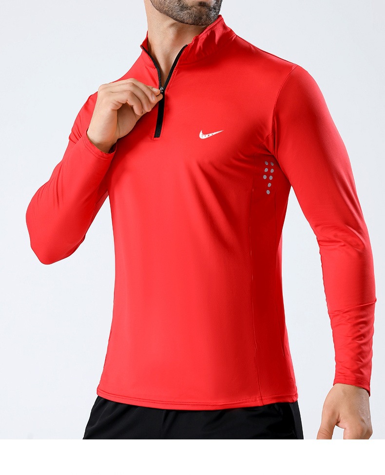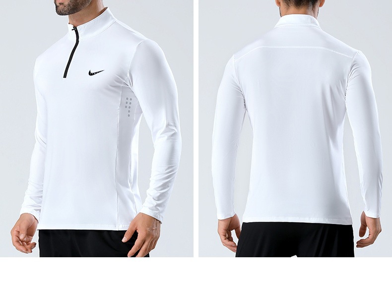 남성 의류-2025 봄 가을 스탠드 칼라 반 오픈 가슴 지퍼 긴 소매 티셔츠 남성 터틀넥 러닝 스트레치 스타킹 체육관 의류