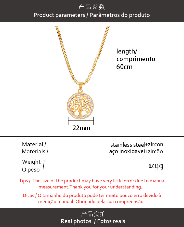 토헴 생명의 나무 티타늄 스틸 펜던트 쇄골 체인 패셔너블하고 개성 있는 빈티지 스테인리스 스틸 평화의 나무 고급스러운 목걸이