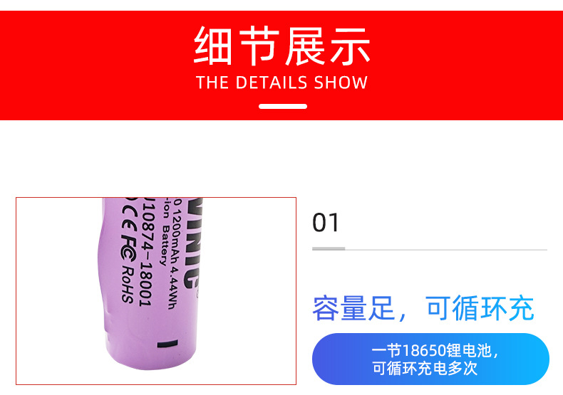 제조업체 18650 리튬 배터리 1200mAh3.7V KC 인증 전동 공구 공기 청정기 소형 팬