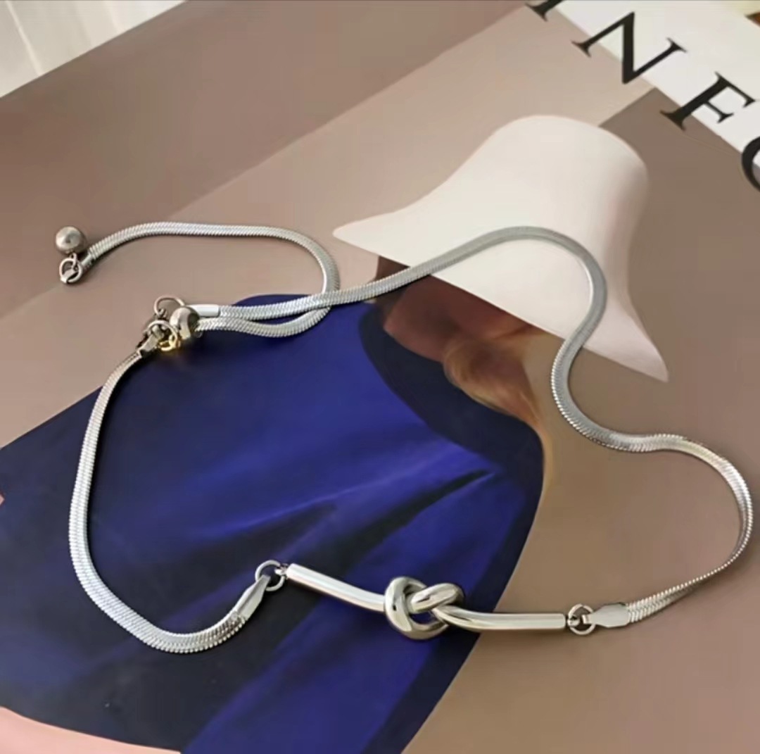 2026년 신상 매듭 목걸이, 티타늄 스틸, 변색 없음, 미니멀 스타일, 다용도, 짧은 스타일, 쇄골 체인, 스웨터 체인