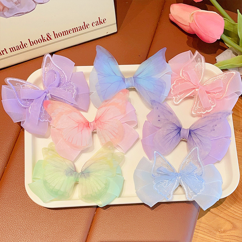 요정 나비 머리핀 달콤한 올 매치 메쉬 헤어 액세서리 귀여운 모리 덕빌 클립 머리핀 소녀 포니 테일 클립