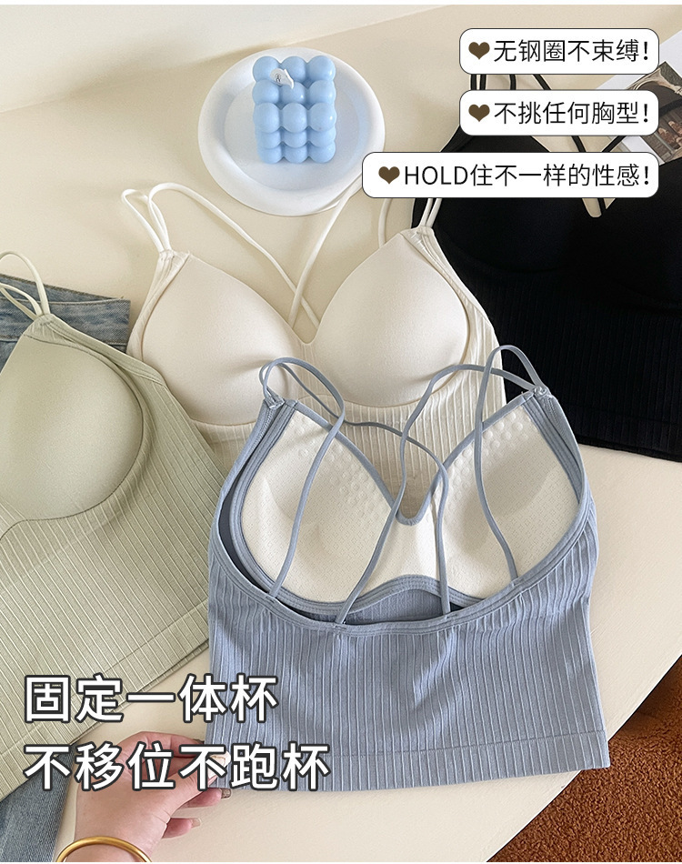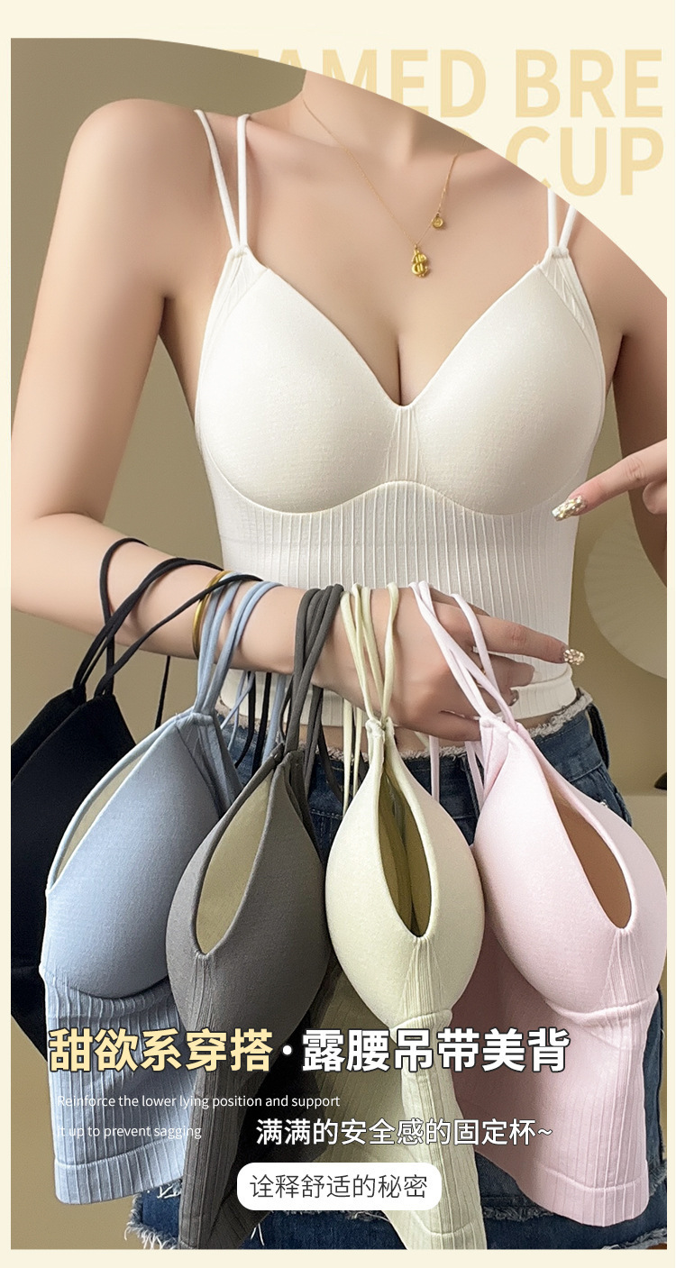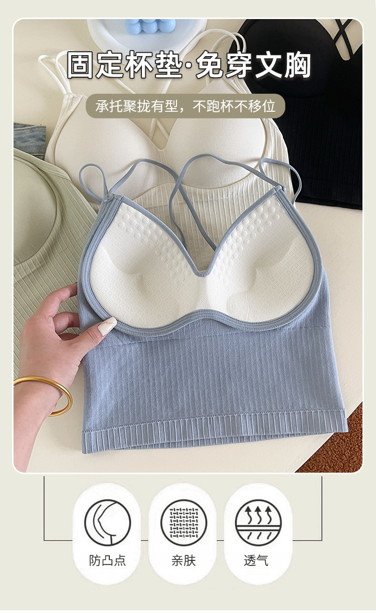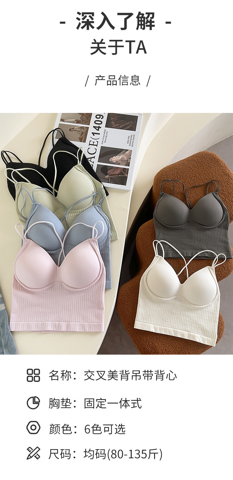 스레드 고정 컵 큰 백리스 크로스 백 조끼 원피스 외부 착용 편안한 슬림 섹시한 소녀 튜브 탑
