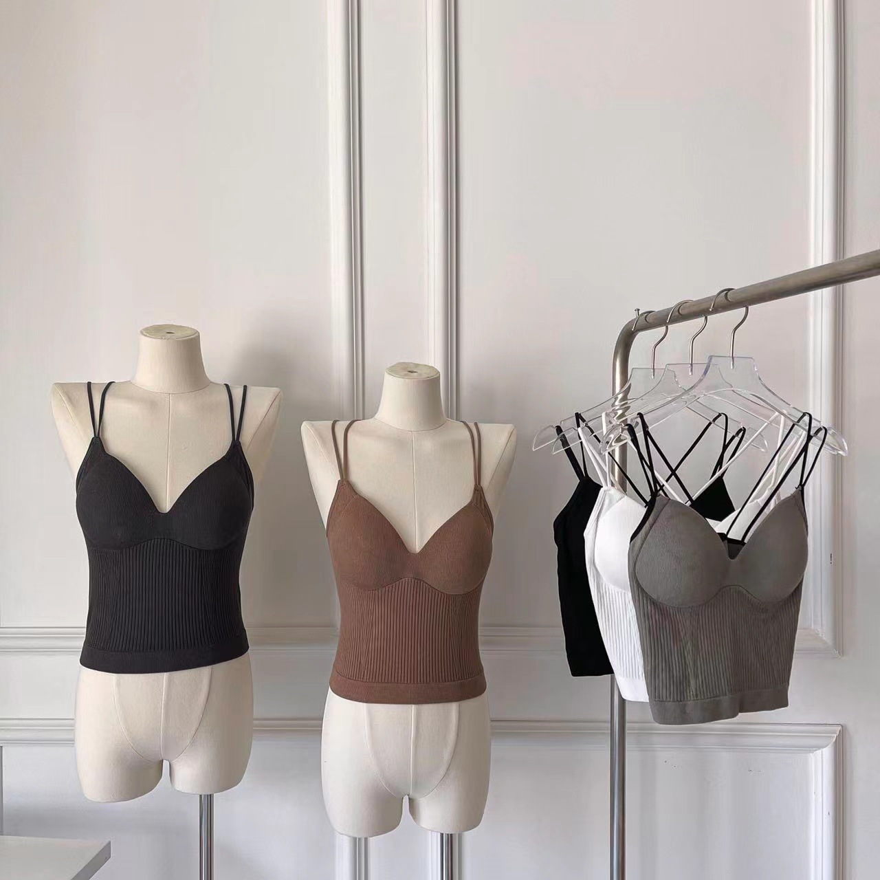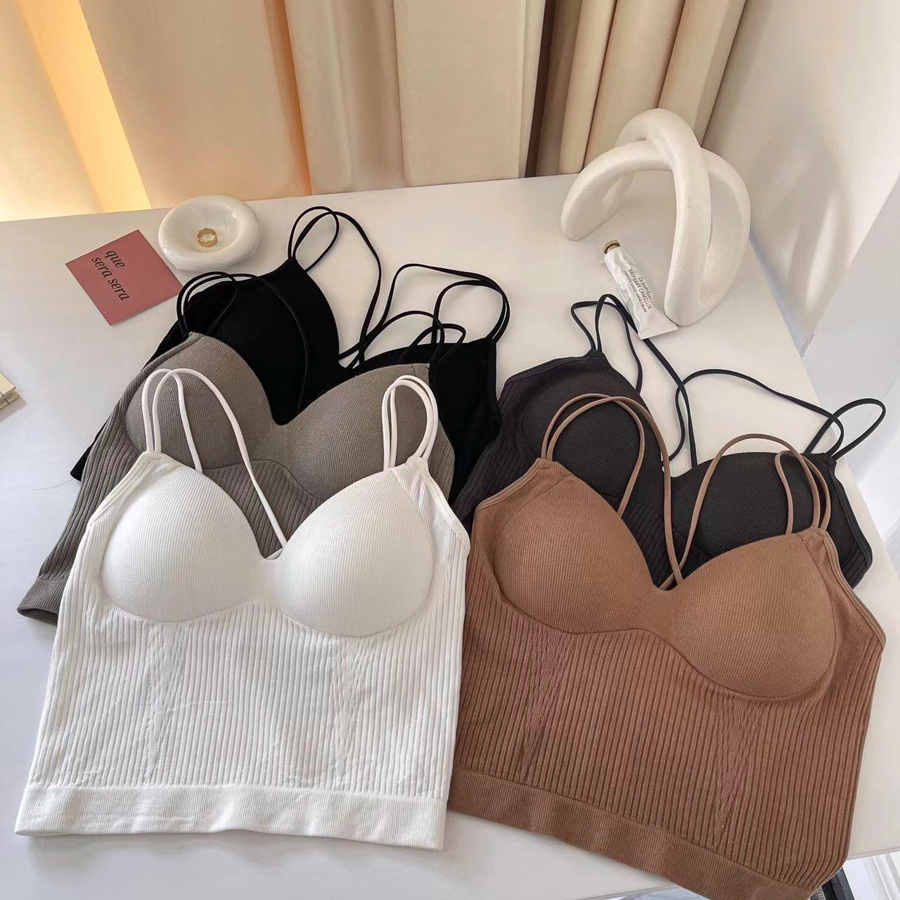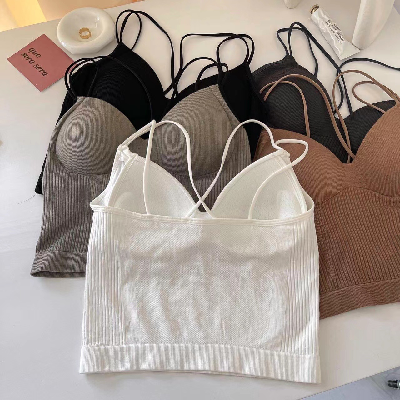 스레드 고정 컵 큰 백리스 크로스 백 조끼 원피스 외부 착용 편안한 슬림 섹시한 소녀 튜브 탑