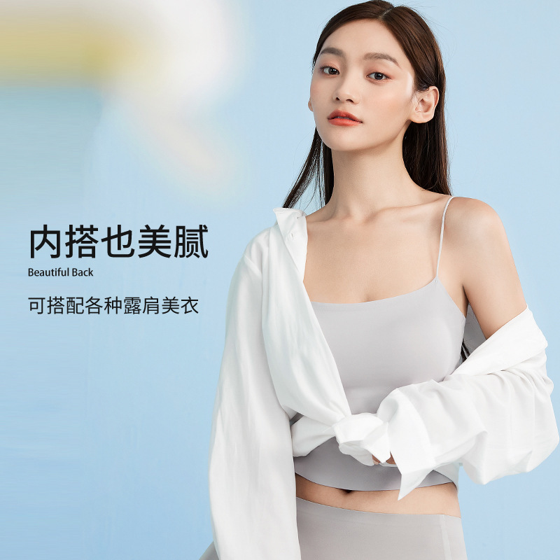 원활한 뷰티 백 속옷 고정 컵 올 매치 캐미솔이 노출 방지 한 단어 튜브 탑 브라를 2 대 1 로 밀어 올립니다.