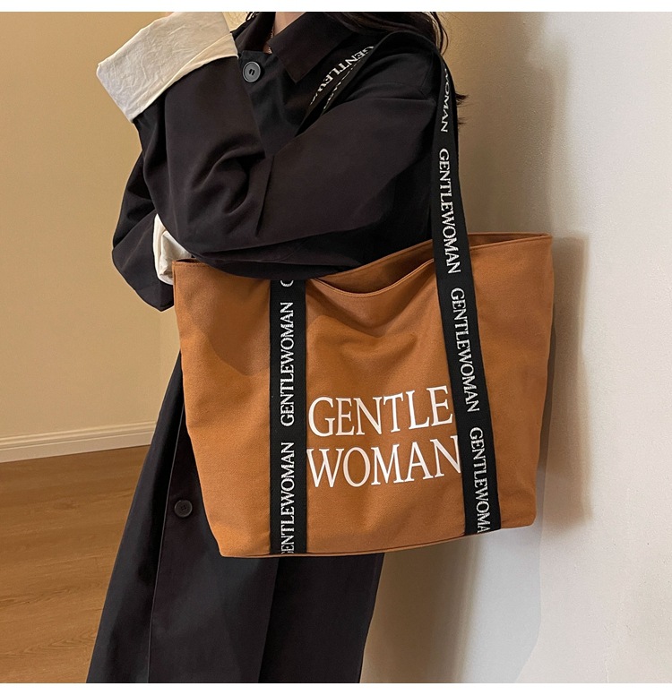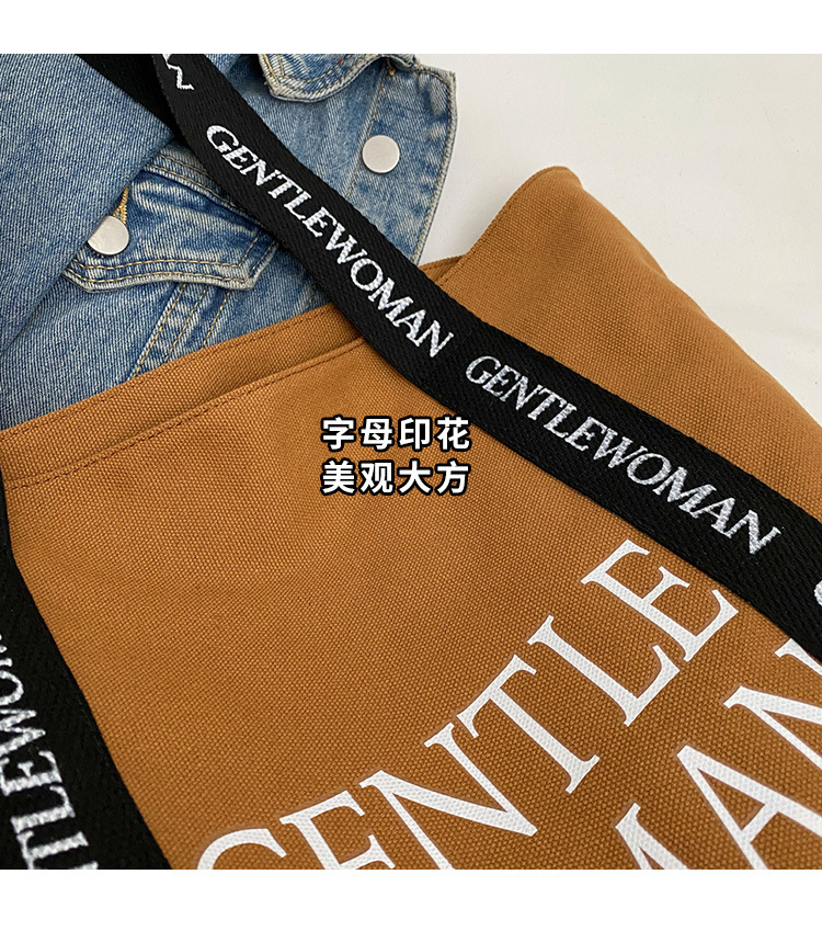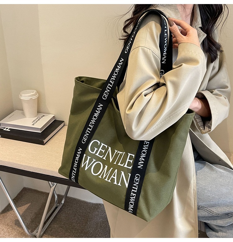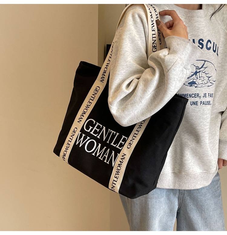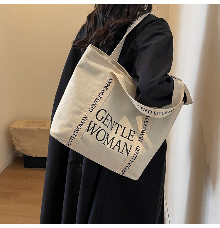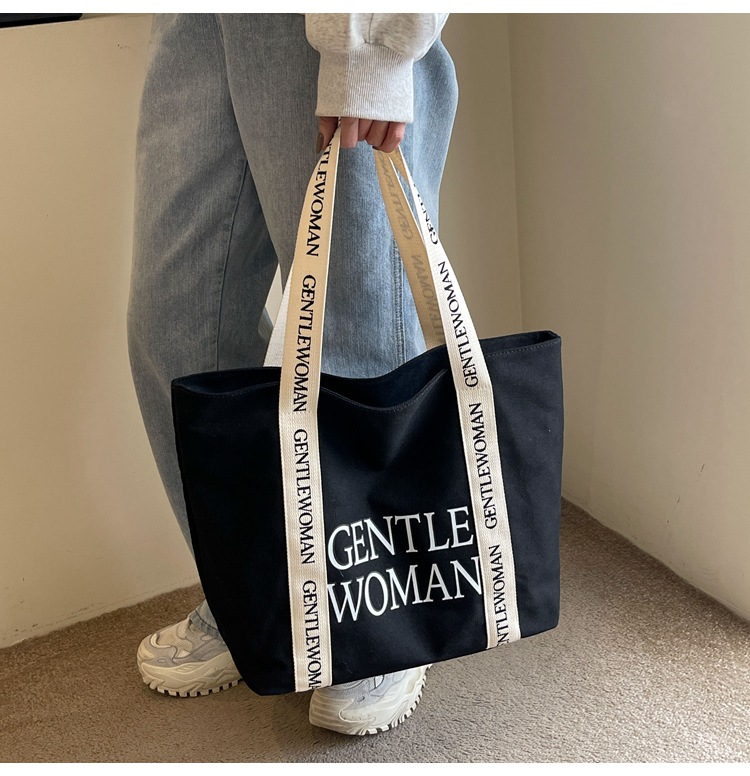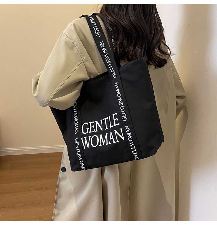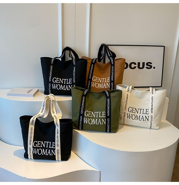 태국 인터넷 유명 인사, 여성을위한 서양식 휴대용 토트 백 새로운 국경 GW 문자 캔버스 인쇄 클래스 통근 가방