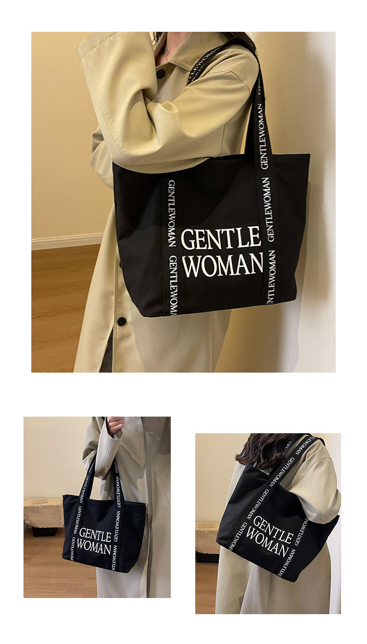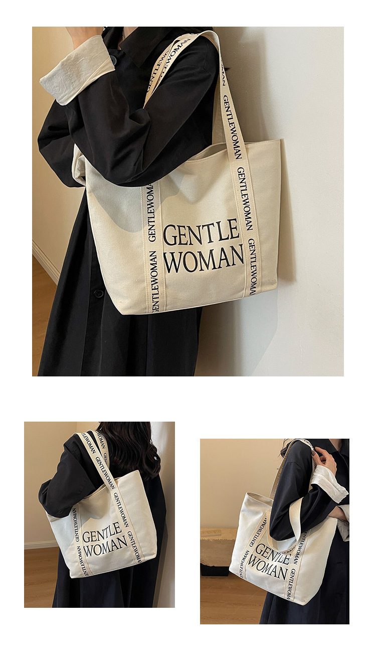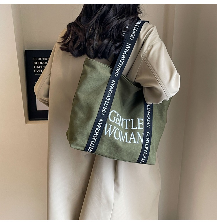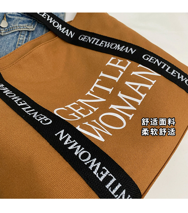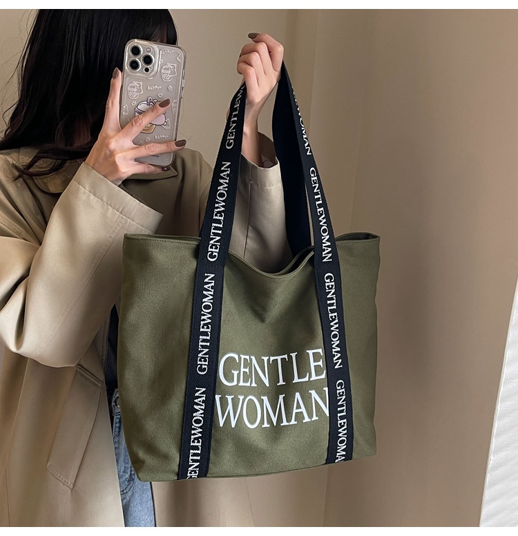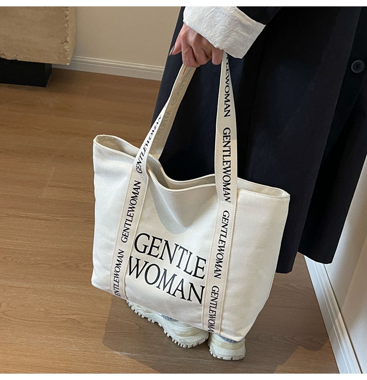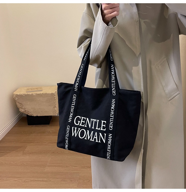 태국 인터넷 유명 인사, 여성을위한 서양식 휴대용 토트 백 새로운 국경 GW 문자 캔버스 인쇄 클래스 통근 가방