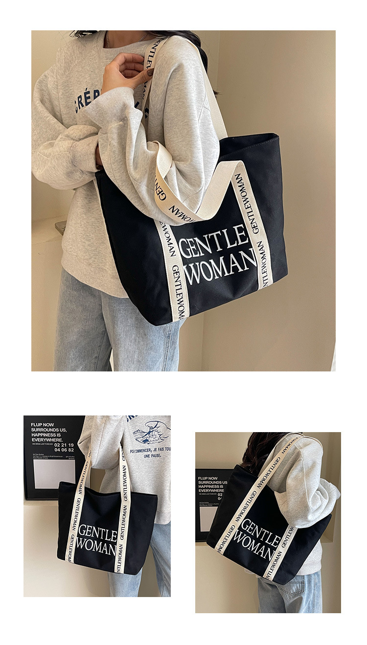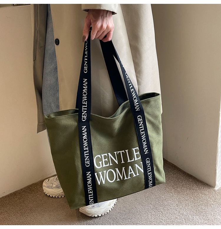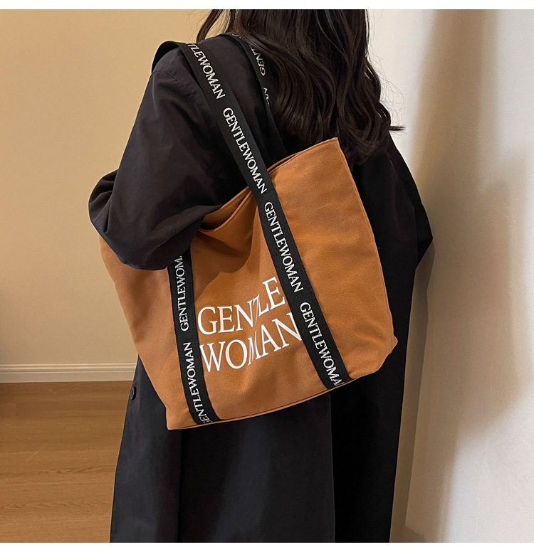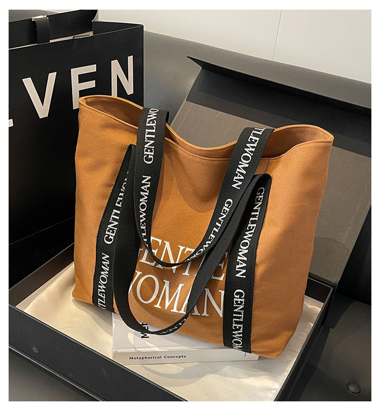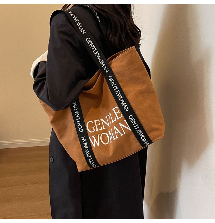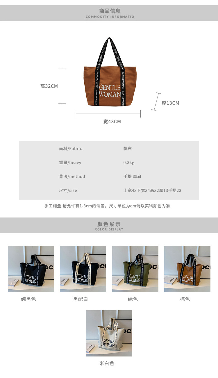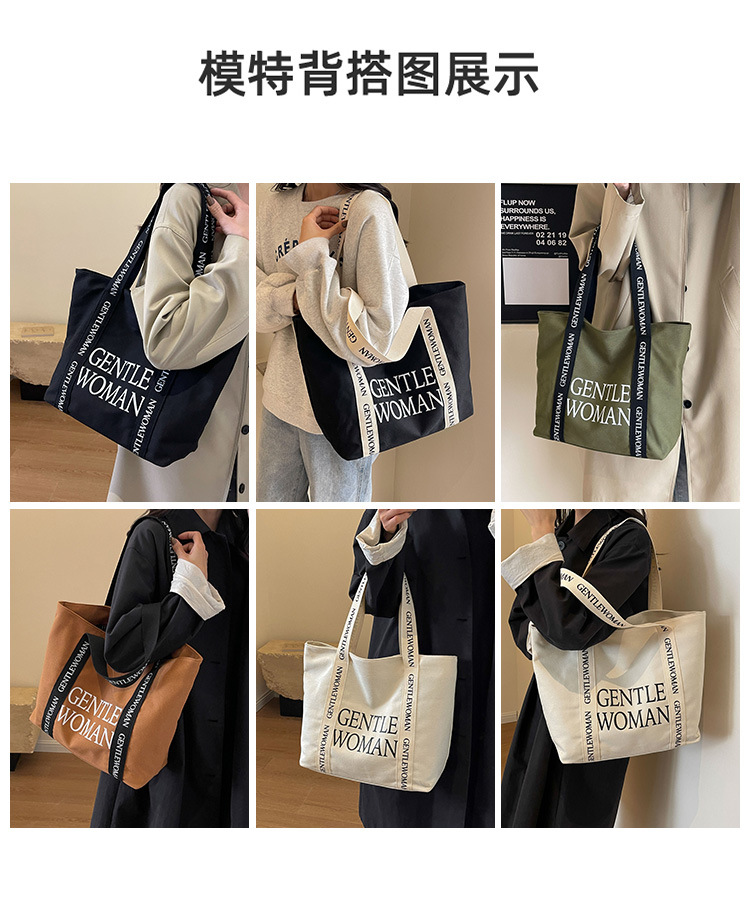 태국 인터넷 유명 인사, 여성을위한 서양식 휴대용 토트 백 새로운 국경 GW 문자 캔버스 인쇄 클래스 통근 가방
