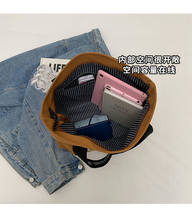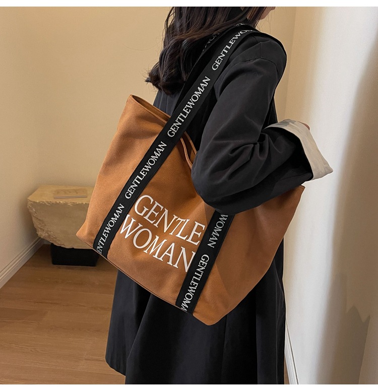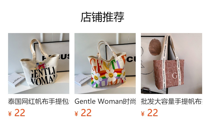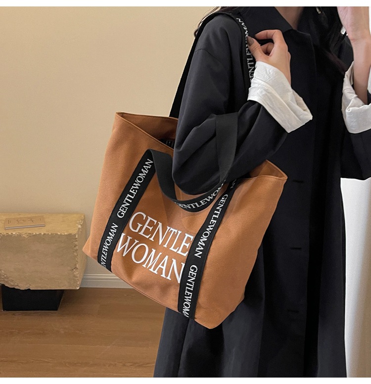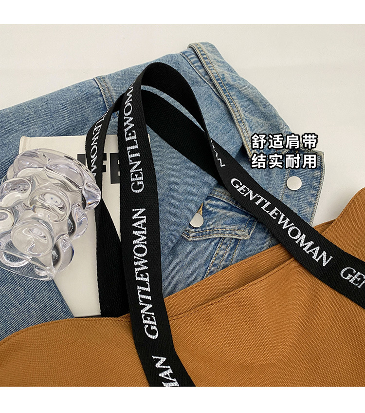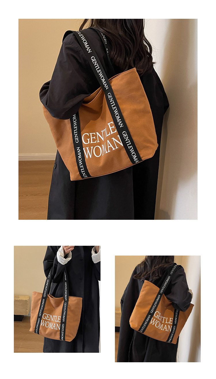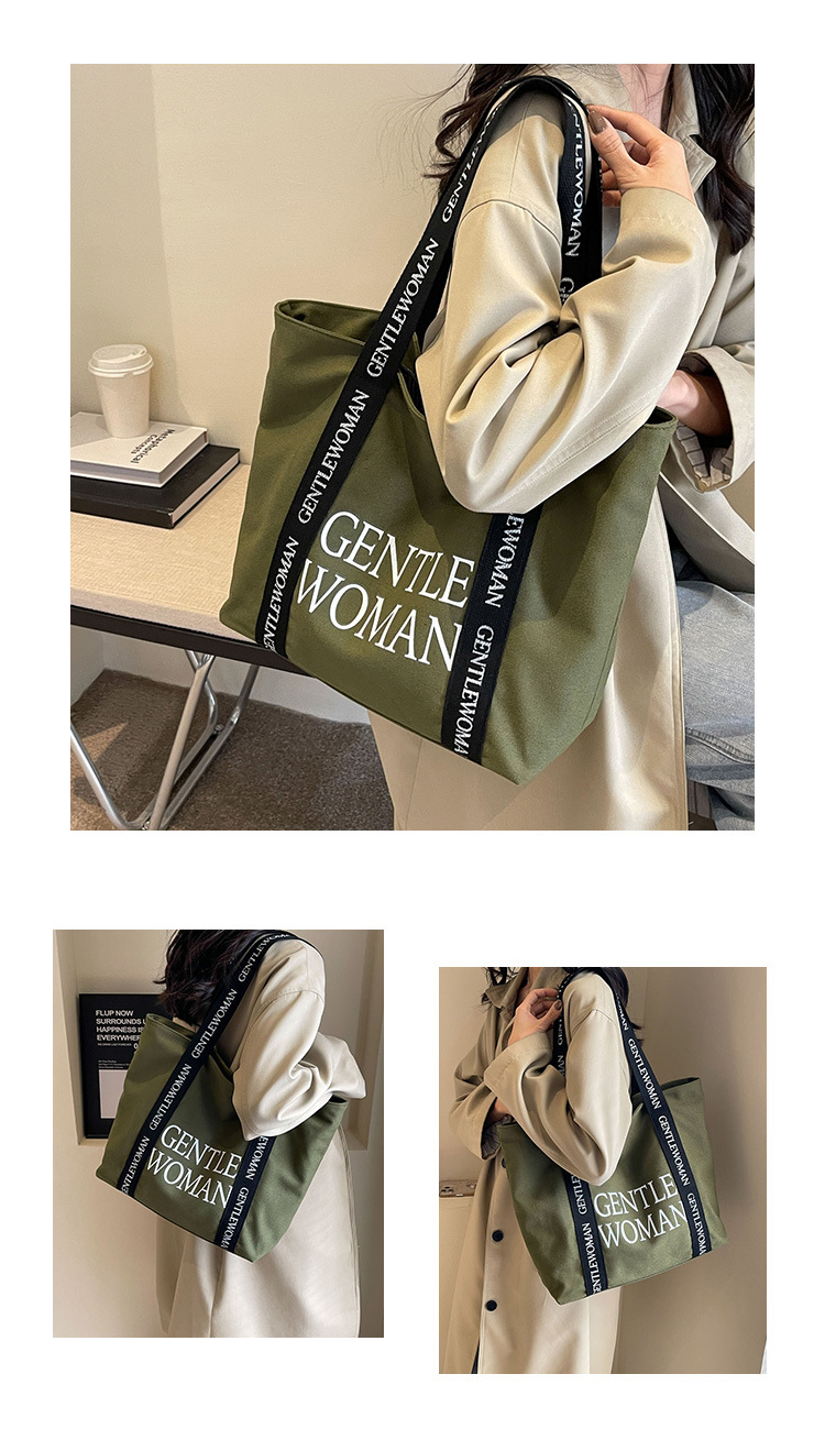 태국 인터넷 유명 인사, 여성을위한 서양식 휴대용 토트 백 새로운 국경 GW 문자 캔버스 인쇄 클래스 통근 가방