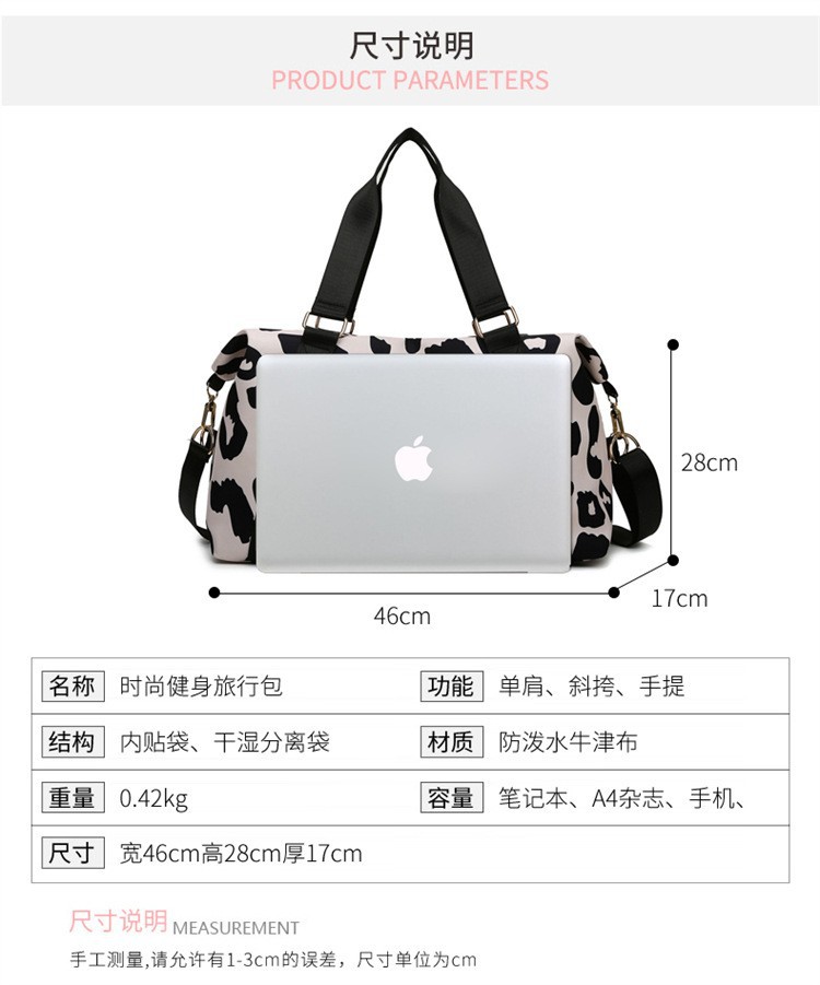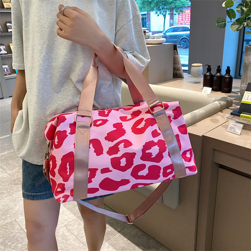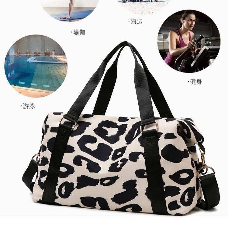 피트니스 스포츠 가방, 소가죽 레오파드 무늬 여행 가방, 단거리 출장용 짐 가방, 여성용 핸드백, 대용량 건습 분리