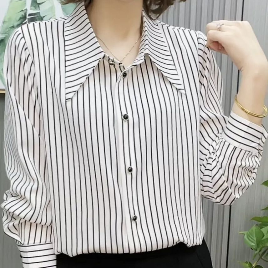 새로운 패션 스트라이프 여성용 긴팔 셔츠 다재다능한 슬리밍 봄과 여름 셔츠 한국식 긴팔 셔츠 여성 선두