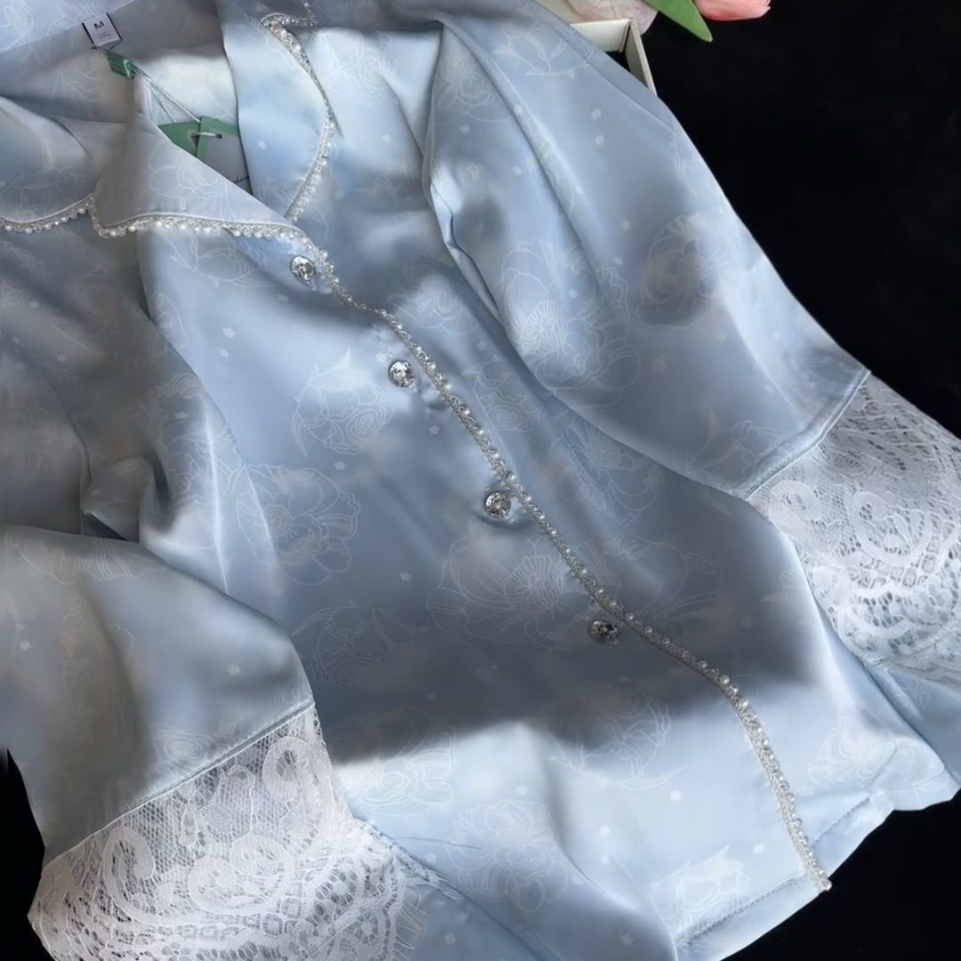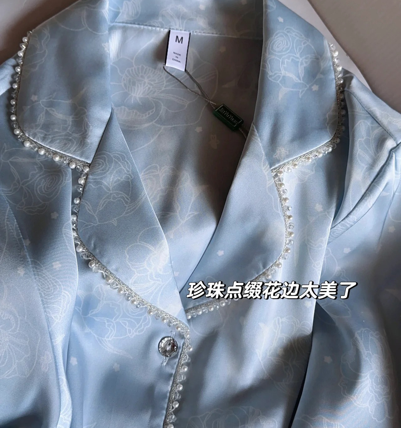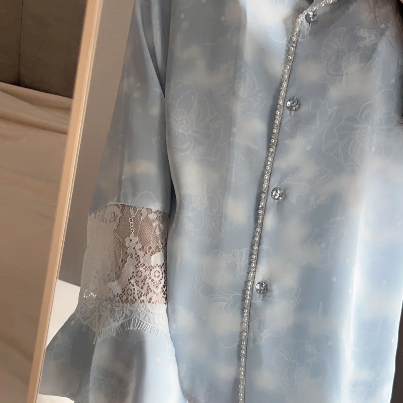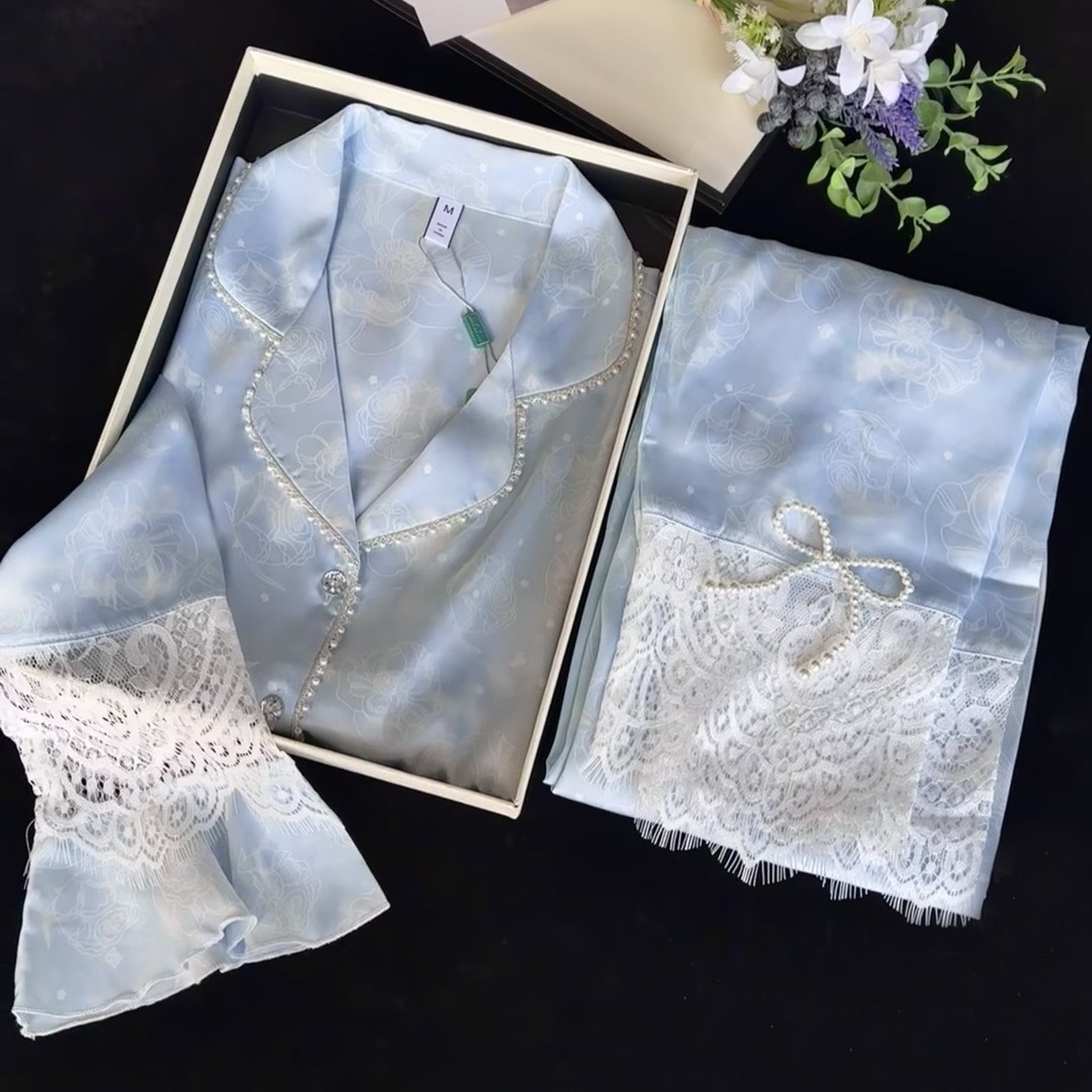 2024 요정 스타일 레이스 프랑스 홈웨어 새로운 잠옷 여성용 긴팔 바지 틈새 인터넷 레드 세트