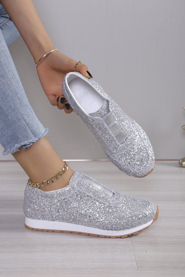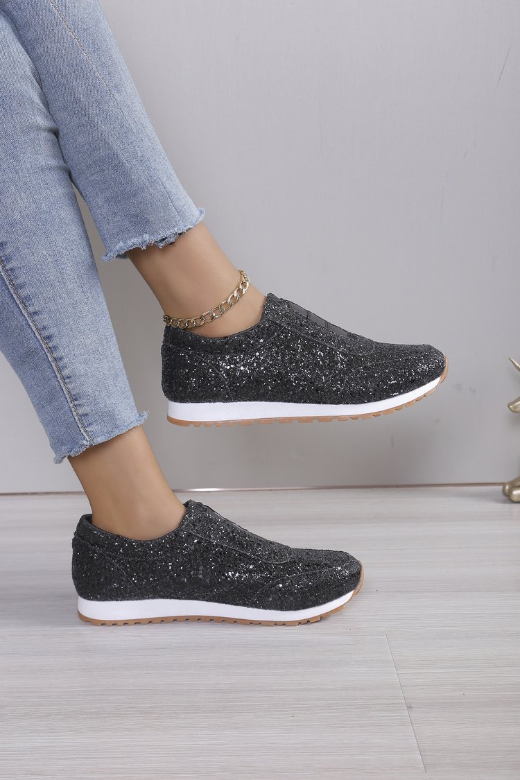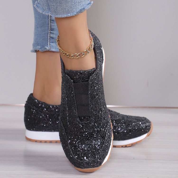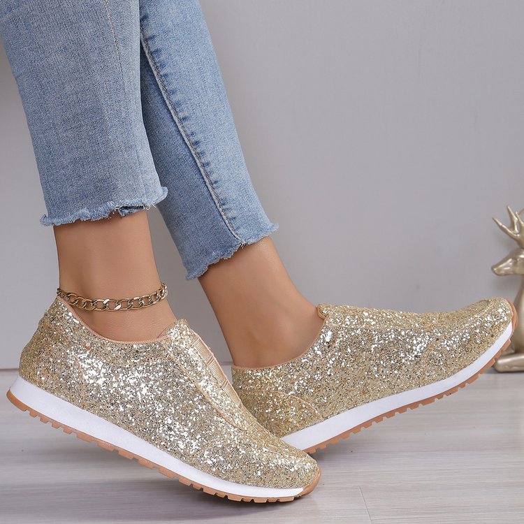 국경 간 플러스 사이즈 스포츠 여성을위한 싱글 레이어 신발 2024 유럽과 미국의 인기있는 스팽글 운동화 캐주얼 신발 싱글 레이어 신발