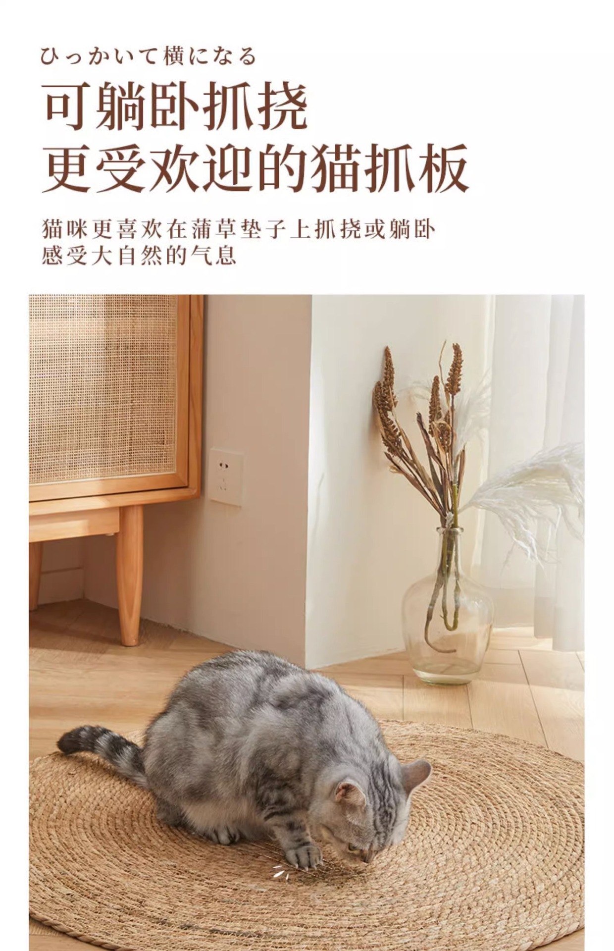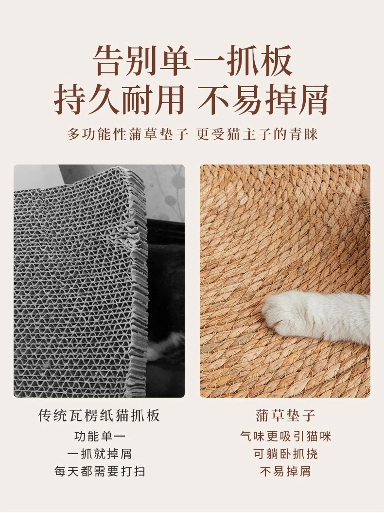 Cattail 고양이 스크래치 보드 대형 발톱 고양이 장난감 내마모성 긁힘 방지 고양이 수면 패드 긁는 분지 통합 고양이 둥지 등나무