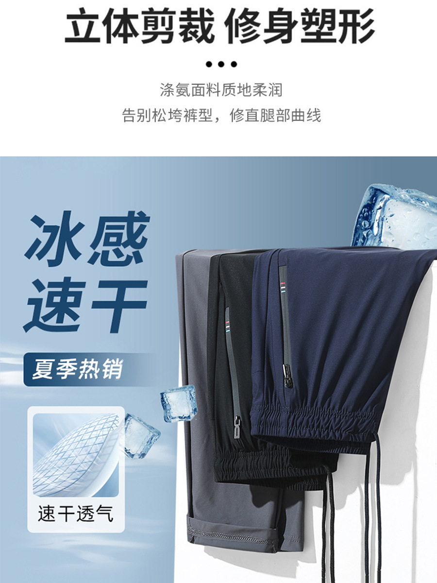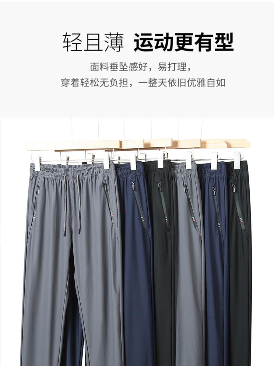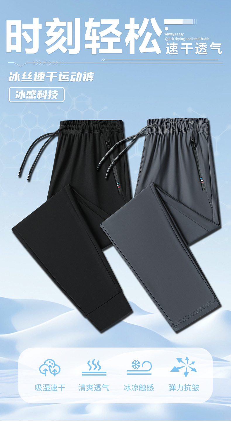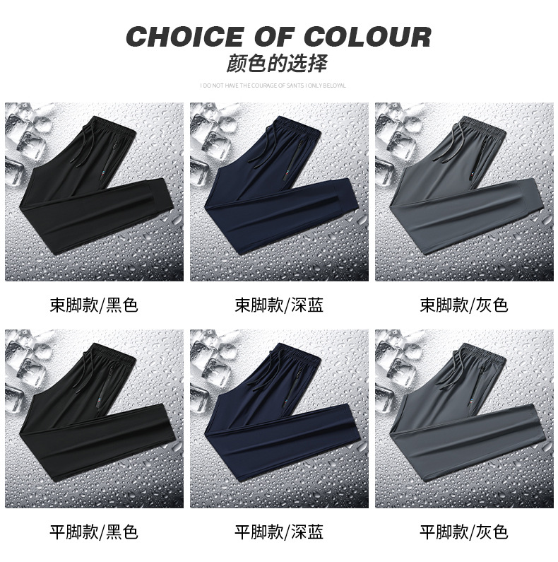 여름 아이스 실크 바지 남자 스포츠 바지 여자 탄성 통기성 빠른 건조 바지 플러스 사이즈 느슨한 자외선 방지 인쇄 가능한 로고