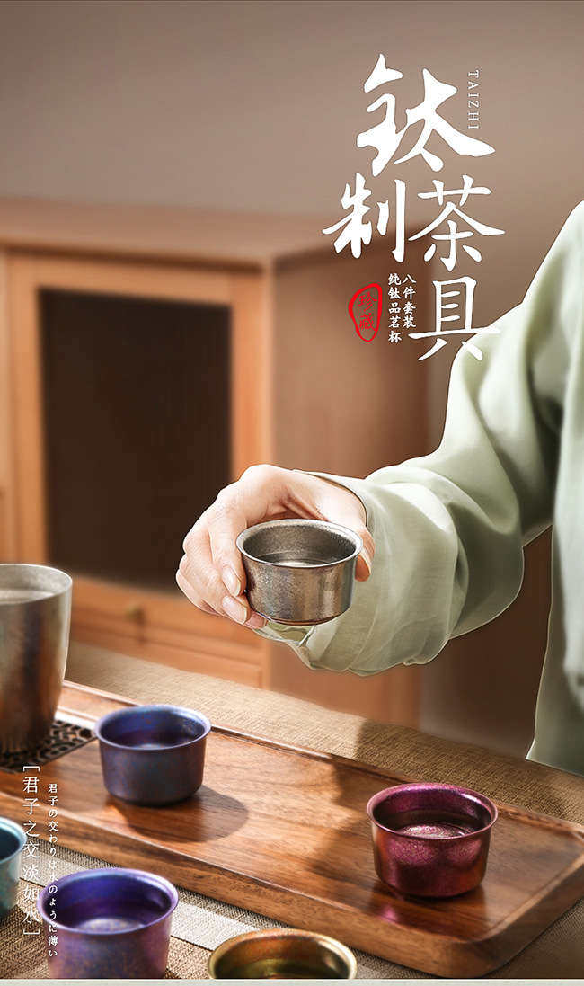 순수한 티타늄 차 컵 티타늄 컵 차 그릇 물 컵 야외 마스터 컵 더블 레이어 안티 스케일 티타늄 합금 쿵푸 차 컵 차 세트 선물
