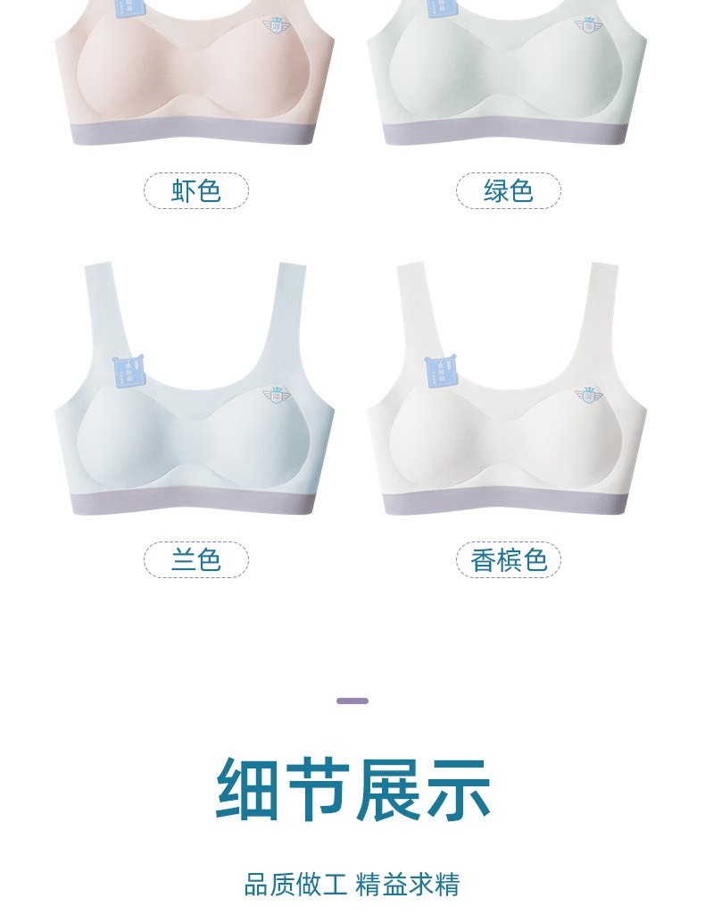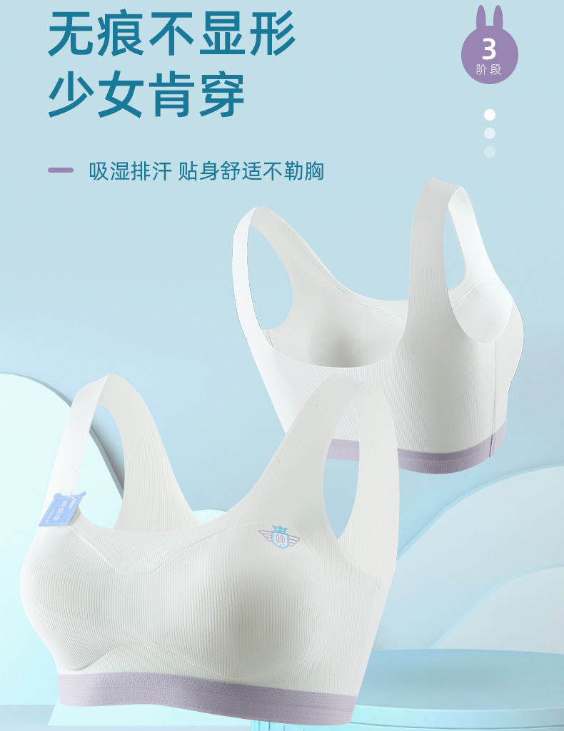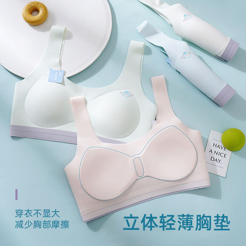 원활한 아름다움 백 소녀 속옷 중학교 고등학교 학생 스포츠 충격 방지 조끼 여학생 개발 기간 고정 컵 브래지어