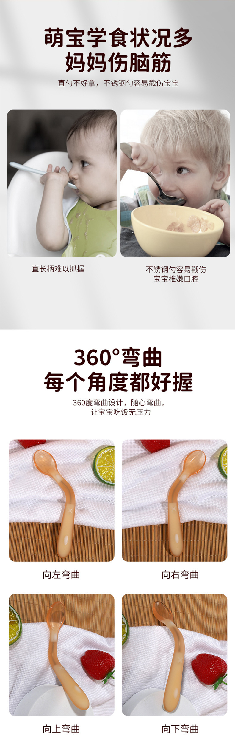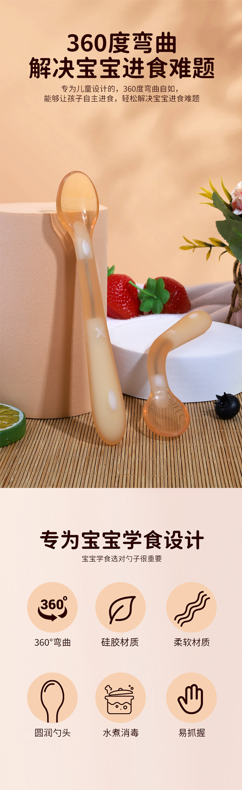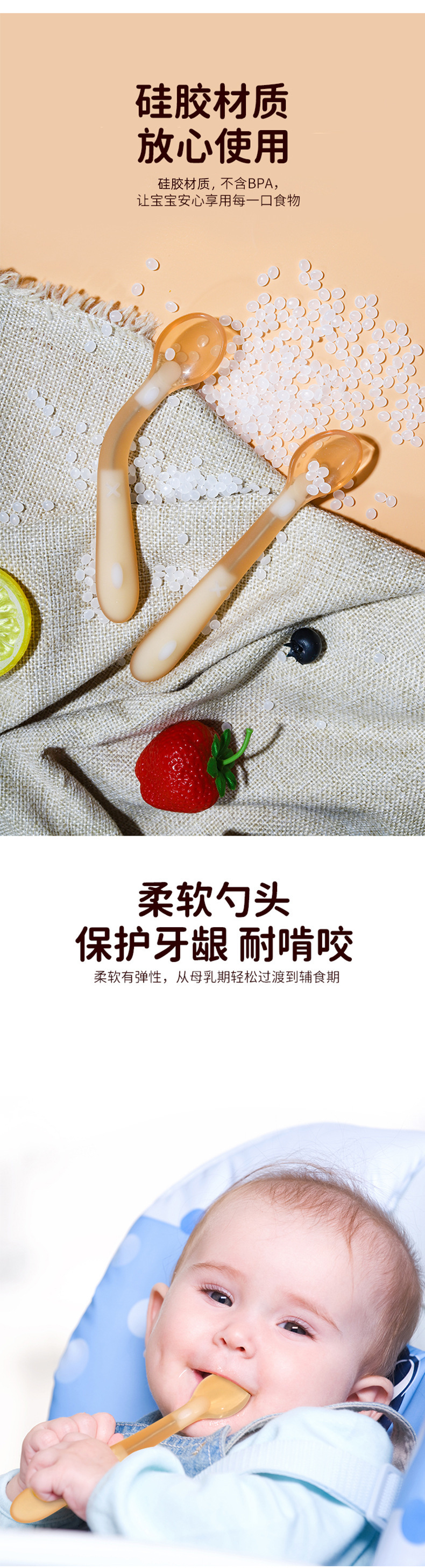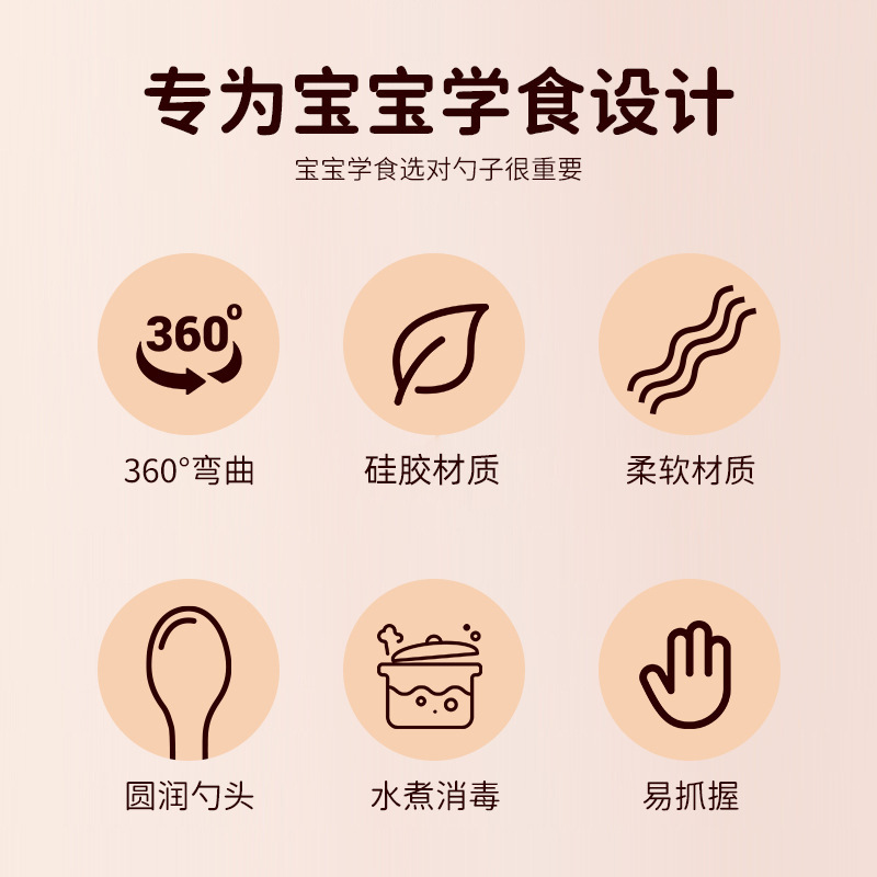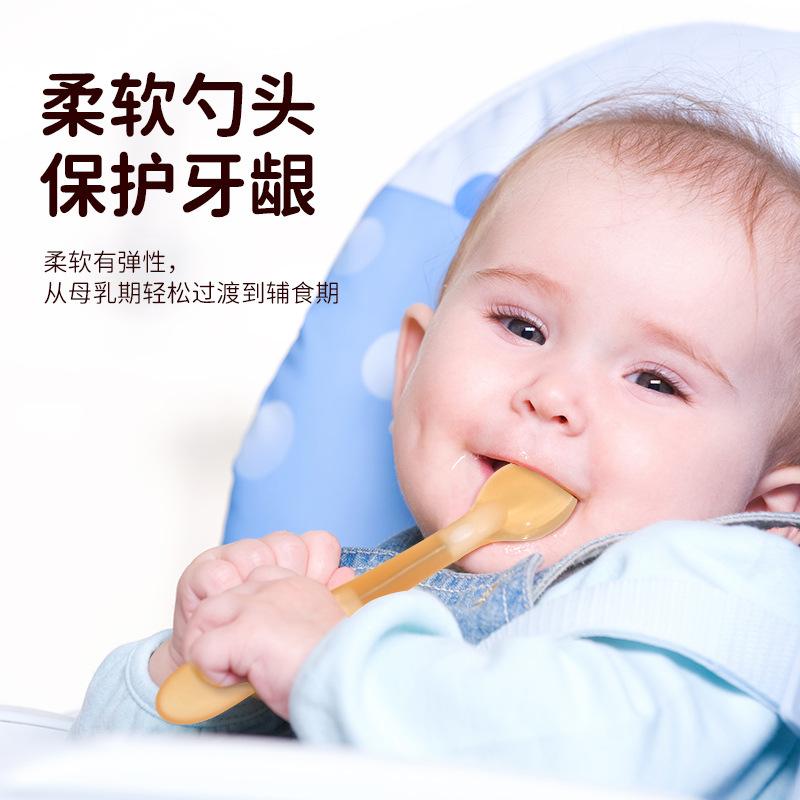 아기 실리콘 스푼 식품 보충 식품 급료 소프트 헤드 스푼 교육 식기 유아식 보충 숟가락 공장 도매