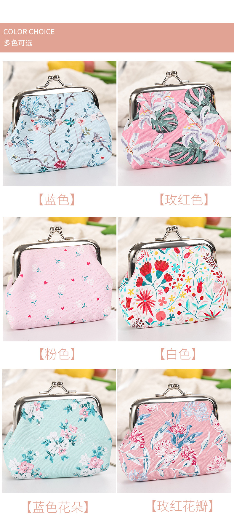 재고 신선한 꽃 기념품 여성 키 케이스 어린이 버클 동전 지갑 미니 지갑 작은 선물 보관